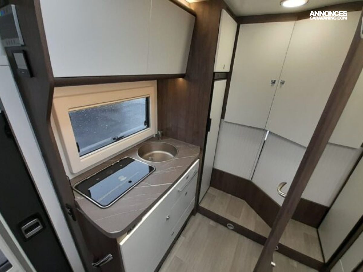 Soit : Pack Delivery (Lumière extérieur LED, Rideaux occultants en cabine, Panneau solaire 165 w) + Pack Winter (Tuyaux de chauffage isolé, couverture cabine isolante extérieure, Réservoir eaux usées isolé et chauffé, Marchepied isolé, Puissance chauffage augmentée, pré-installation pour seconde batterie de cellule) + Pack Vision (Phares bi-xénon avec feux diurnes LED, Jantes aluminium 16’’) + Régulateur de vitesse adaptatif, reconnaissance des panneaux + Parebrise chauffant + Rétros chauffants et rabattables électriquement + Navigation sur autoradio multimédia avec 1 an de mise à jour + Pneus 4 saisons + Peinture cabine métallisée