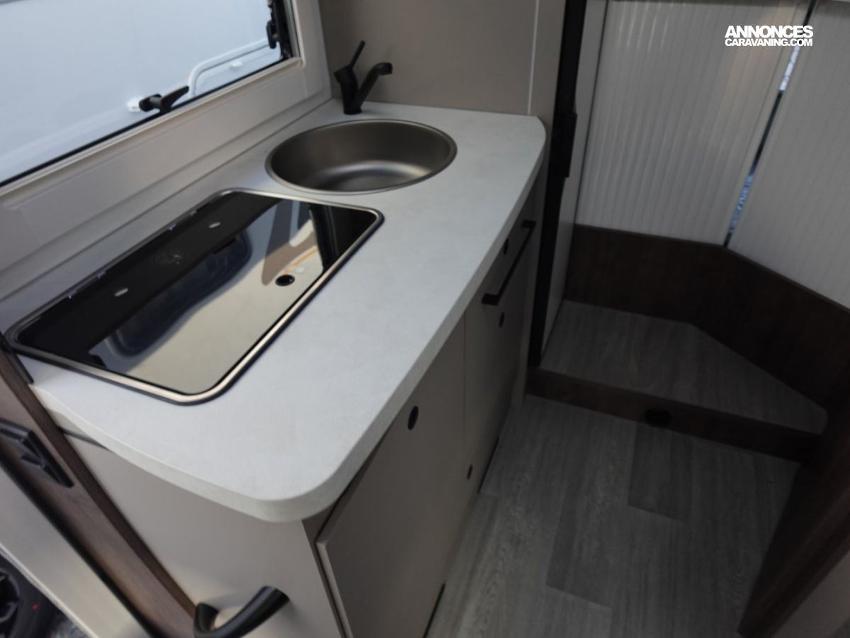 Magnifique petit profilé comprenant un grand salon avant panoramique avec banquette face/face, une douche séparée, un lit de pavillon électrique, une cuisine avec de nombreux rangements, un lit arrière 1 place transformable en grande soute et un dressing arrière.
