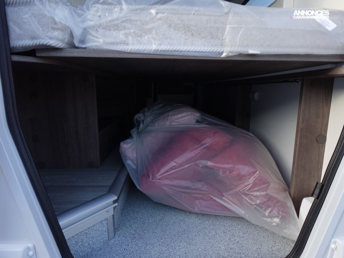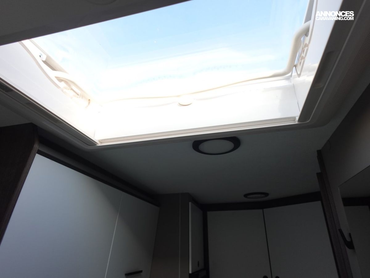 (Panneau solaire 200 W avec régulateur MPPT, Rideaux d’occultation vitres cabine, Porte cellule WL avec 2 points + fenêtre + moustiquaire + poubelle, Housses de sièges cabine, Lumière extérieure LED, Projecteurs halogènes de virage, Radars de recul, Eclairage intérieur au plafond, Stores vénitiens, ISOFIX, Support TV, Pré-installation 2ème batterie, Skyview, Boite à gants avec serrure, Tableau de bord et garniture Trend, Pare-chocs et moulures latérales peints dans la couleur de la carrosserie)