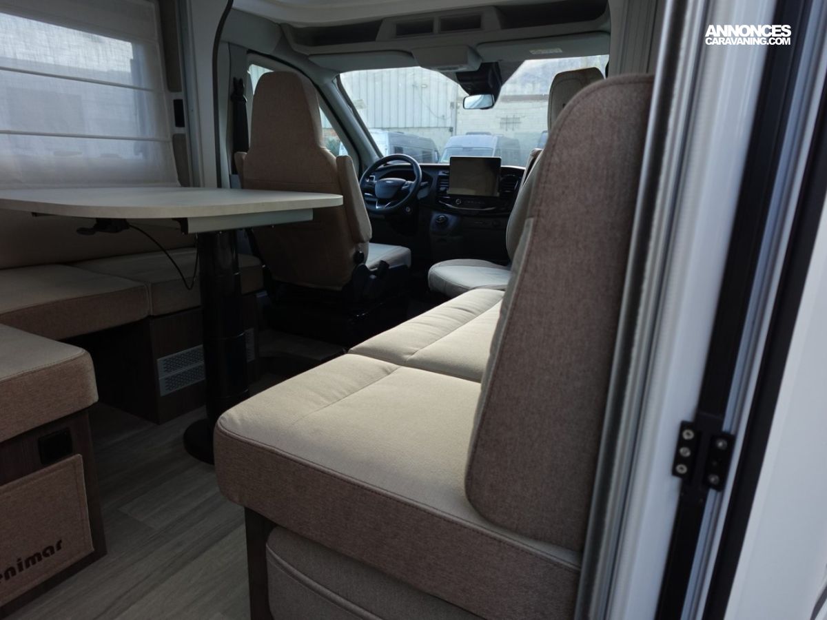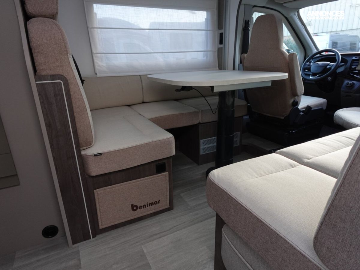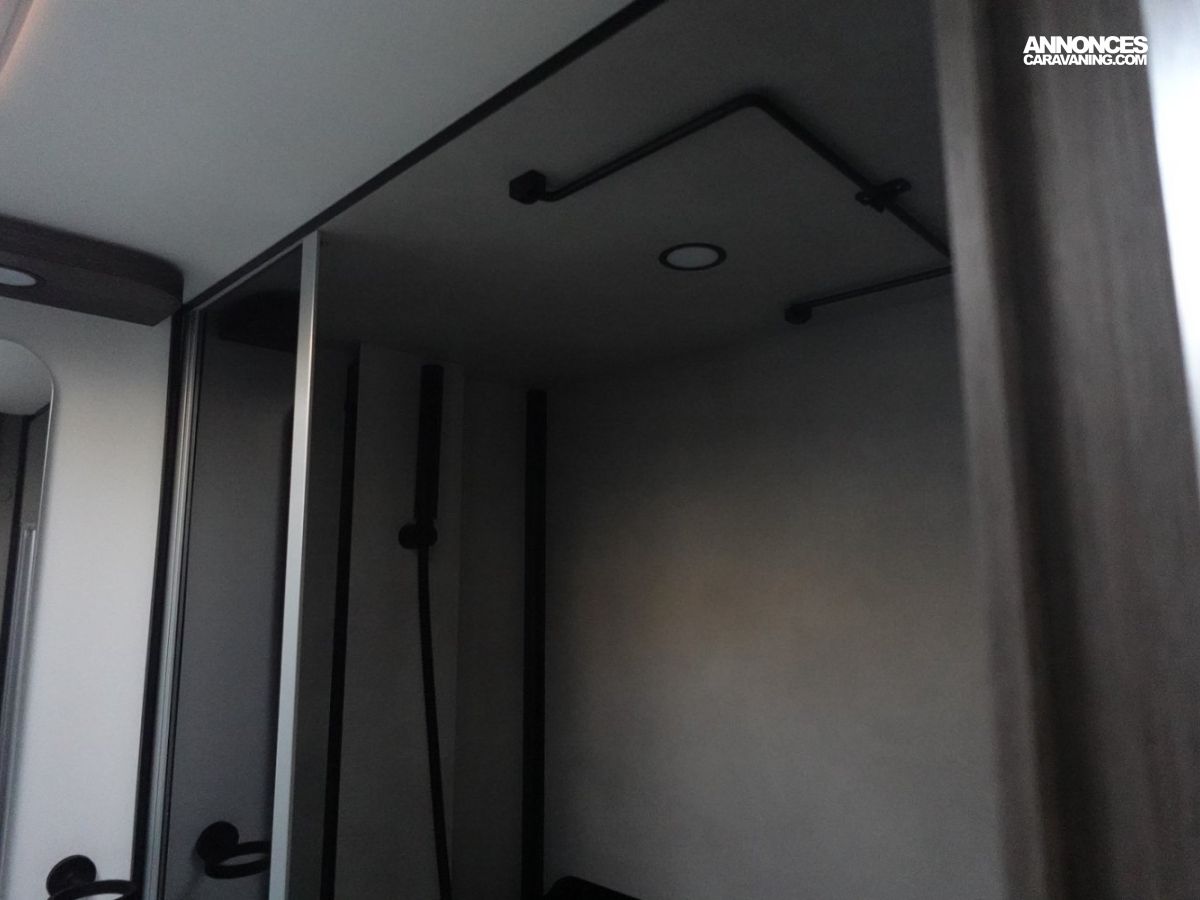 Magnifique petit profilé comprenant un grand salon avant panoramique avec banquette face/face, une douche séparée, un lit de pavillon électrique, une cuisine avec de nombreux rangements, un lit arrière 1 place transformable en grande soute et un dressing arrière.