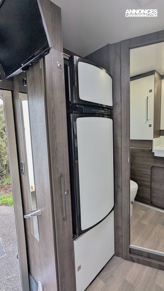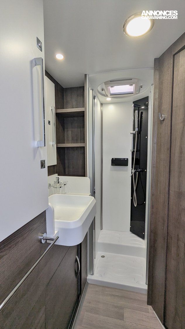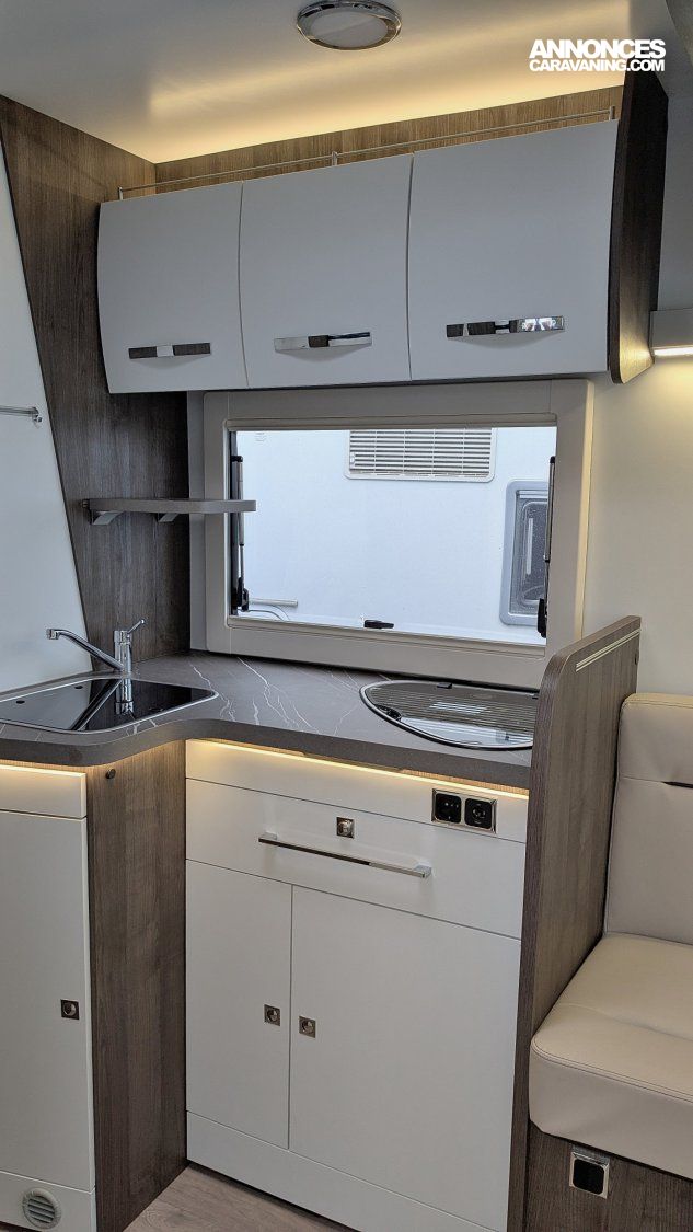 Autres atouts inclus : Carrosserie polyester, TECHNOLOGIE SANS BOIS ISB (inserts polyuréthane + XPS), Fenêtres double vitrage D-Lux affleurantes, Réfrigérateur/congélateur (140l) AES+ tiroir 9 bouteilles 1,5l, Fenêtre et moustiquaire sur porte cellule, Lit pavillon électrique, ABS, ESP, airbag conducteur et passager, régulateur de vitesse, sièges conducteur et passager tournants, hauteur et accoudoirs réglables. Assises inclinables, fermeture centralisée, volant gainé cuir et réglable, radio avec commandes au volant, frein à main escamotable, vide poche pavillon, cabine type aéronautique, climatisation cabine, phares antibrouillard.