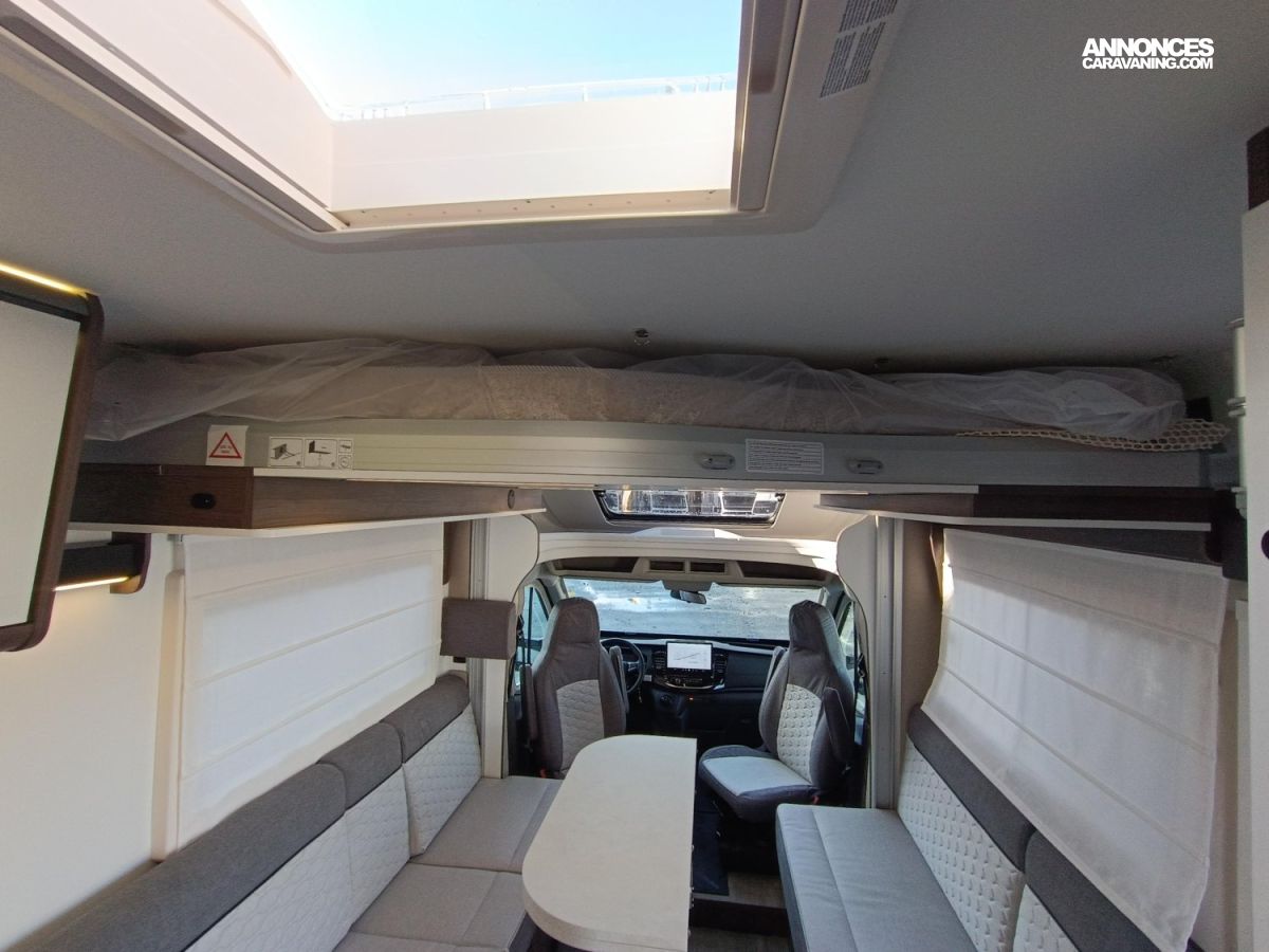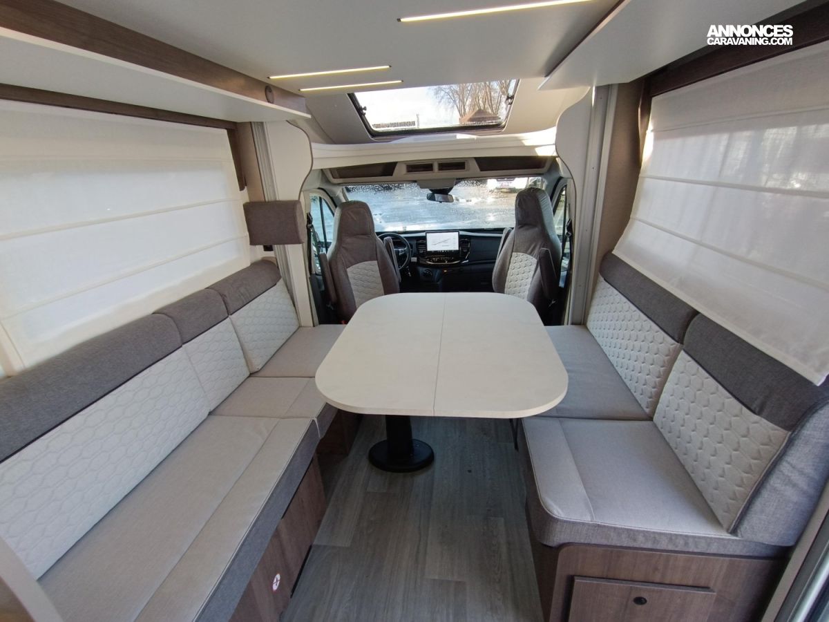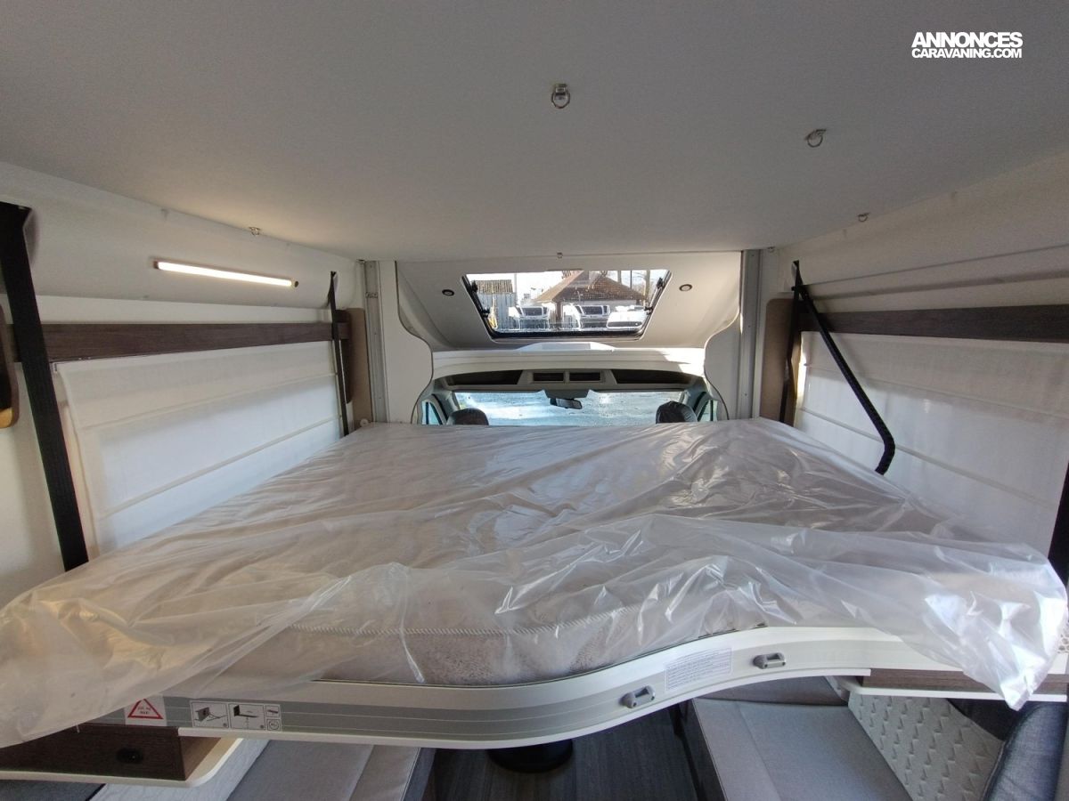 SIEGES AVEC FIXATIONS ISOFIX, PORTE CELLULE XL AVEC 2 POINTS DE FERMETURE, LE PACK PLUS COMPREND :, PARE-CHOCS AVANT COULEUR CARROSSERIE, PHARES HALOGENES AVEC FEUX D ANGLES FIXES, SIEGES CABINE HABILLES AVEC TISSU CELLULE, SKYDOME, BOITE A GANTS VERROUILLABLE, MOUSTIQUAIRE DE PORTE, SUPPORT TV, LUMIERE EXTERIEURE LED, RADAR DE RECUL, PANNEAU SOLAIRE 200W AVEC REGULATEUR MPPT, RIDEAUX OCCULTATION VITRES CABINE, ENTOURAGE GRILLES TABLEAU DE BORD GRIS ALU