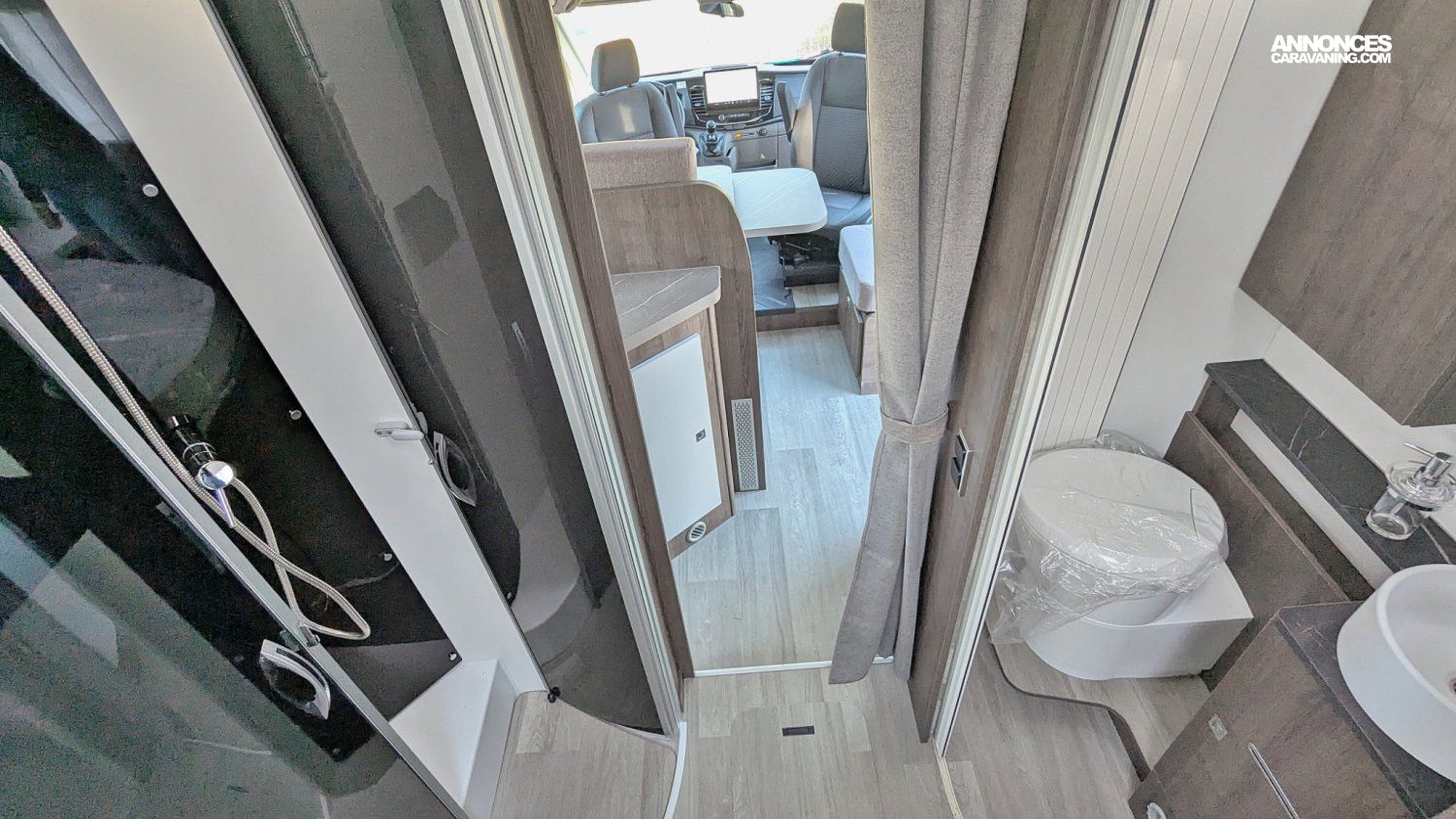 Atouts inclus : Carrosserie polyester, TECHNOLOGIE SANS BOIS ISB (inserts polyuréthane + XPS), Fenêtres double vitrage D-Lux affleurantes, Réfrigérateur/congélateur (140l) AES+ tiroir 9 bouteilles 1,5l, Chauffage 4000 w, Fenêtre et moustiquaire sur porte cellule, Lit pavillon électrique, ABS, ESP, Traction +, airbag conducteur et passager, régulateur/limiteur de vitesse, sièges conducteur et passager tournants, accoudoirs réglables, volant gainé cuir et réglable, Phares antibrouillard, rétroviseurs électriques et dégivrants, frein à main électrique, systèmes avancés d'aide à la conduite, contrôle de la pression des pneus, climatisation cabine automatique, combiné multimédia DAB Android/Apple Carplay 12" avec caméra de recul et commandes tableau de bord semi-numériques, radar de recul, sièges isofix,