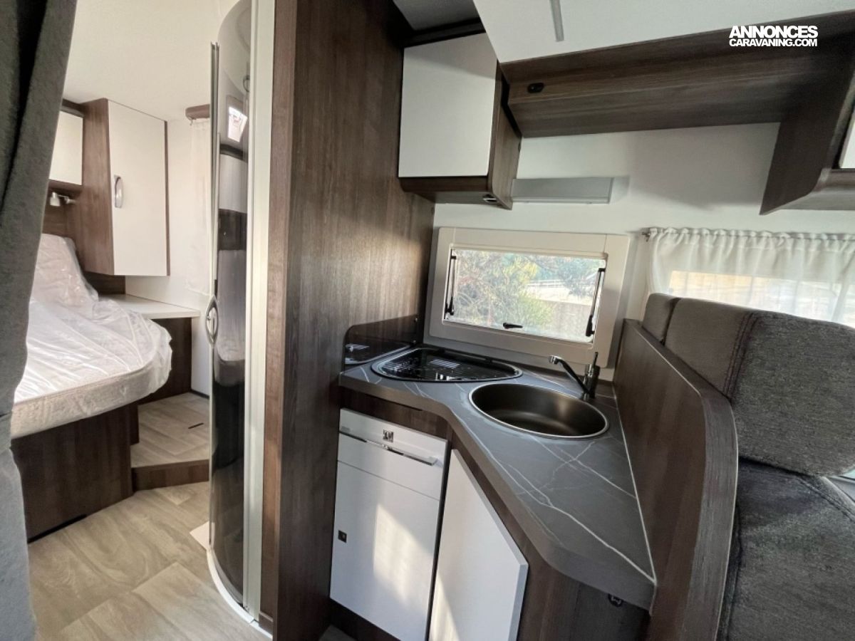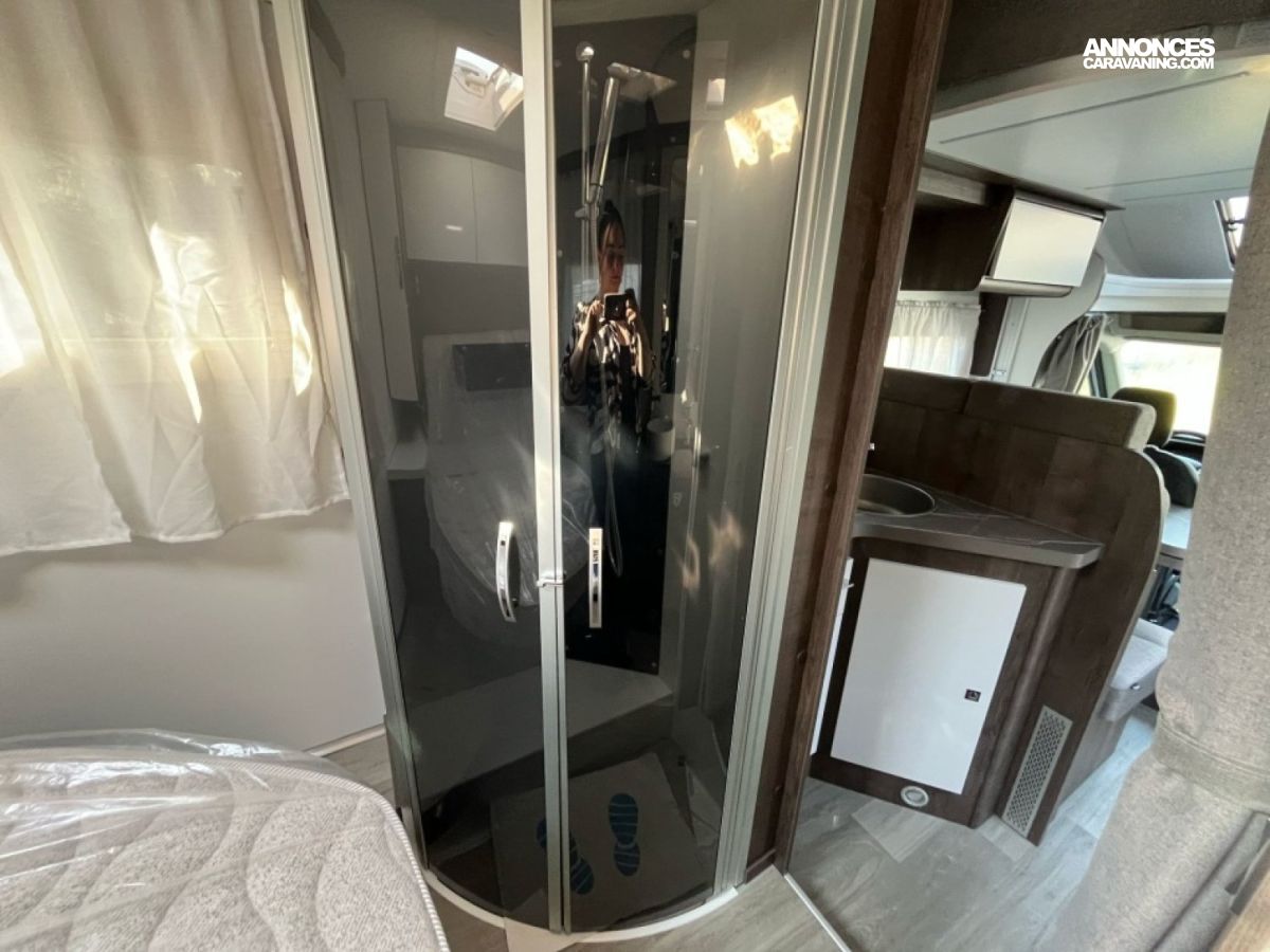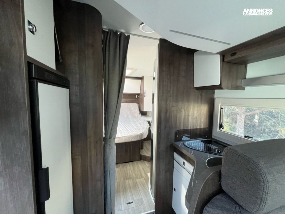Idéal pour un couple ou une petite famille, ce profilé compact de 7 m offre confort et praticité : lit central arrière, salon lumineux avec 5 places carte grise, cuisine équipée, grand frigo et salle d’eau avec douche séparée. Facile à conduire, il vous accompagne partout en toute liberté