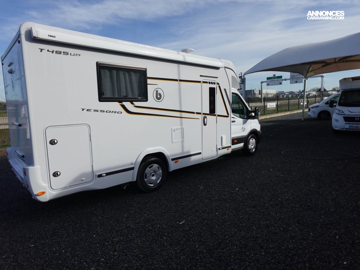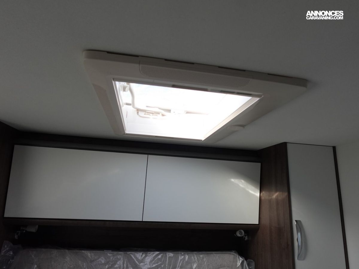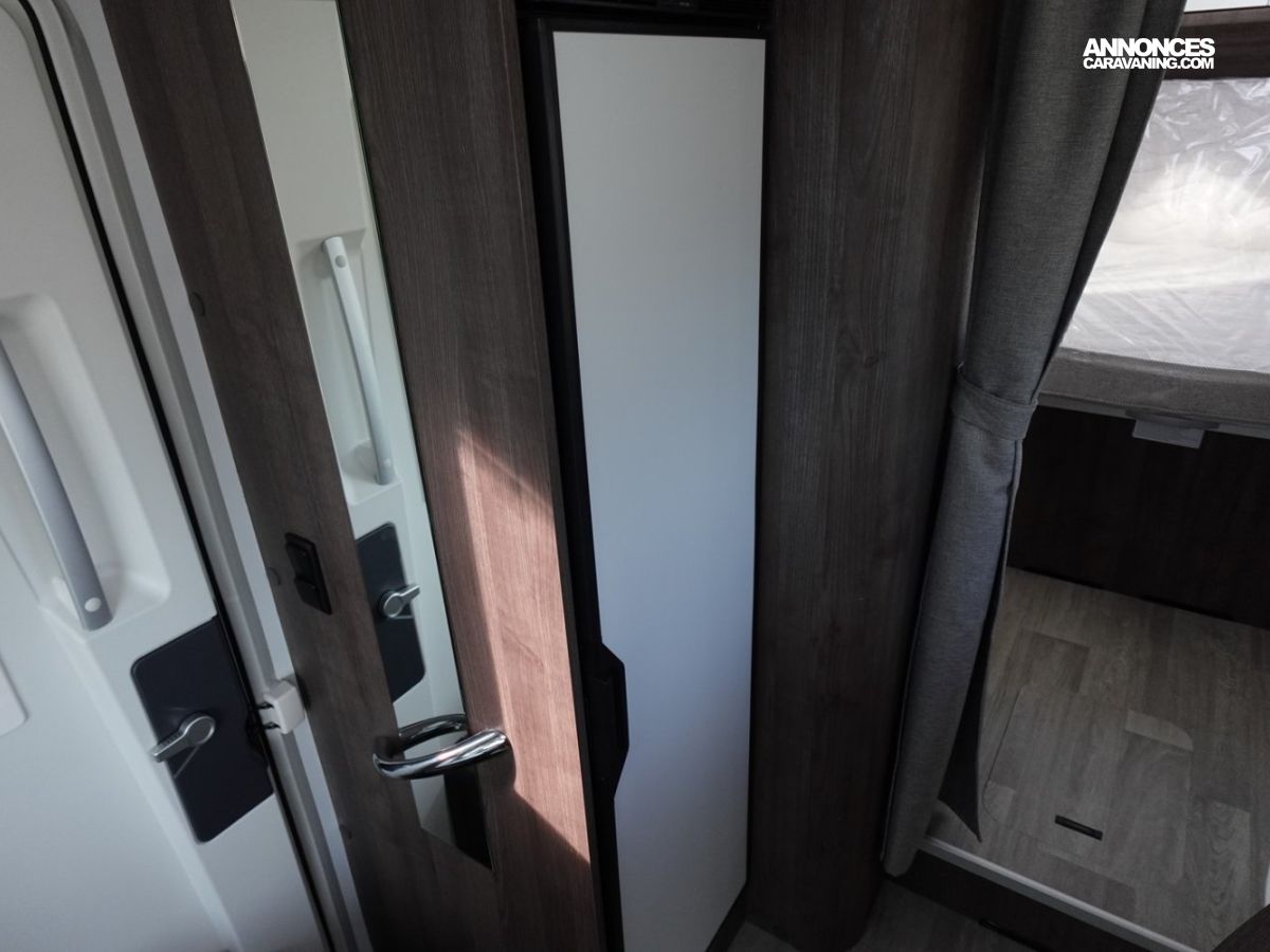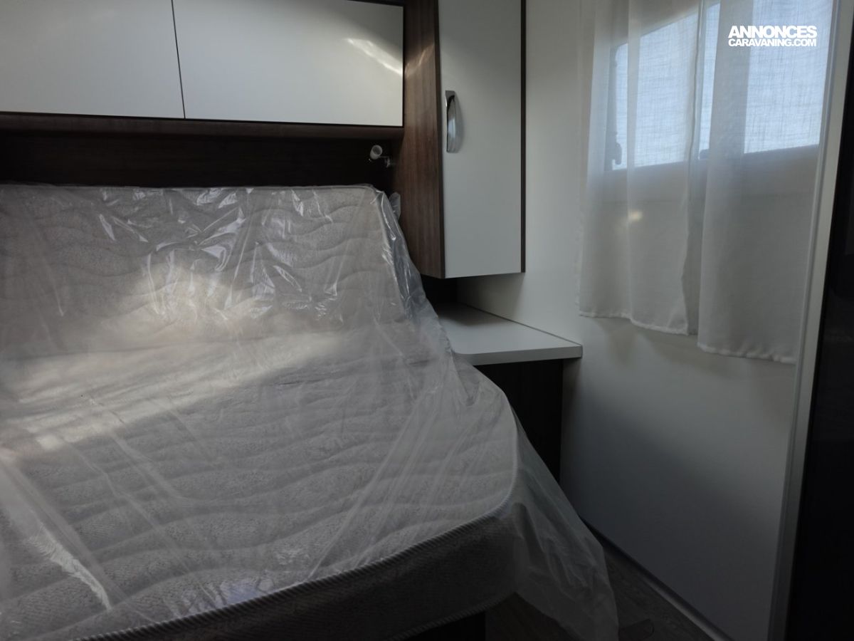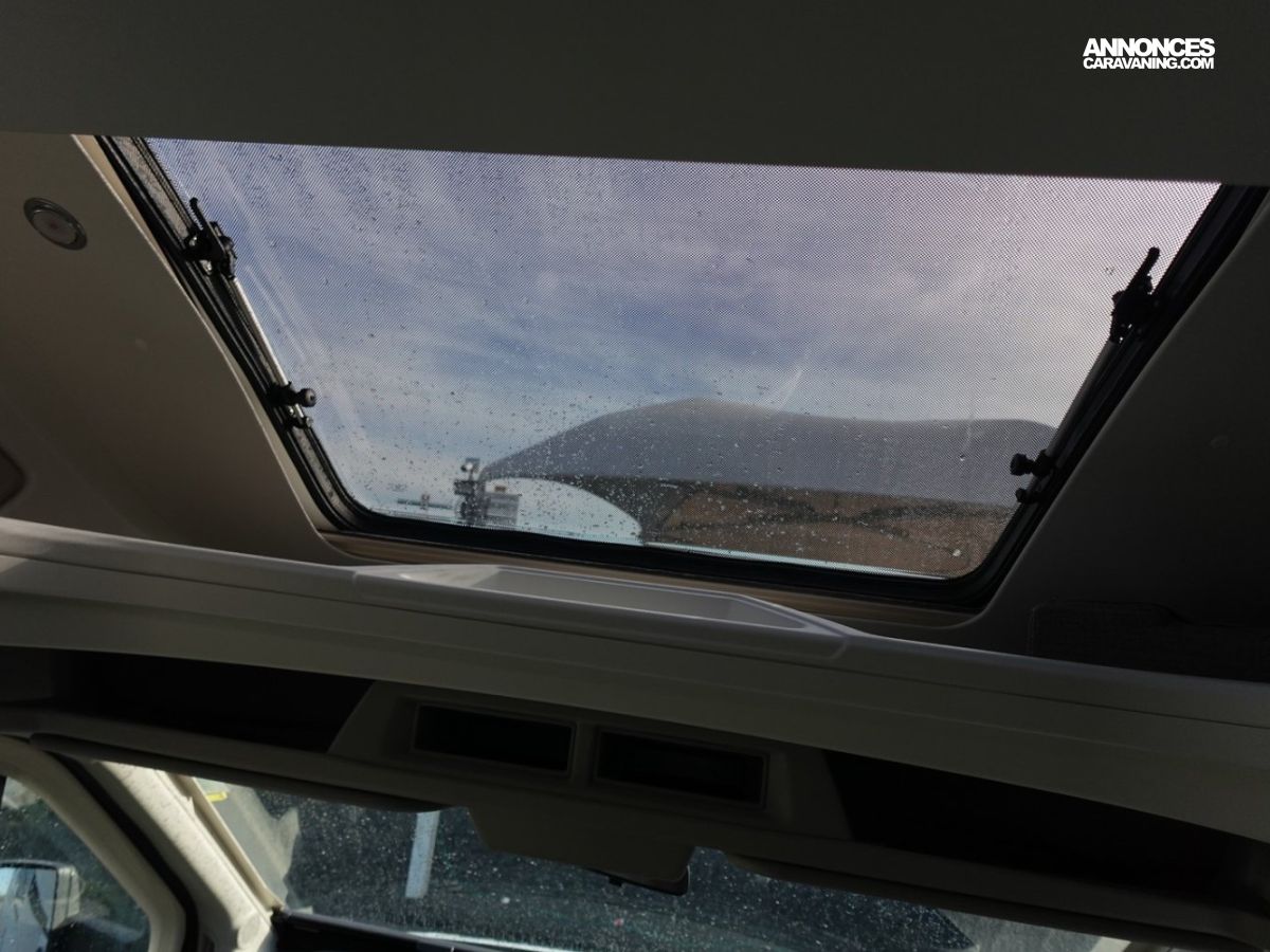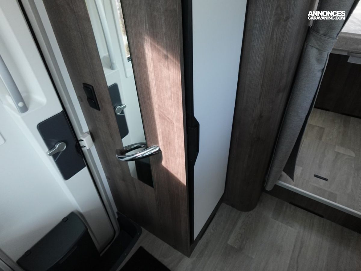 Profilé déjà tout équipé et prêt à partir comprenant un lit central, une douche indépendante de l’espace WC / lavabo, une cuisine en L avec de nombreux rangements, un salon avant panoramique et un lit de pavillon 2 places.
