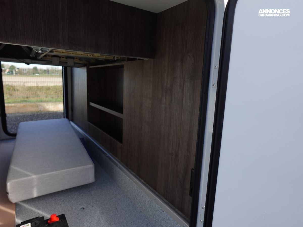 (Moteur 165 CV, Panneau solaire 200 W avec régulateur MPPT, Rideaux occultation vitres cabine, Porte cellule avec fenêtre + poubelle + moustiquaire, Lumière extérieure LED, Télévision 20 pouces, Antenne TV omnidirectionnelle, Pré-installation 2ème batterie, Radar de recul, Store extérieur, Eclairage intérieur placard, Housses de cabine, Kit départ)