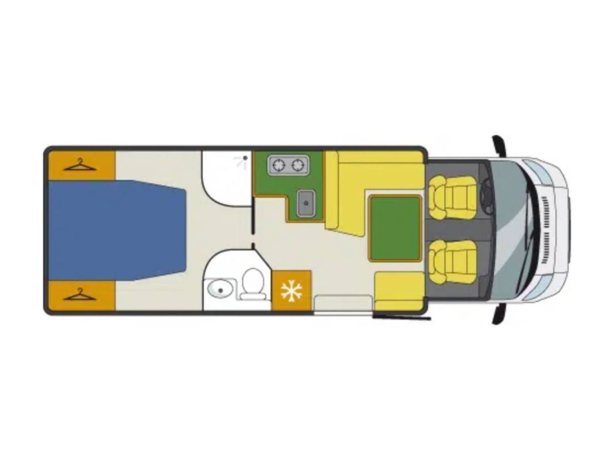 Un profilé compact de moins de 7 m, parfaitement adapté aux familles grâce à ses 5 places carte grise et ses 5 couchages, équipé d’un confortable lit central et d’un espace vie très fonctionnel.