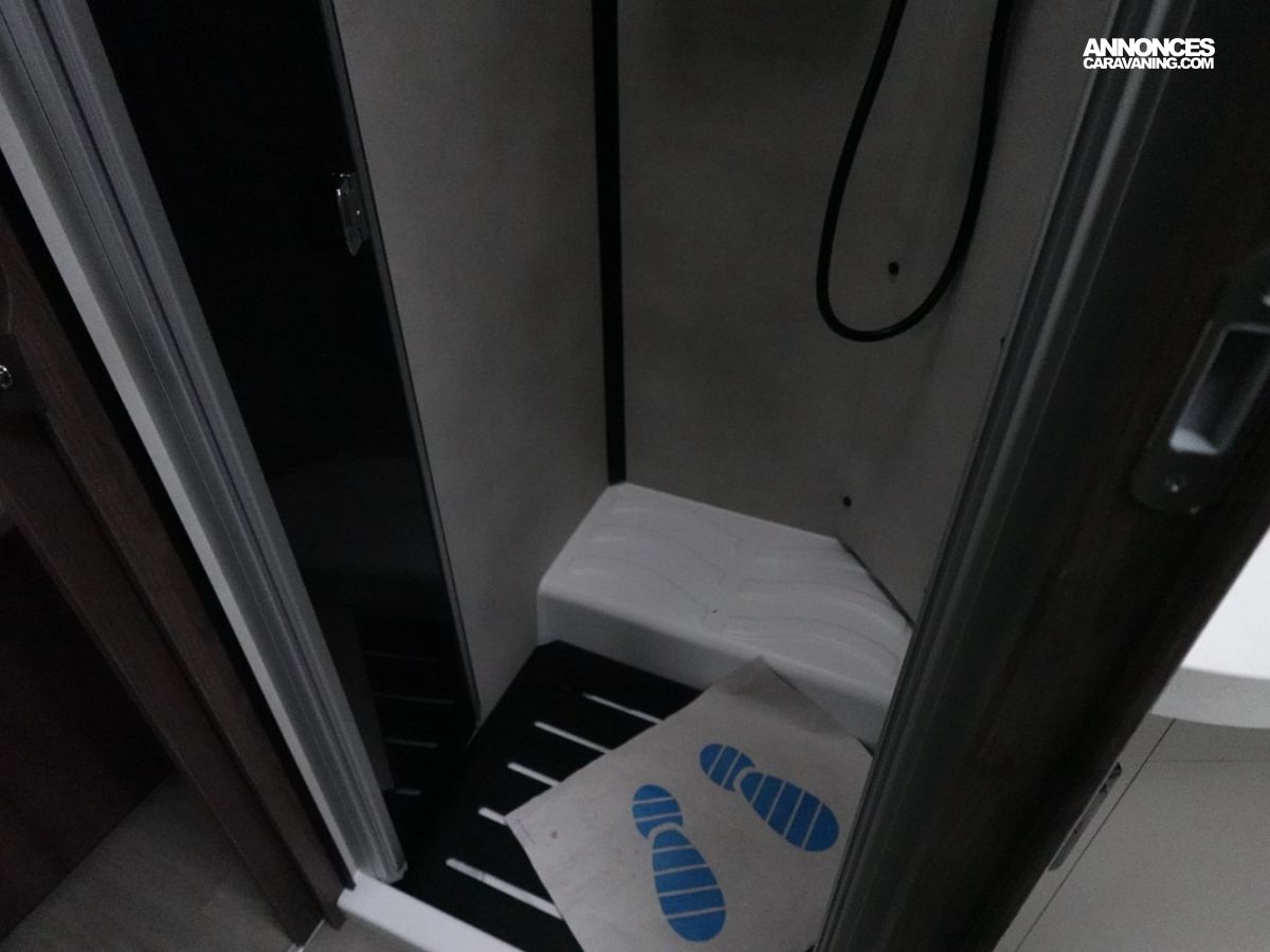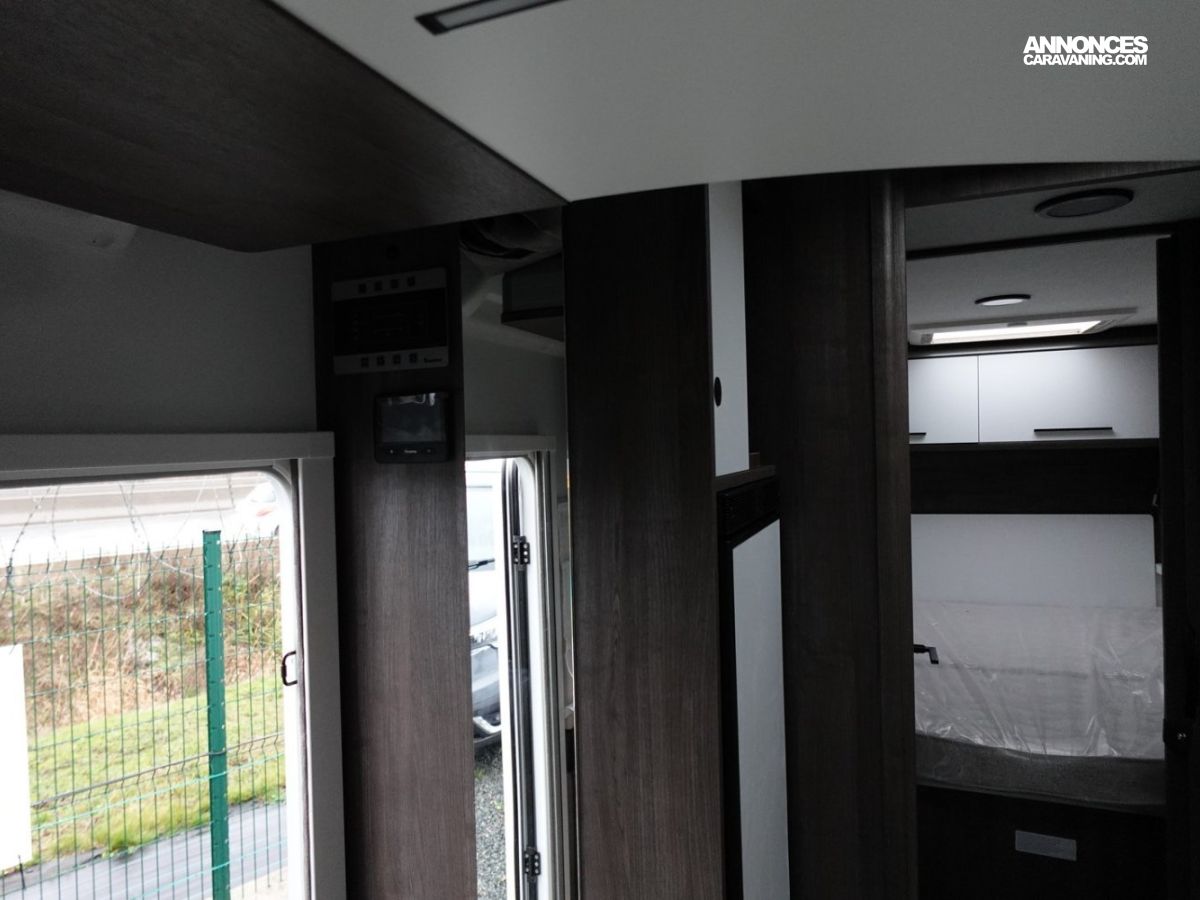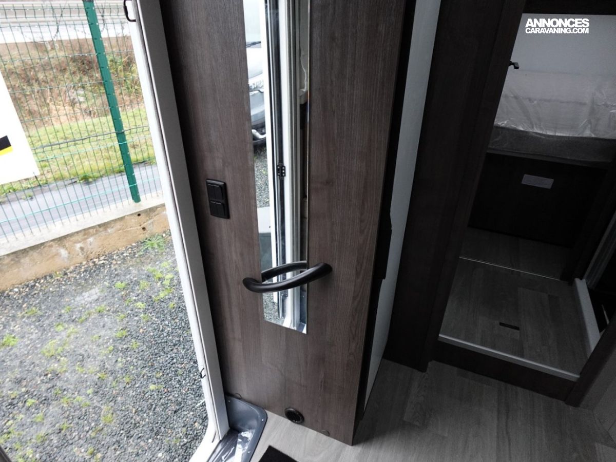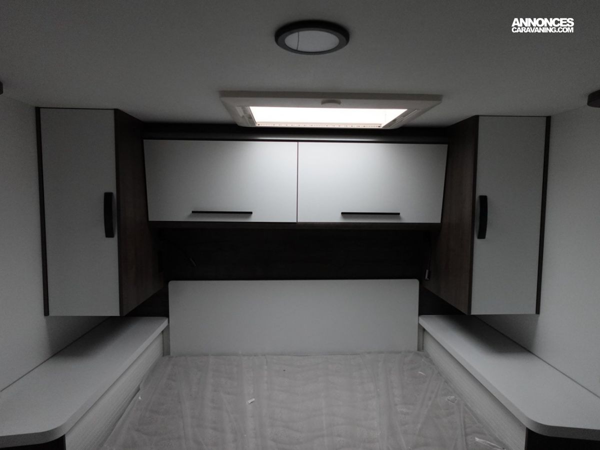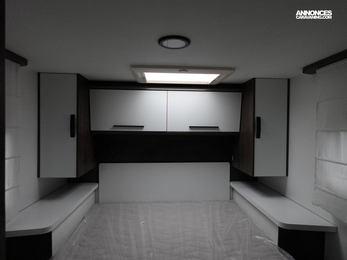 (Panneau solaire 200 W avec régulateur MPPT, Rideaux d’occultation vitres cabine, Porte cellule WL avec 2 points + fenêtre + moustiquaire + poubelle, Housses de sièges cabine, Lumière extérieure LED, Projecteurs halogènes de virage, Radars de recul, Eclairage intérieur au plafond, Stores vénitiens, ISOFIX, Support TV, Pré-installation 2ème batterie, Skyview, Boite à gants avec serrure, Tableau de bord et garniture Trend, Pare-chocs et moulures latérales peints dans la couleur de la carrosserie)