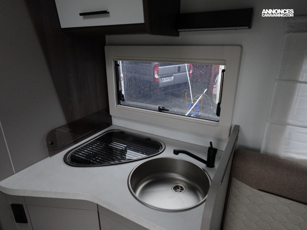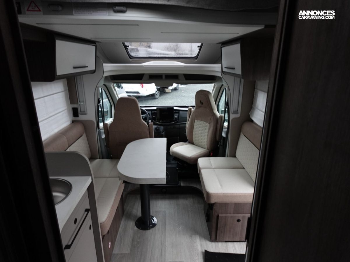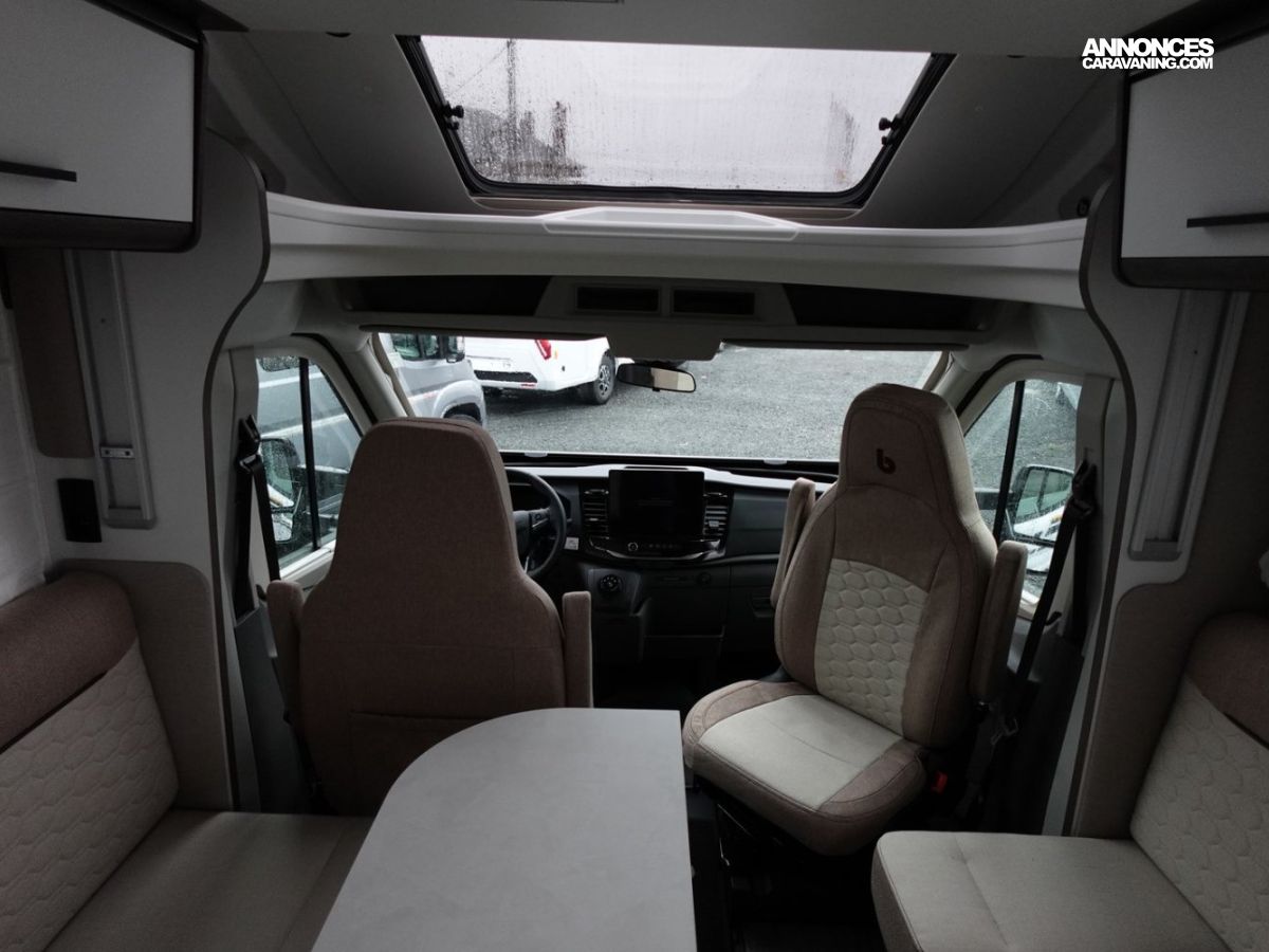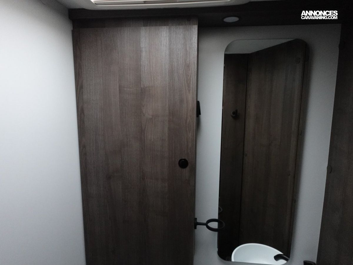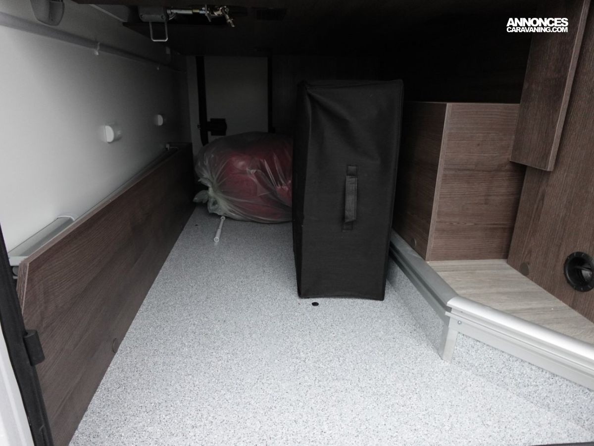 (Panneau solaire 200 W avec régulateur MPPT, Rideaux d’occultation vitres cabine, Porte cellule WL avec 2 points + fenêtre + moustiquaire + poubelle, Housses de sièges cabine, Lumière extérieure LED, Projecteurs halogènes de virage, Radars de recul, Eclairage intérieur au plafond, Stores vénitiens, ISOFIX, Support TV, Pré-installation 2ème batterie, Skyview, Boite à gants avec serrure, Tableau de bord et garniture Trend, Pare-chocs et moulures latérales peints dans la couleur de la carrosserie)