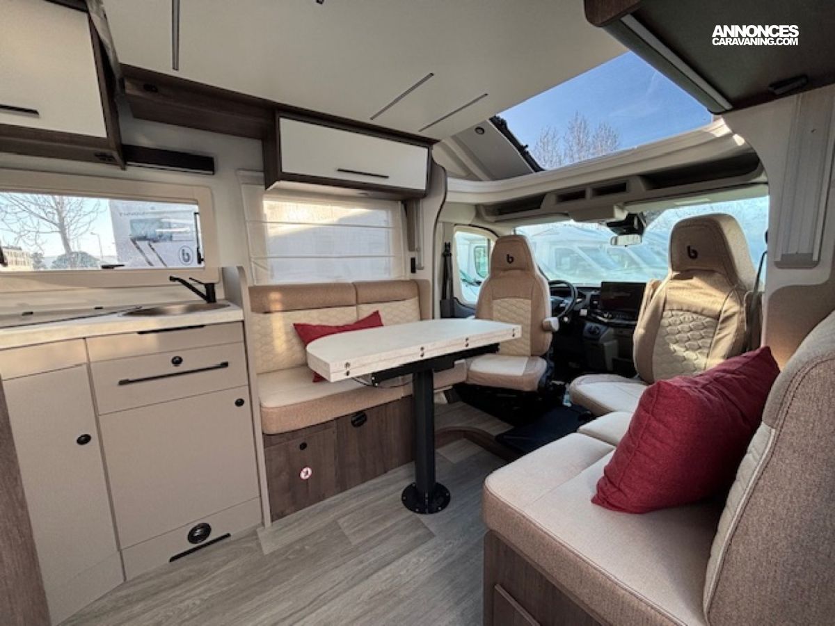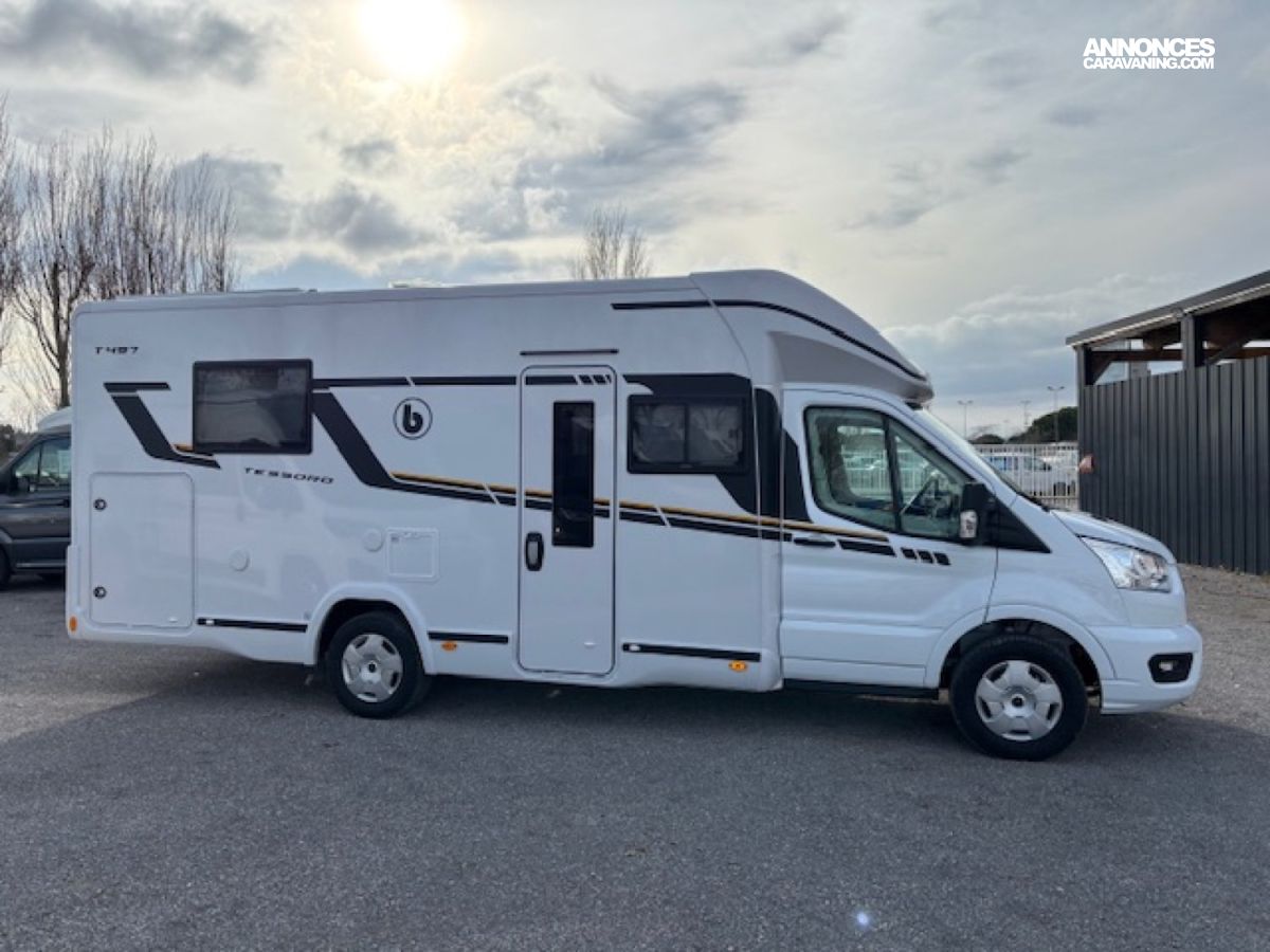 Voyagez avec tout le confort d un vrai petit chez-vous grâce au Benimar Tessoro T497, un profilé spacieux et moderne en boite automatique pensé pour vos escapades en toute liberté. Profitez d un vaste salon face à face pour des moments conviviaux, d un grand lit central 150 cm pour des nuits reposantes, et d un lit pavillon pour accueillir famille ou amis. La salle d eau indépendante avec grande douche et WC séparés garantit votre confort au quotidien.