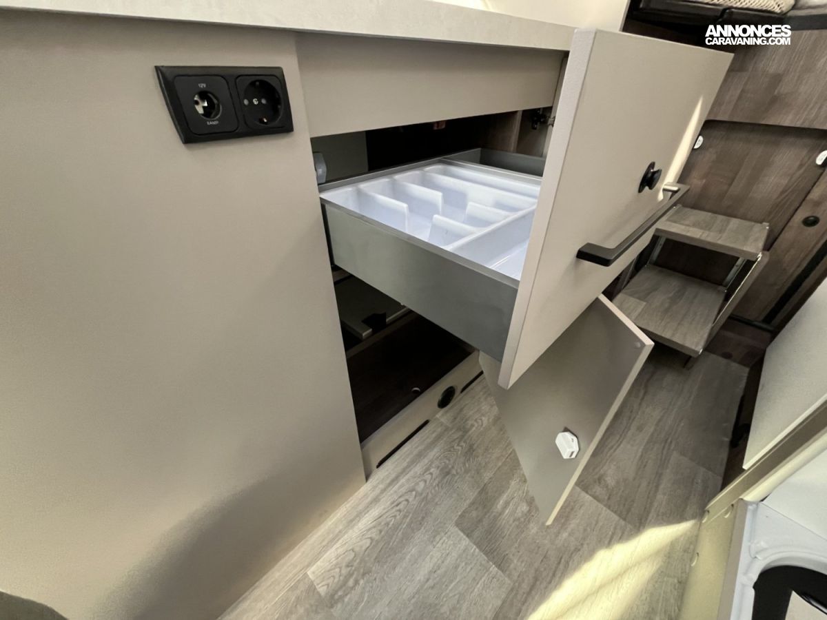 CLIMATISATION CABINE AUTOMATIQUE, REGULATEUR ET LIMITEUR DE VITESSE, COMMANDES AU VOLANT, VOLANT CUIR, RADIO DAB 12 POUCES, FREIN A MAIN ELECTRIQUE, FREIN AUTOMATIQUE EN COTE, START AND STOP, Housses de sièges, CAMERA DE RECUL, ESP, PACK WINTER, PACK + QUI COMPREND :, Panneau solaire 200 W et MPPT, Occulants cabine, Lumière extérieure, Radars de recul, Isofix, Skyview, Pare chocs peints, Fermeture centralisée, ANTIBROUILLARDS AV
