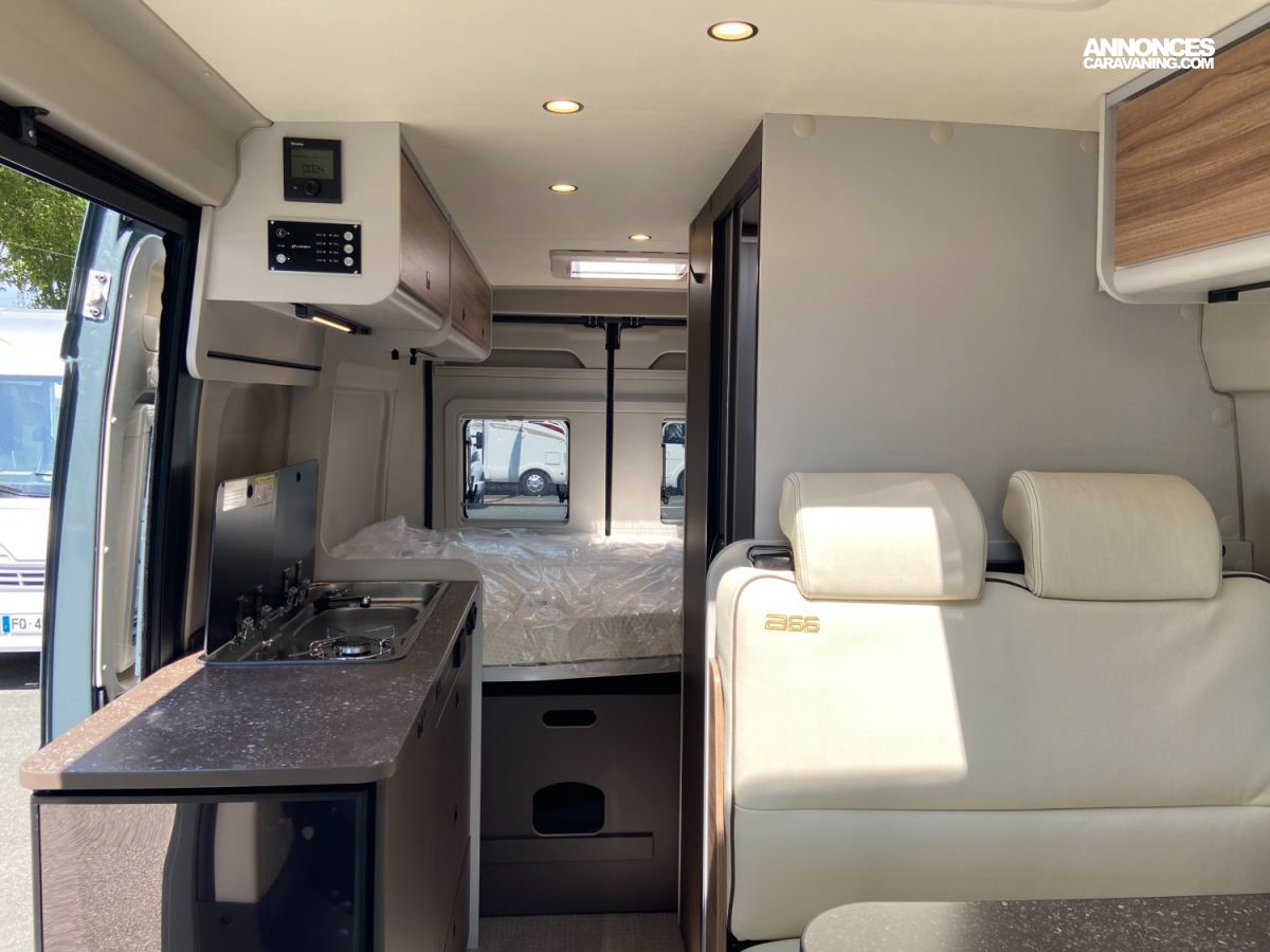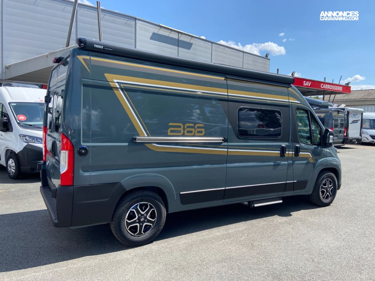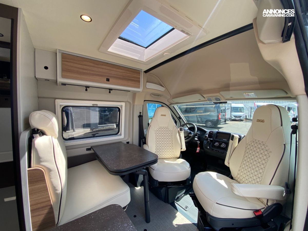 MOUSTIQUAIRE DE PORTE, SELLERIE CUIR COULEUR CREME, BAIE LATERALE ARRIERE GAUCHE, SALLE DE BAIN VARIO, GRAND COUCHAGE 150 CM, REFRIGERATEUR A COMPRESSION 90L, SERIE SPECIALE B 66 :, MOTORISATION FIAT 2.2 L 140 CV - BVA, JANTES ALU 16", FEUX ANTIBROUILLARD AVANT, VOLANT CUIR, COULEUR CARROSSERIE GRIS LANZAROTE, STATION MULTIMEDIA AVEC CAMERA DE RECUL, STORE EXTERIEUR ANTHRACITE 3.75 M, MARCHEPIED ELECTRIQUE, STORES PLISSES CABINE