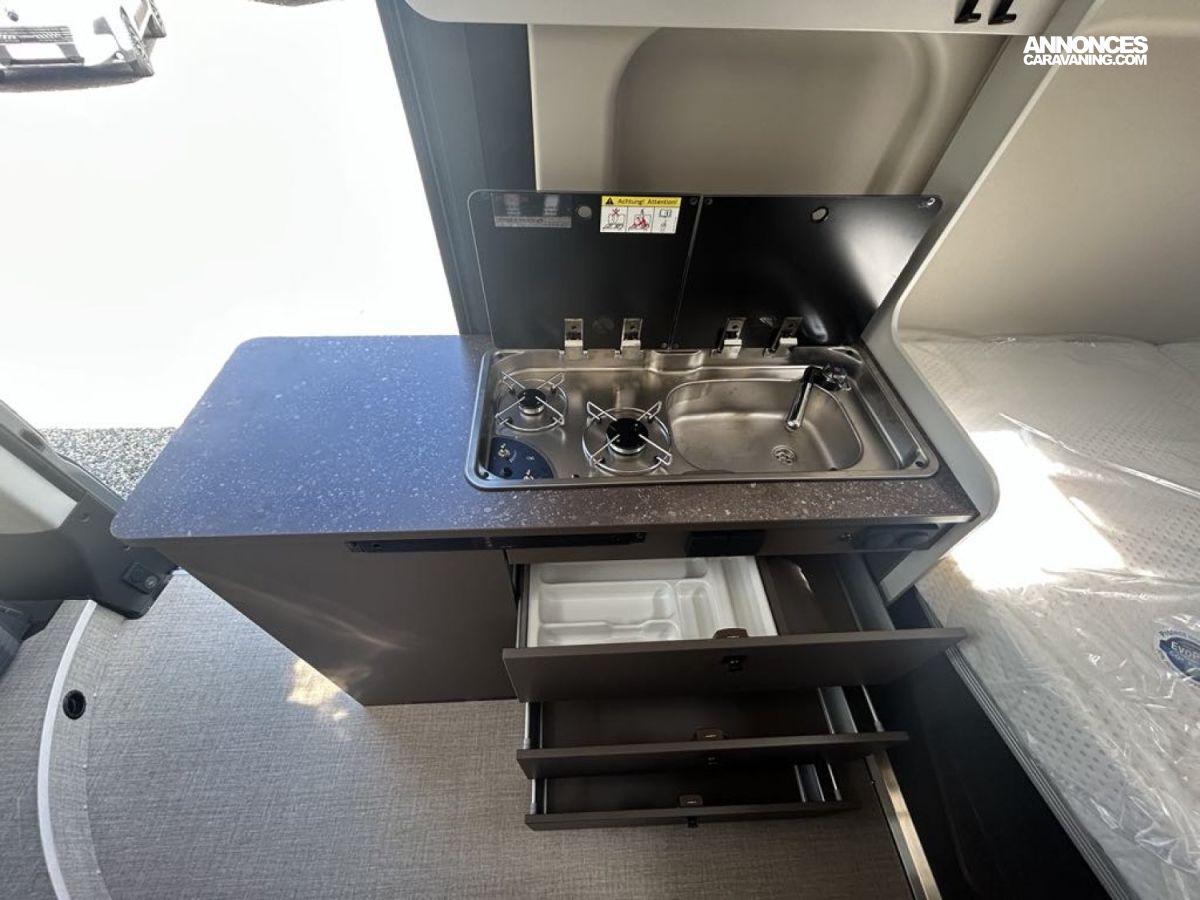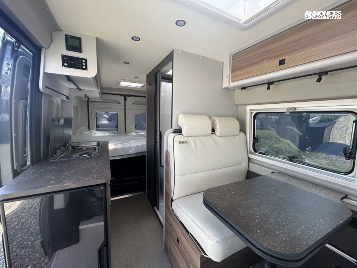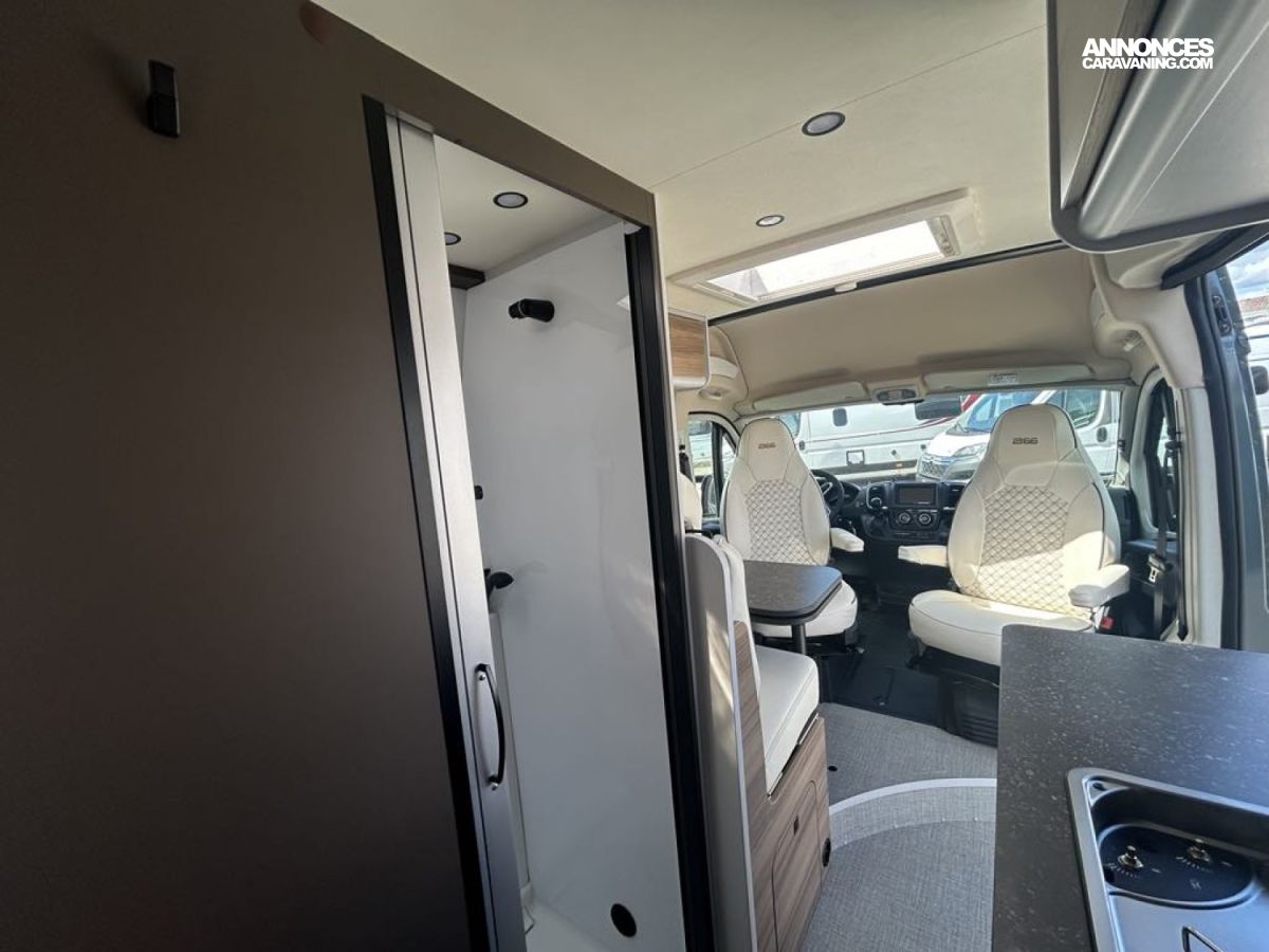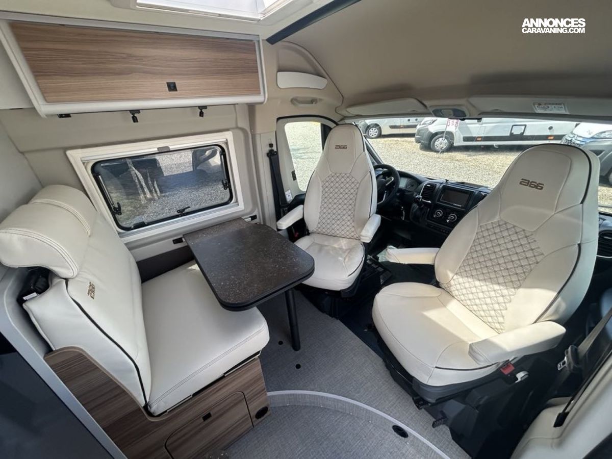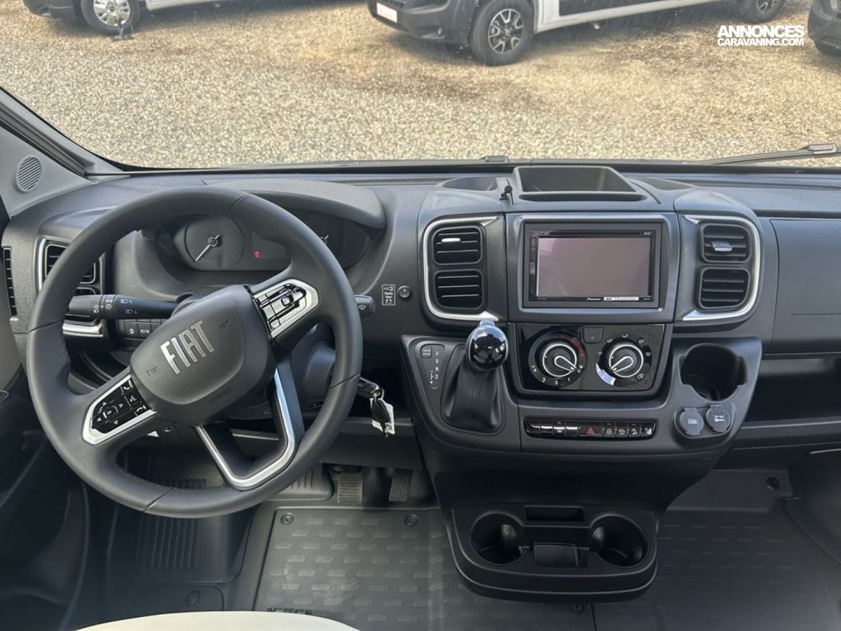 MOTORISATION FIAT 2.L 140 CV, CAMERA DE RECUL, MOUSTIQUAIRE PORTE CELLLULE, STORE EXTERIEUR ANTHRACITE 3.75m, STORE PLISSEE CABINE, JANTES ALU 16'', STATION MULTIMEDIA, SELLERIE EXCLUSIVE CUIR, PACK ECLAIRAGE, BVA, FEU ANTIBROUILLARD AV, COLORIS GRIS LANZAROTE