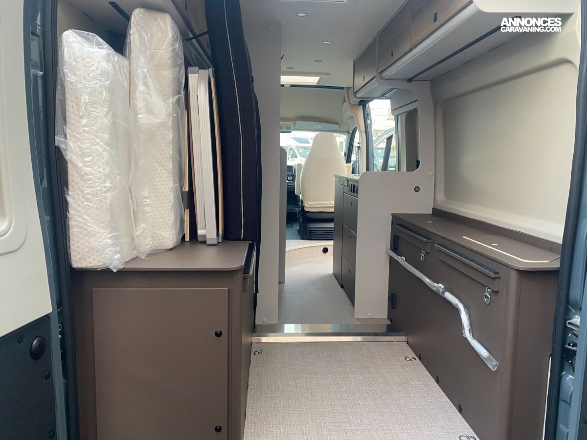 Store extérieur anthracite 3,75 m, Pack éclairage, Boîte automatique 140 ch, Jantes aluminium 16’’ bicolores, Marchepied électrique, Réchaud 2 feux avec évier et plaque de protection en verre, Réfrigérateur à compression 84l, Station multimédia avec caméra de recul
