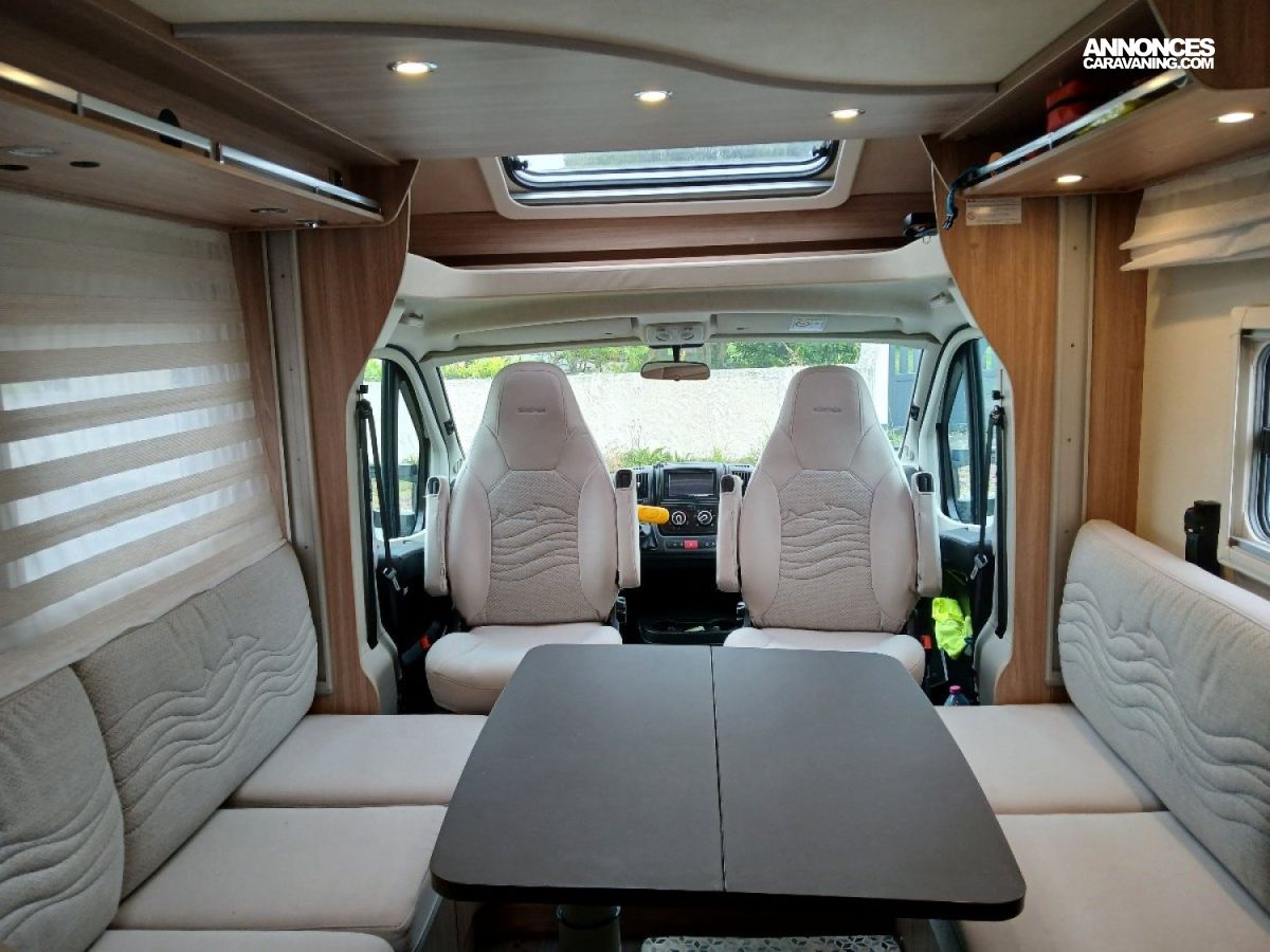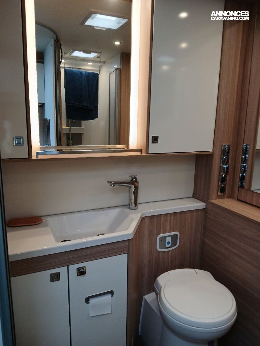 Disposant d'un grand salon, d'un excellent niveau d'équipements et d'une très belle finition. Grande soute avec ouvertures droite et gauche, dont une d'une hauteur XXL . Grand réfrigérateur-congélateur, très grande salle d'eau plus WC, grand dressing arrière, antenne satellite automatique et TV, panneau solaire, store intérieur cabine, éclairage LEDS intégré sur toute la longueur. Attelage. Contrôle technique OK.