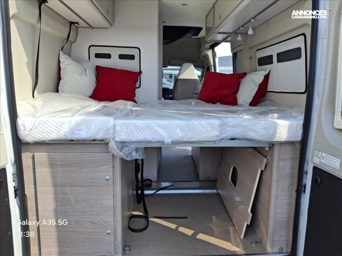 ABS, Airbag conducteur/PASSAGER, Baie SDB, Batterie cellule 95 Ah, Capteur de pression pneumatiques, Climatisation manuelle en cabine, Combiné chauffage/chauffe-eau, ESP, Feux de jour, Fix and Go Kit, Fixations Isofix, Housses sièges, Jantes aluminium 16", Lève-vitres électriques et verrouillage centralisé, Marchepied intégré lit AR, Matelas mousse confort milti-zones, Mode sélectionnable 4x2 ou 4x4, Peinture ext. blanche, Port USB cabine, Porte gobelets, Portes arrières avec baies, Programmateur CP Plus, Réfrigérateur à compresssion 65 L, Réservoir 90 l, Rideaux occultants, Stores plissés occultant cabine, Système 4x4 automatique à viscocoupleur, Table avec extension pivotante, Tirroirs coulissants, WC cassette