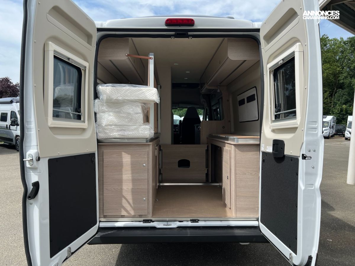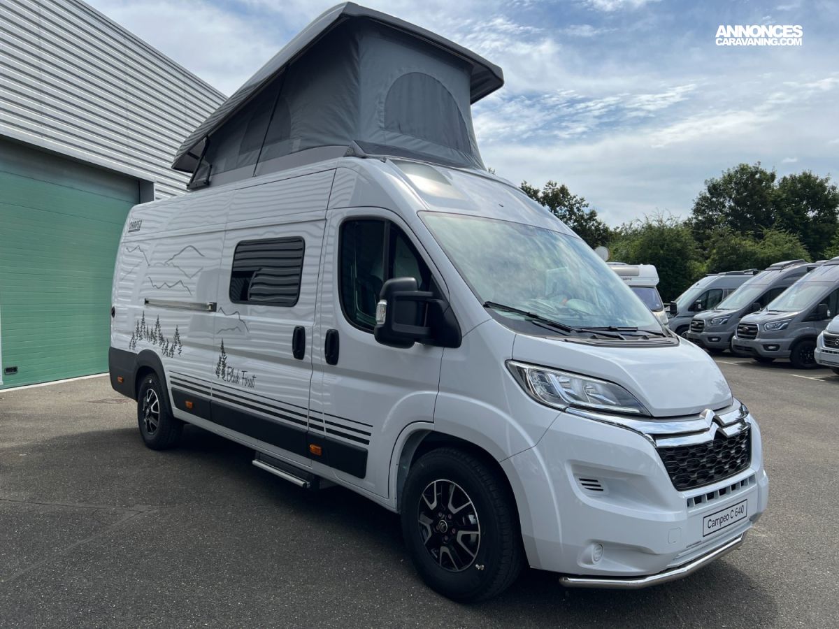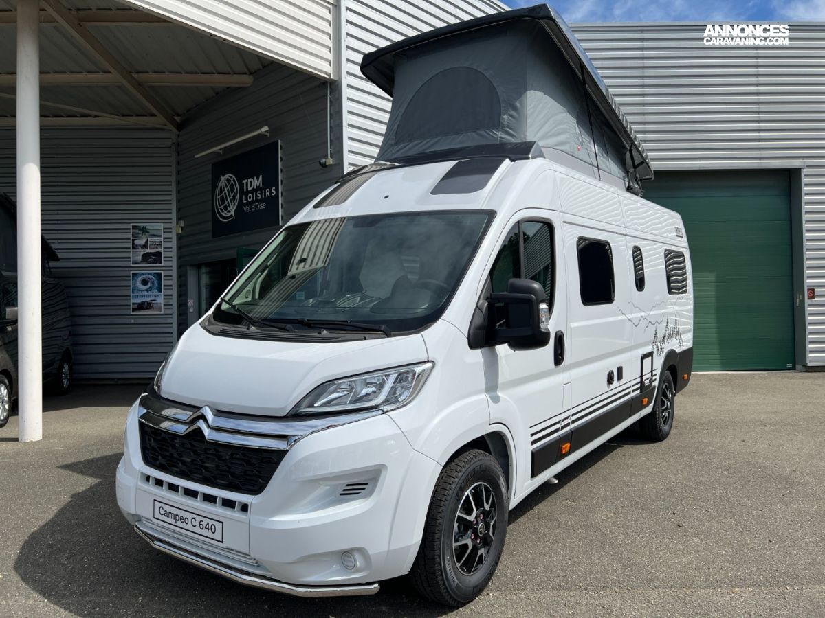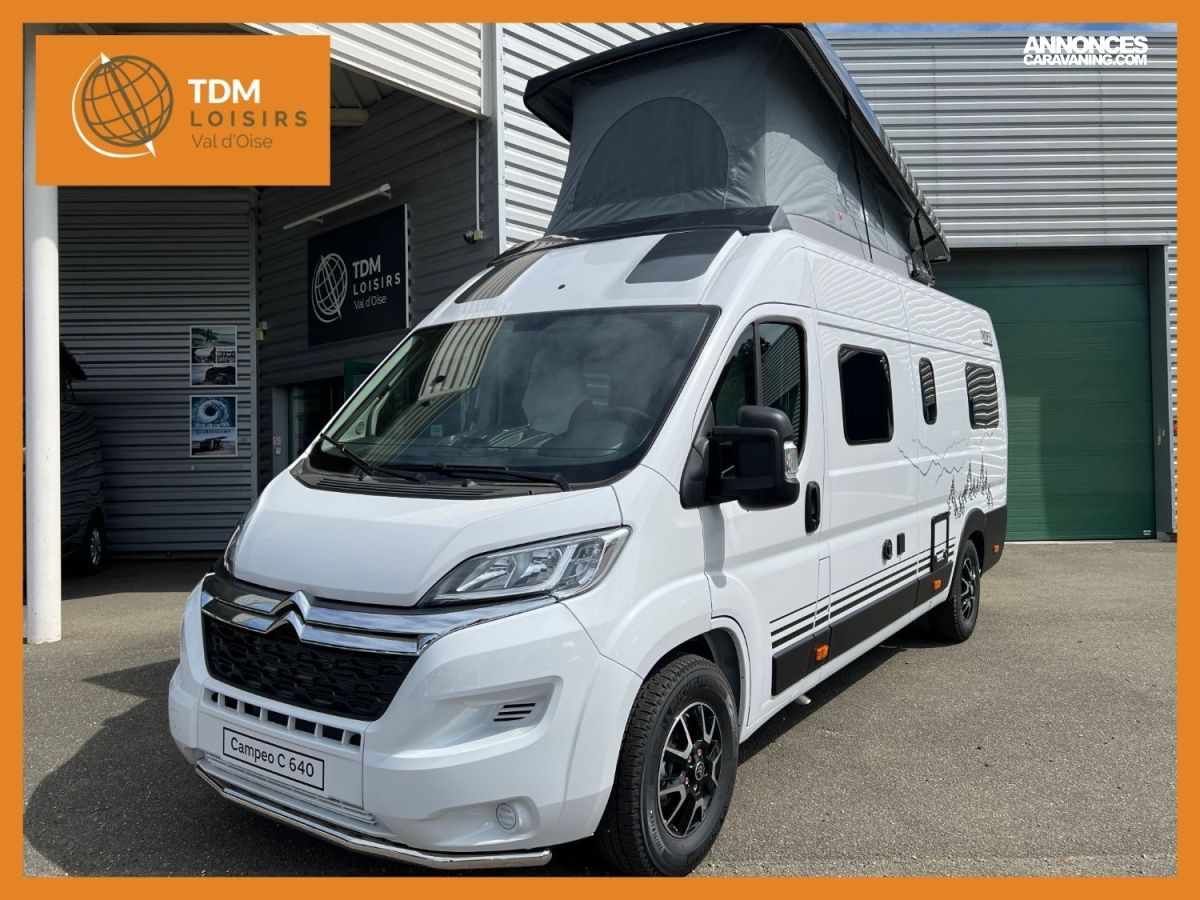 Bürstner Campeo C 640 Black Forest, motorisation 165 CV avec toit relevable anthracite. Ce modèle exclusif offre des baies à encadrement, jantes alu, décor et sellerie spécifiques, ainsi que le graphisme Black Forest. Équipé du pack Campeo Citroën : station multimédia Pioneer, rétroviseurs électriques, marchepied électrique, et bien plus encore. Parfait pour les escapades en famille ou entre amis. Contactez-nous pour plus de détails et une visite !