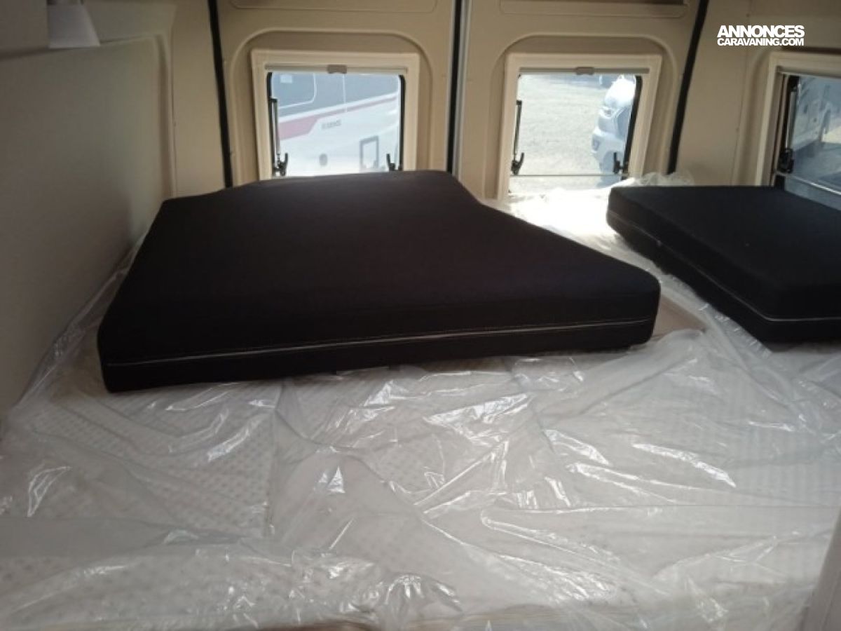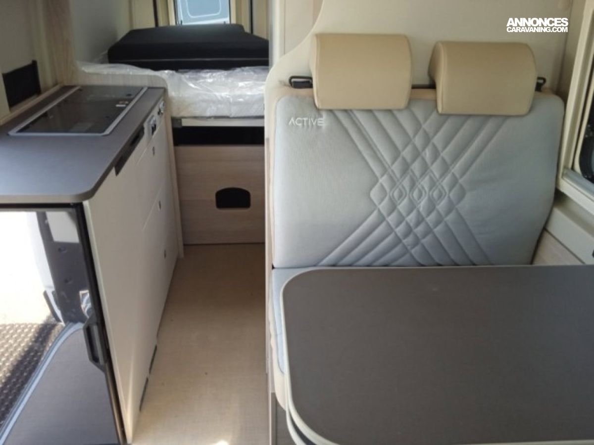 Batterie cellule 95 Ah, Combiné chauffage / chauffe-eau Combi 4, Cuisine avec réchaud deux feux, Éclairage LED, Lavabo fixe et douche intégrée, MODELE NEUF D EXPOSITION, Programmateur digital CP Plus, Réfrigérateur à compression 84 litres, Rideaux occultants, WC Cassette