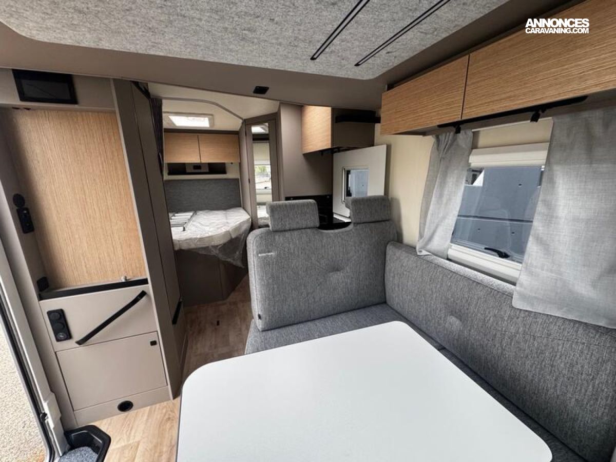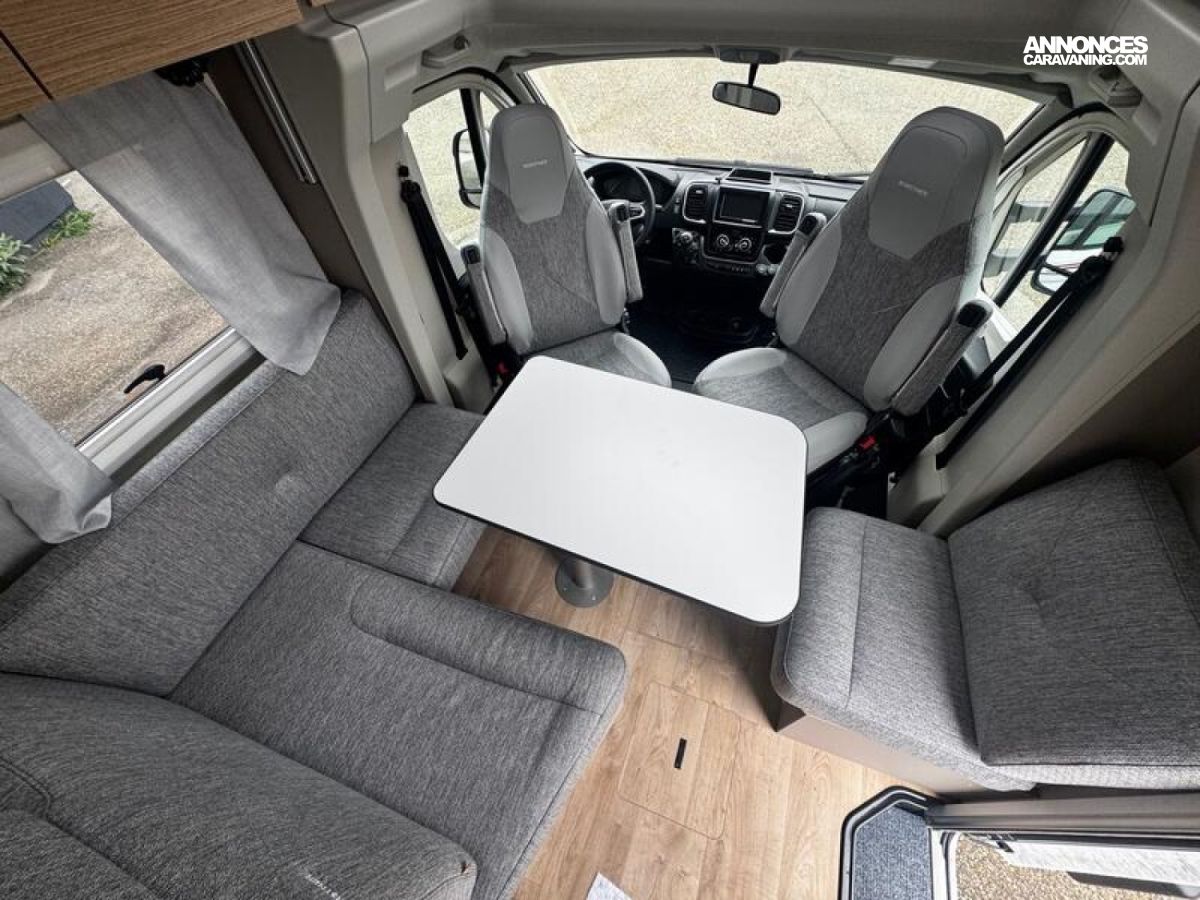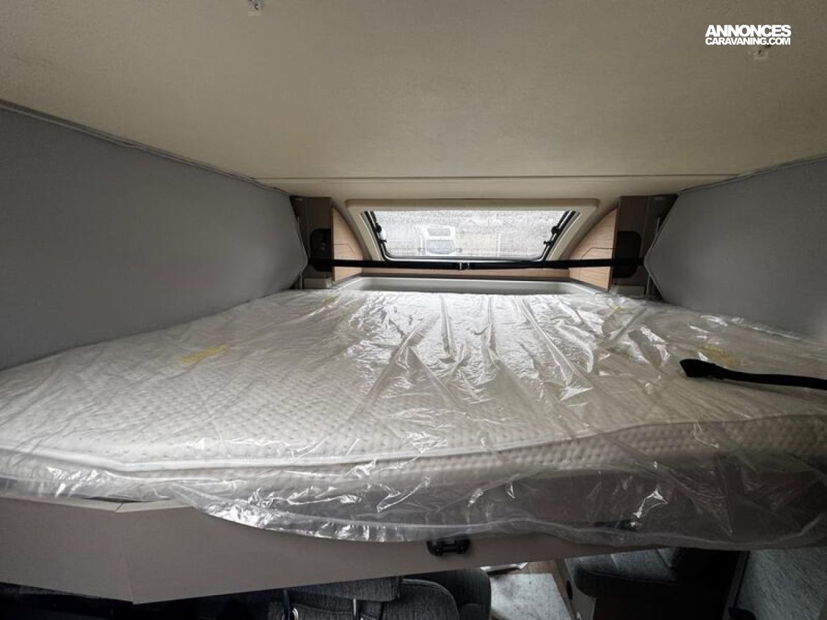 PACK CONFORT Stores plissés occultants cabine Sun-Roof Porte d'entrée large avec baie et verrouillage centralisé Baies à encadrement Lanterneau 50 x 70 cm Marchepied électrique éclairages indirects My Bürstner App Écran de contrôle 7" Porte de soute supplémentaire côté gauche + Lit de pavillon manuel : 6198 €