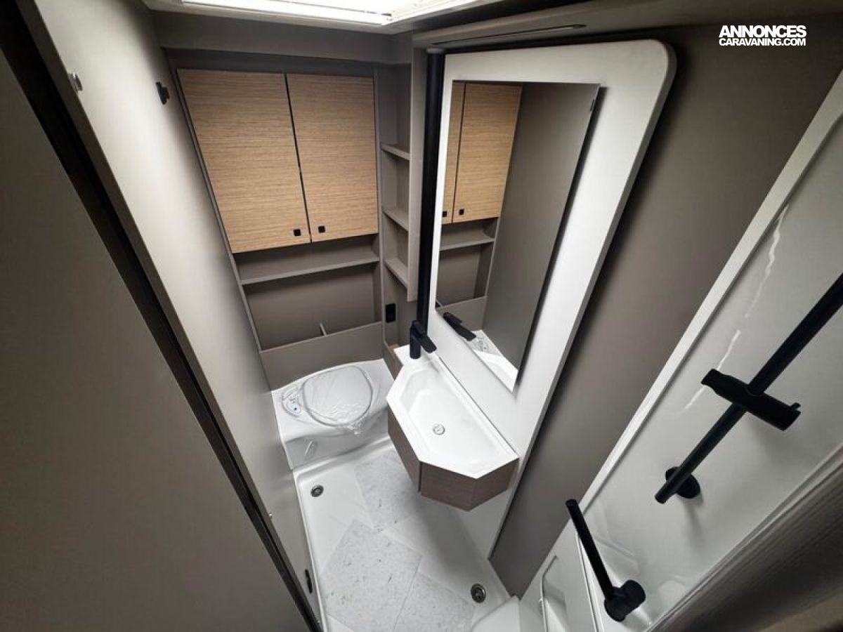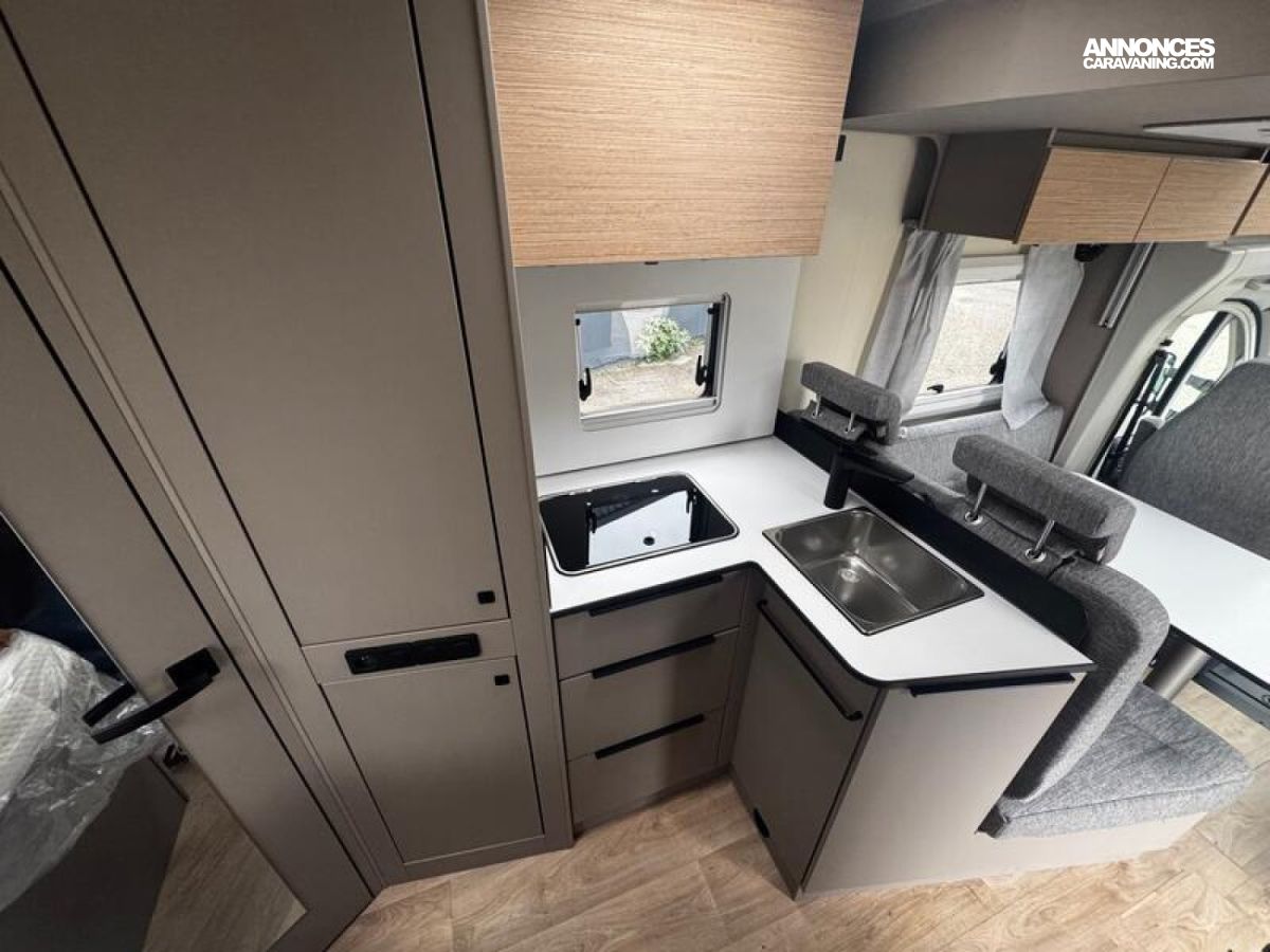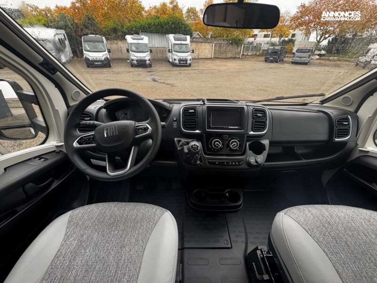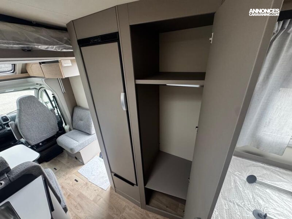 PACK CONFORT Stores plissés occultants cabine Sun-Roof Porte d'entrée large avec baie et verrouillage centralisé Baies à encadrement Lanterneau 50 x 70 cm Marchepied électrique éclairages indirects My Bürstner App Écran de contrôle 7" Porte de soute supplémentaire côté gauche + Lit de pavillon manuel : 6198 €