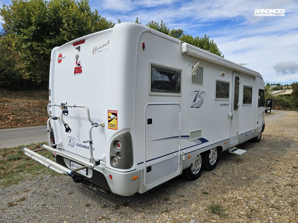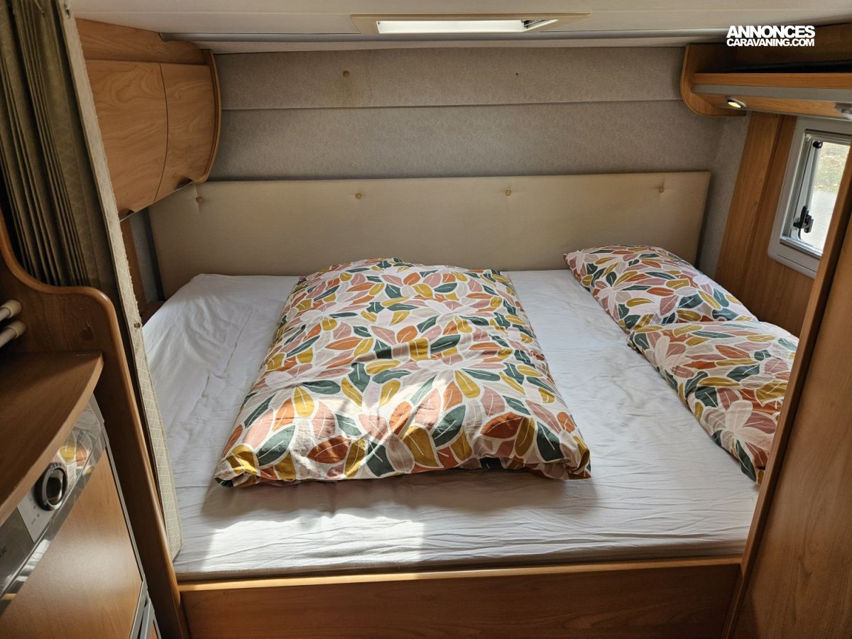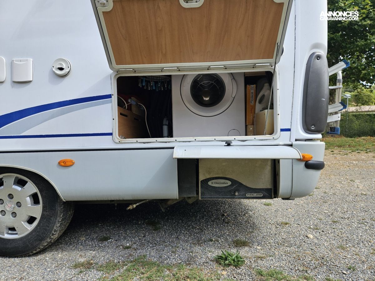 L'extérieur est également très complet. Il dispose d'un store extérieur de 4 mètres, d'un attelage, d'un marchepied électrique, d'un porte vélos (2), de jantes aluminium, d'une roue de secours, de feux antibrouillard et de tiroirs de bas de caisse pratiques.