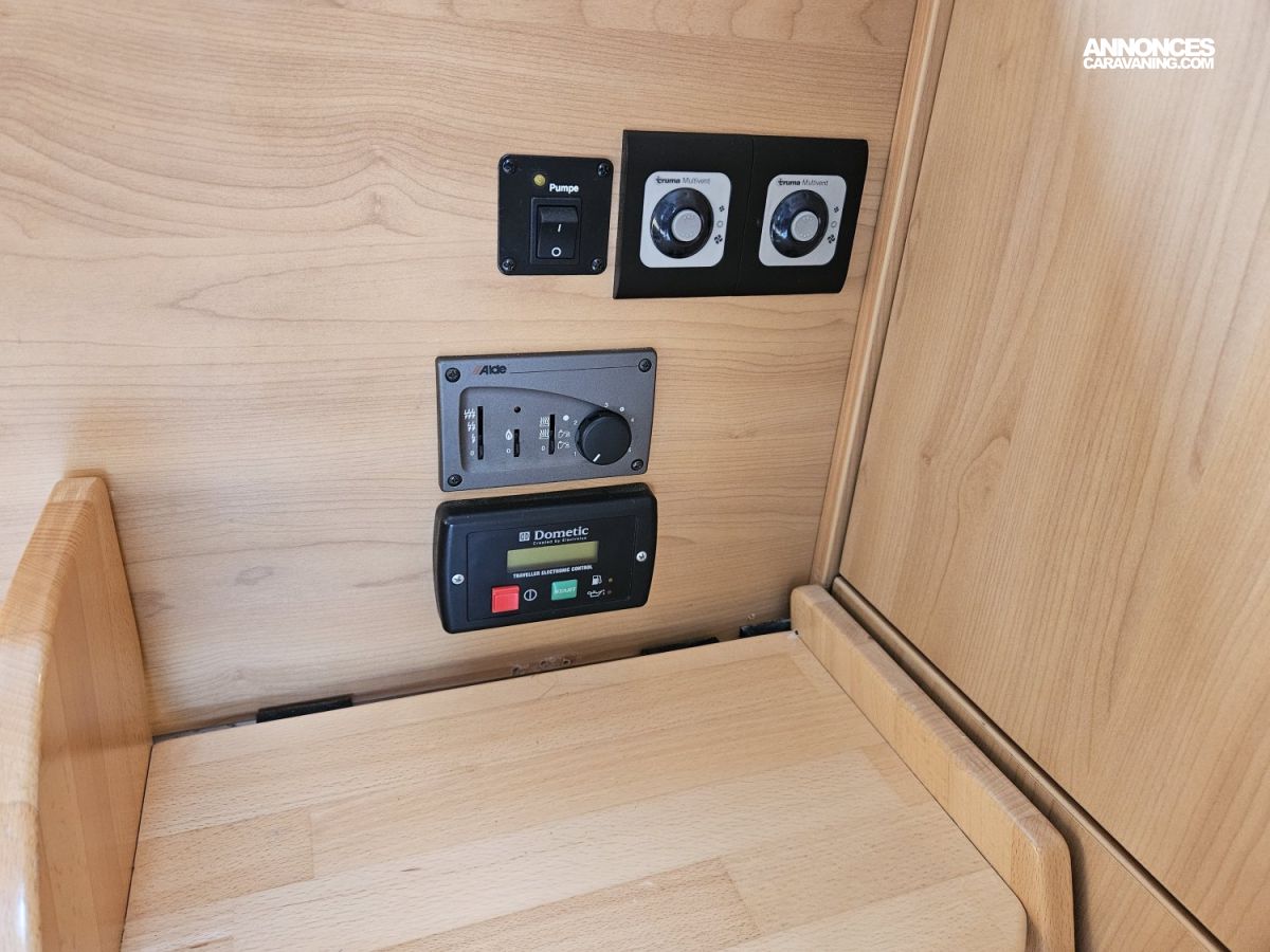 On retrouve également une climatisation cellule en 220V, un chauffage au gaz, une moustiquaire de porte cellule, un toit ouvrant panoramique ainsi qu'un éclairage LED.