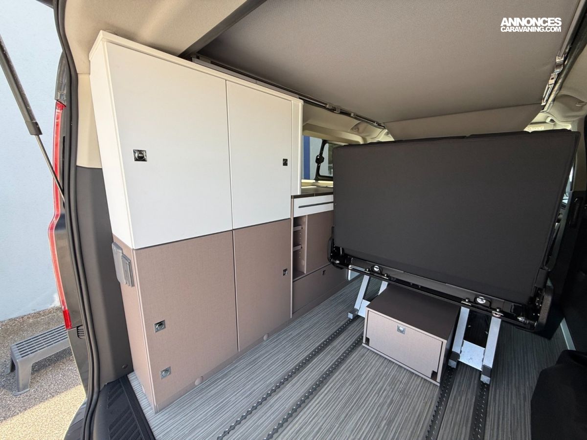 BATTERIE AUXILIAIRE 95 AMP, CLIMATISATION MANUELLE EN CABINE, TOIT RELEVABLE, REFRIGERATEUR A COMPRESSION 41 LITRES, RACCORDEMENT DOUCHE EXTERIEUR, ALTERNATEUR AVEC FONCTION BOOSTER 25 A, BANQUETTE AVEC SYSTEM ISOFIX