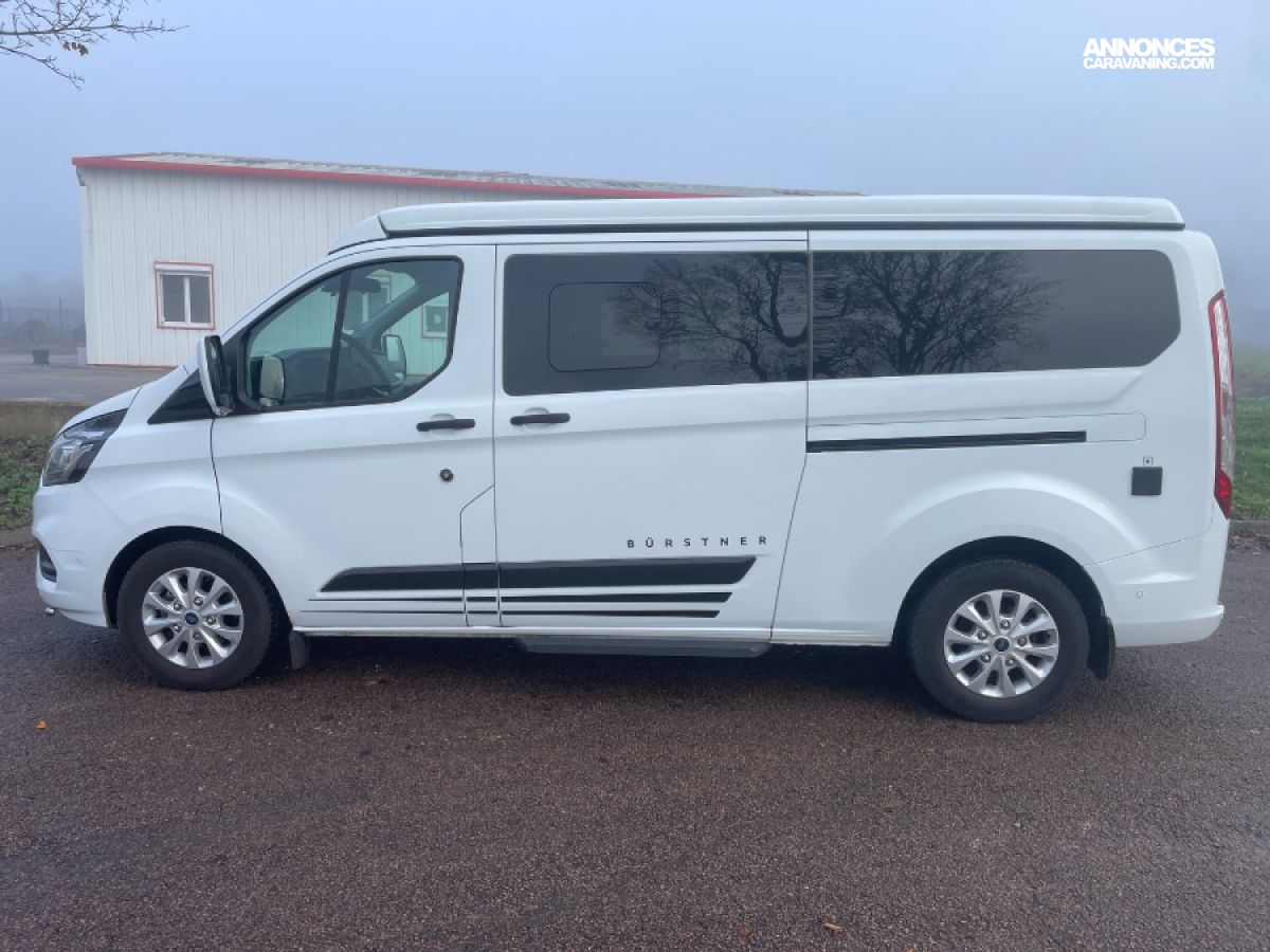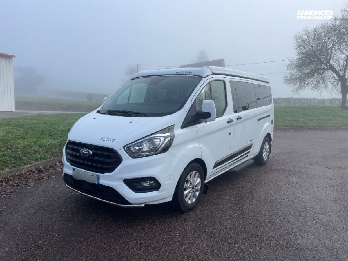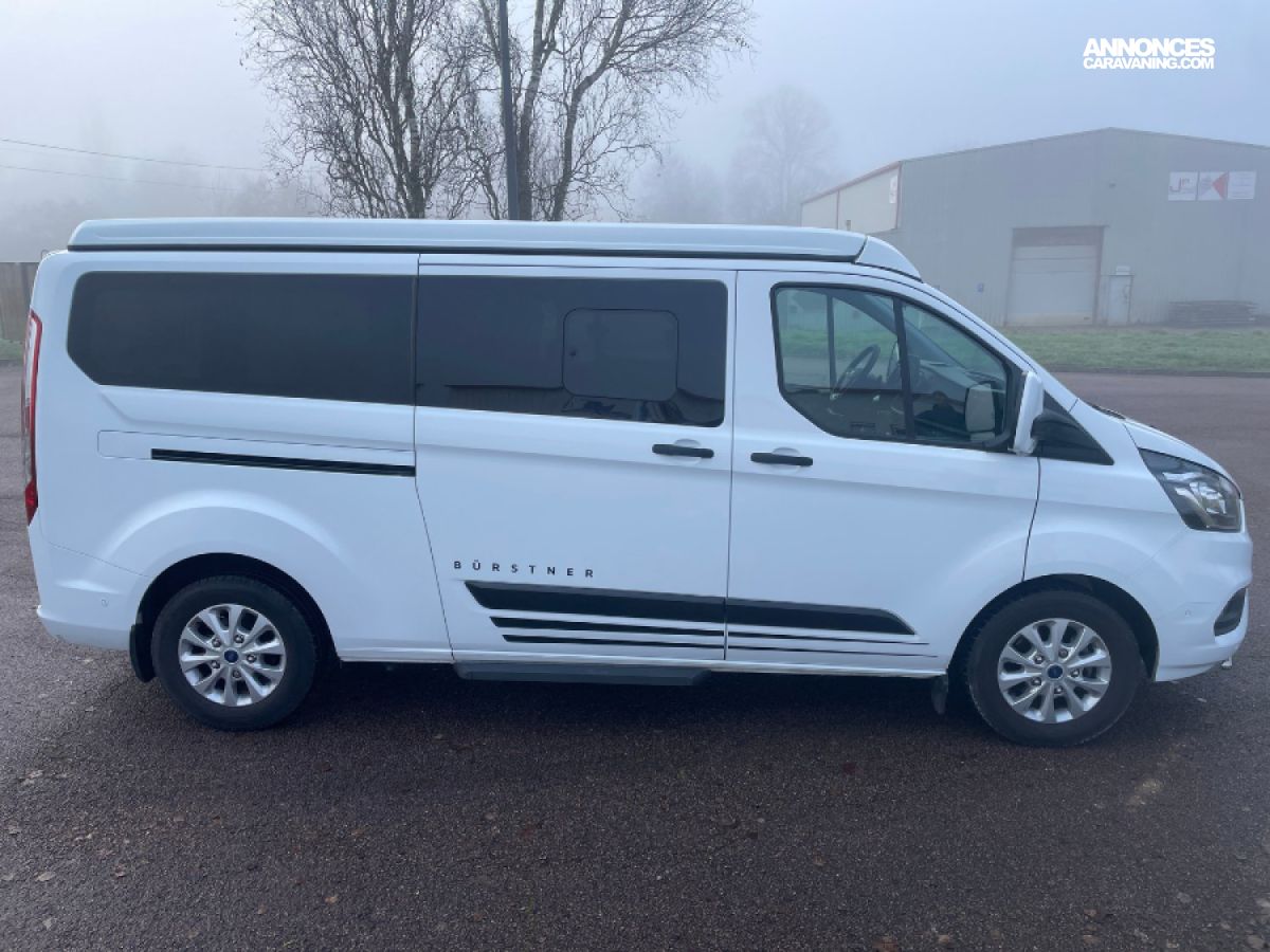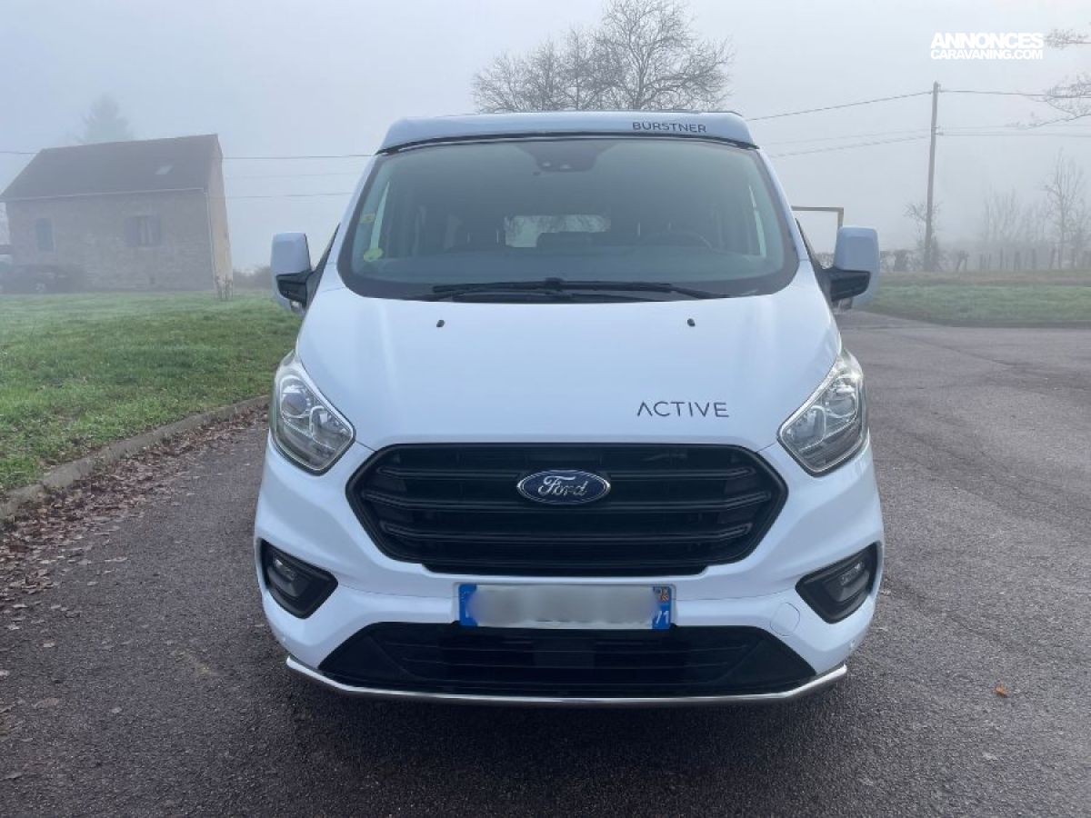 Magnifique van Bürstner Copa 530 Active sur Ford Transit Custom 2.0L 150CV, 4 places carte grise et couchage, 5.35 m, bien équipé (Boite automatique, Radio CarPlay, Caméra de recul, Radar avant et arrière…) avec 2 couchages.