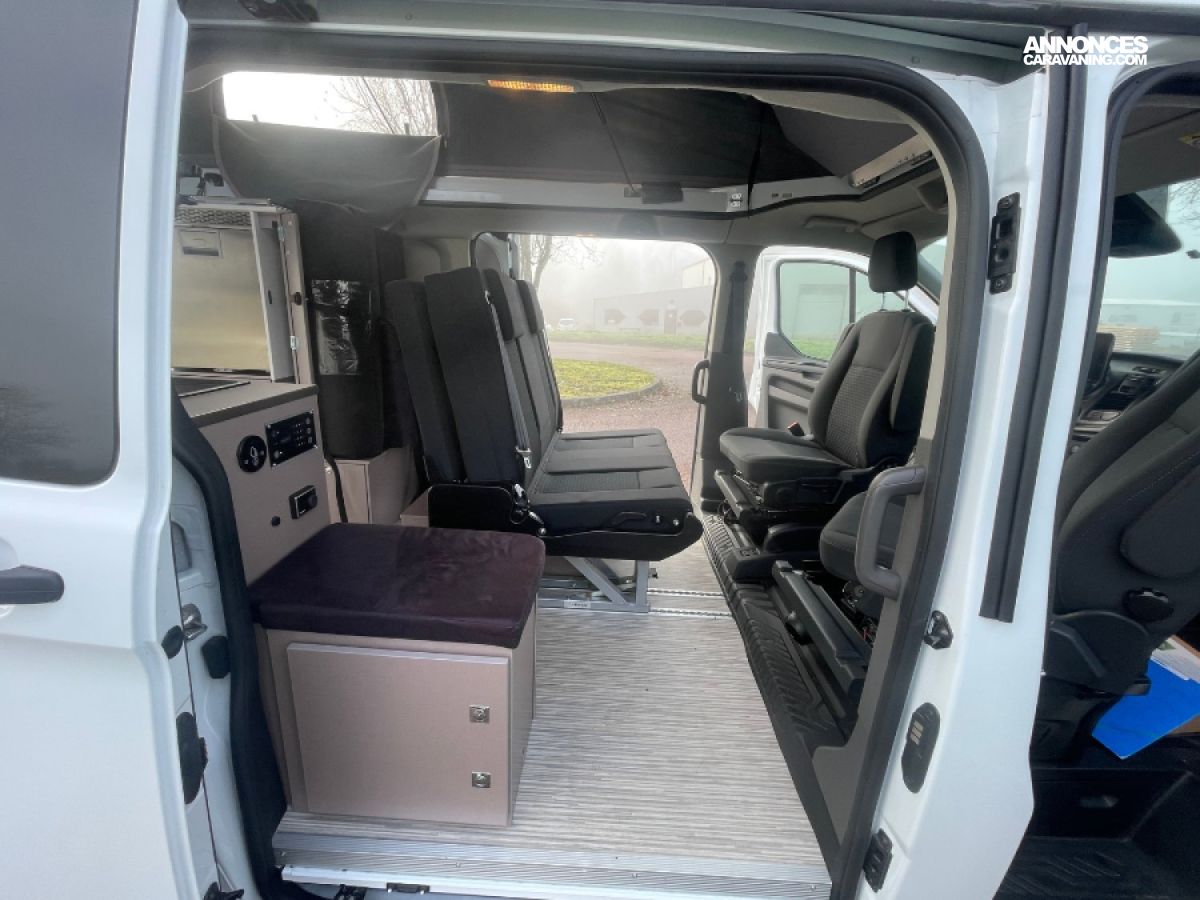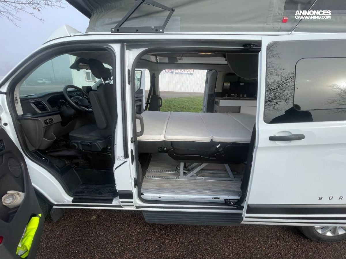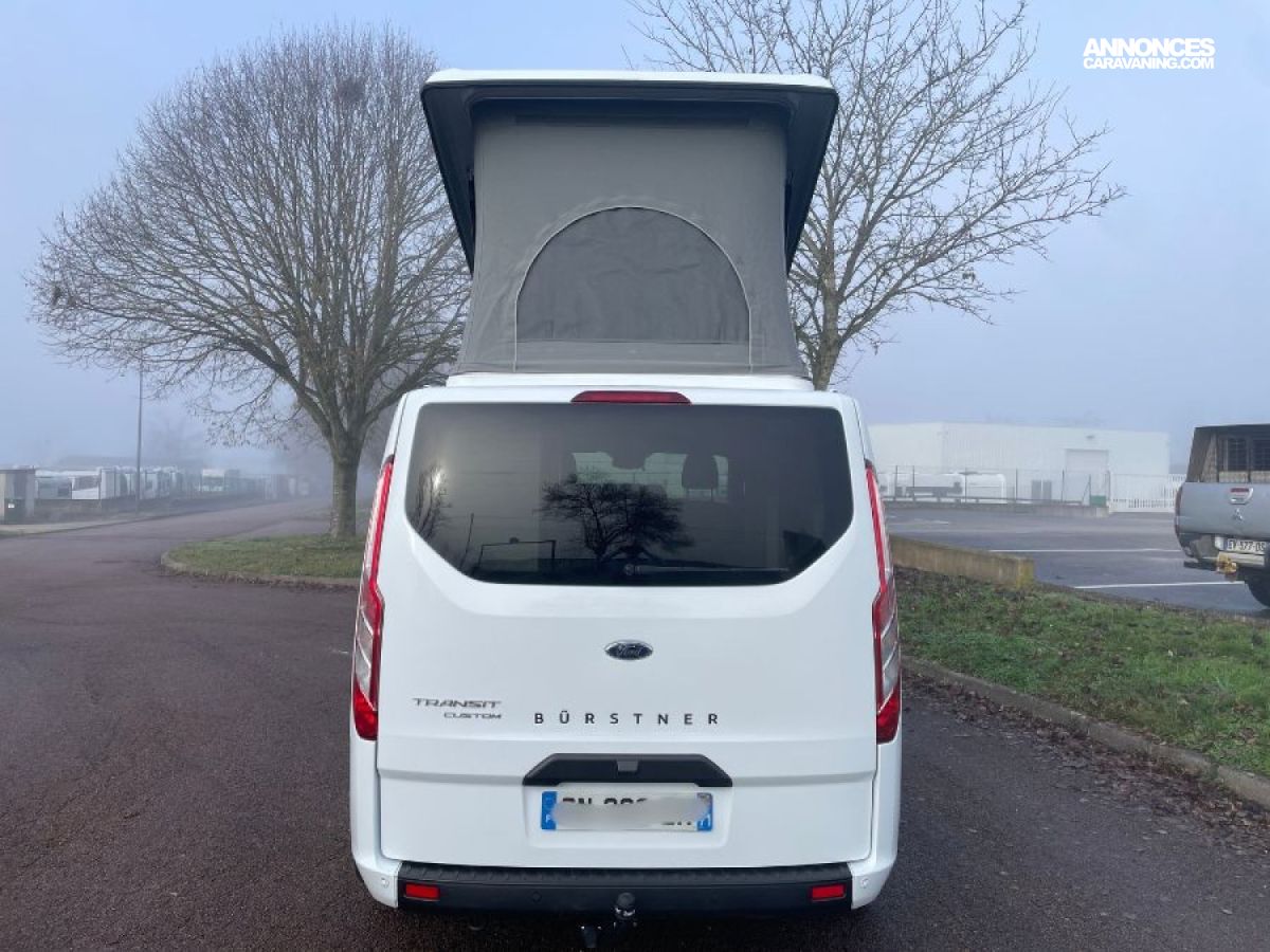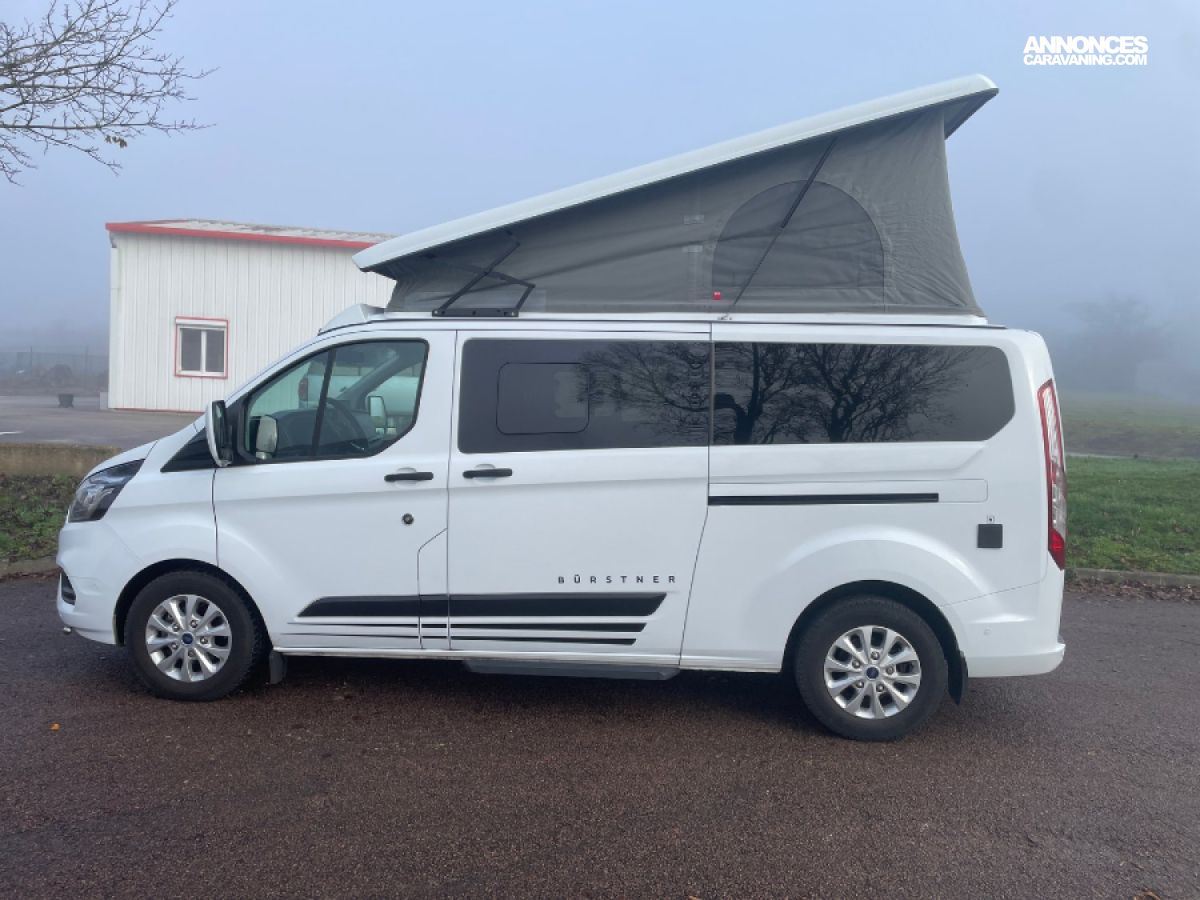 Magnifique van Bürstner Copa 530 Active sur Ford Transit Custom 2.0L 150CV, 4 places carte grise et couchage, 5.35 m, bien équipé (Boite automatique, Radio CarPlay, Caméra de recul, Radar avant et arrière…) avec 2 couchages.
