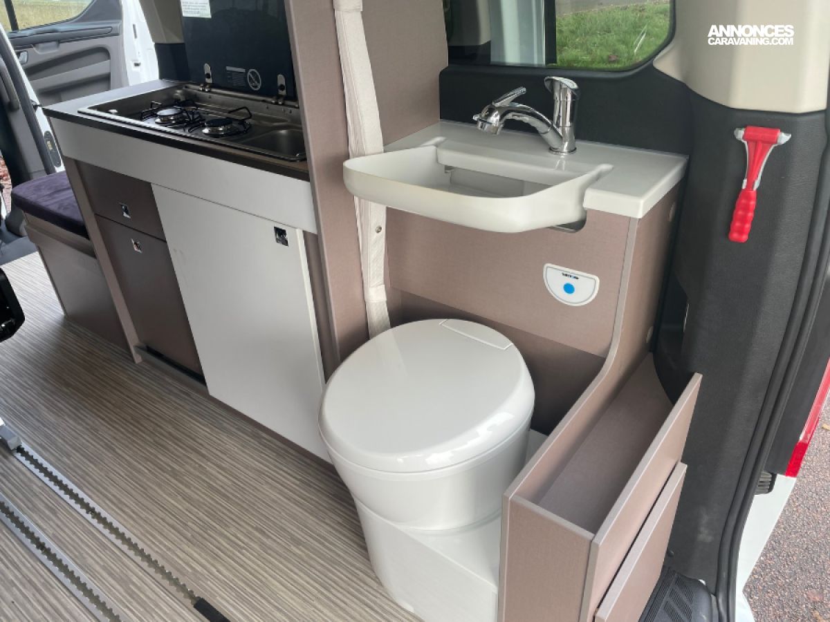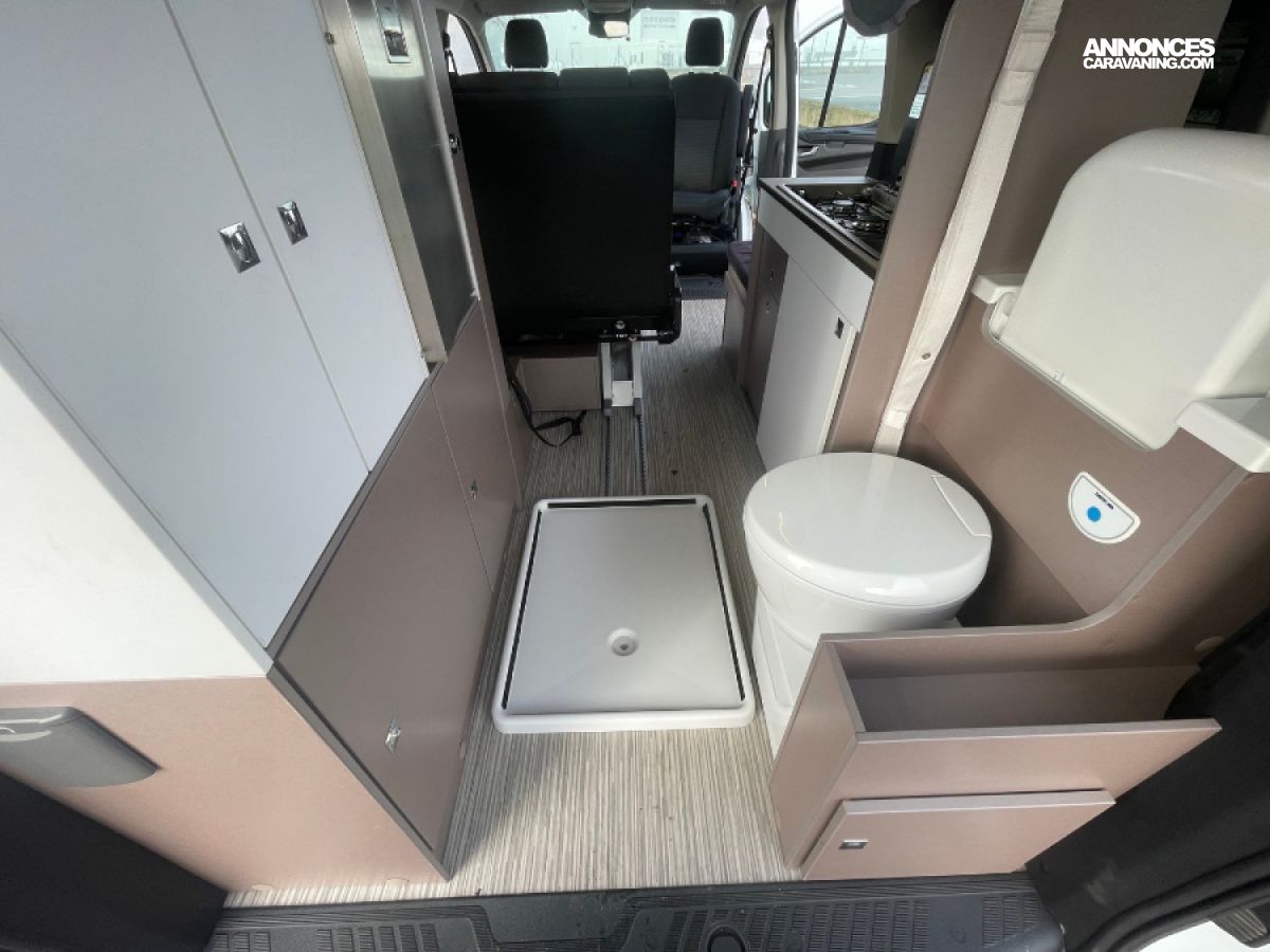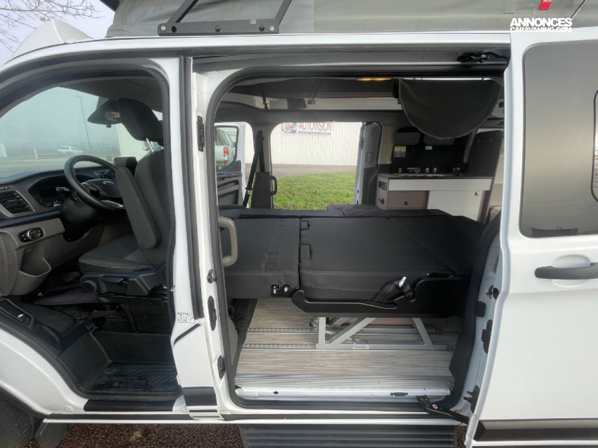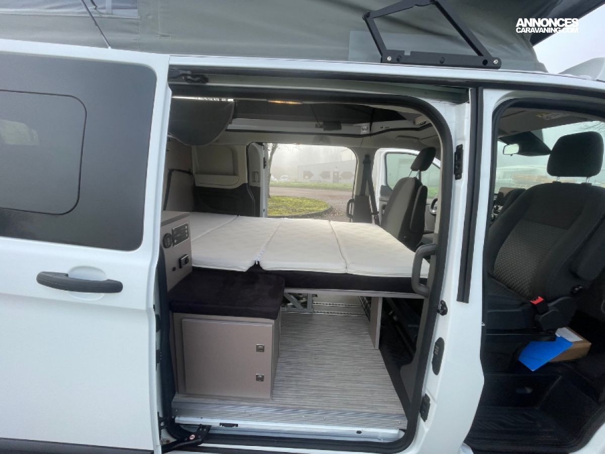 Magnifique van Bürstner Copa 530 Active sur Ford Transit Custom 2.0L 150CV, 4 places carte grise et couchage, 5.35 m, bien équipé (Boite automatique, Radio CarPlay, Caméra de recul, Radar avant et arrière…) avec 2 couchages.