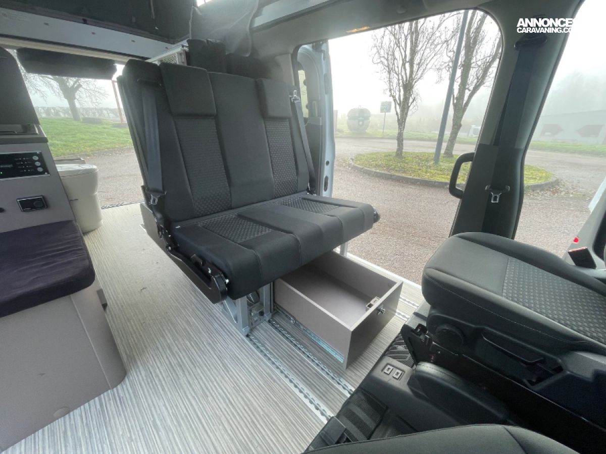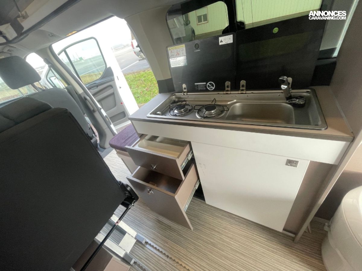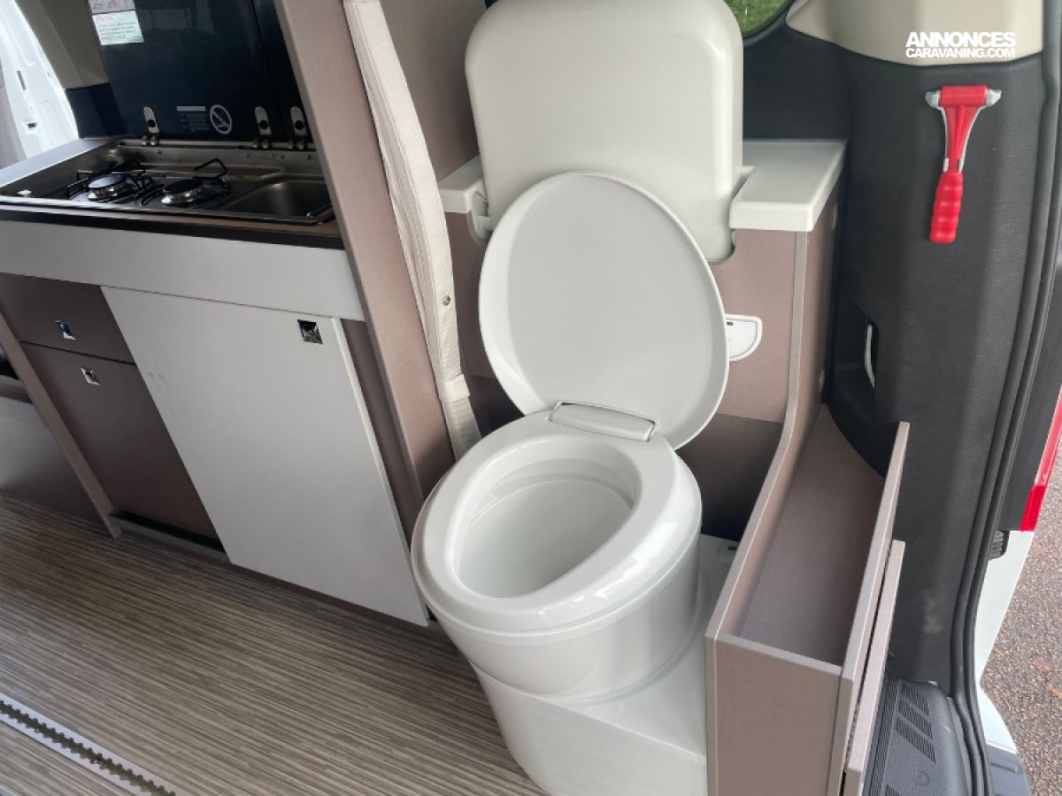 A l’avant, c’est un joli coin dinette avec sa table pliante et ses sièges pivotants pour passer de bons moments en toute convivialité. Sa cuisine pratique et fonctionnelle avec un réchaud 2 feux, évier inox, couvercles en verre et un réfrigérateur 47L. A l’arrière, son côté salle de bain avec WC à cassette, lavabo escamotable et douchette. Son couchage sur le toit relevable vous permettra de passer des nuits à la belle étoile, avec son couchage supplémentaire 2 places grâce à sa banquette dépliante pour emmener vos enfants, petits-enfants… Sans oublier ses nombreux rangements astucieux.