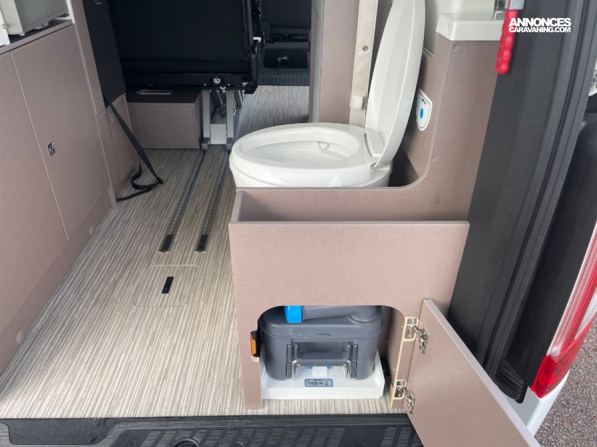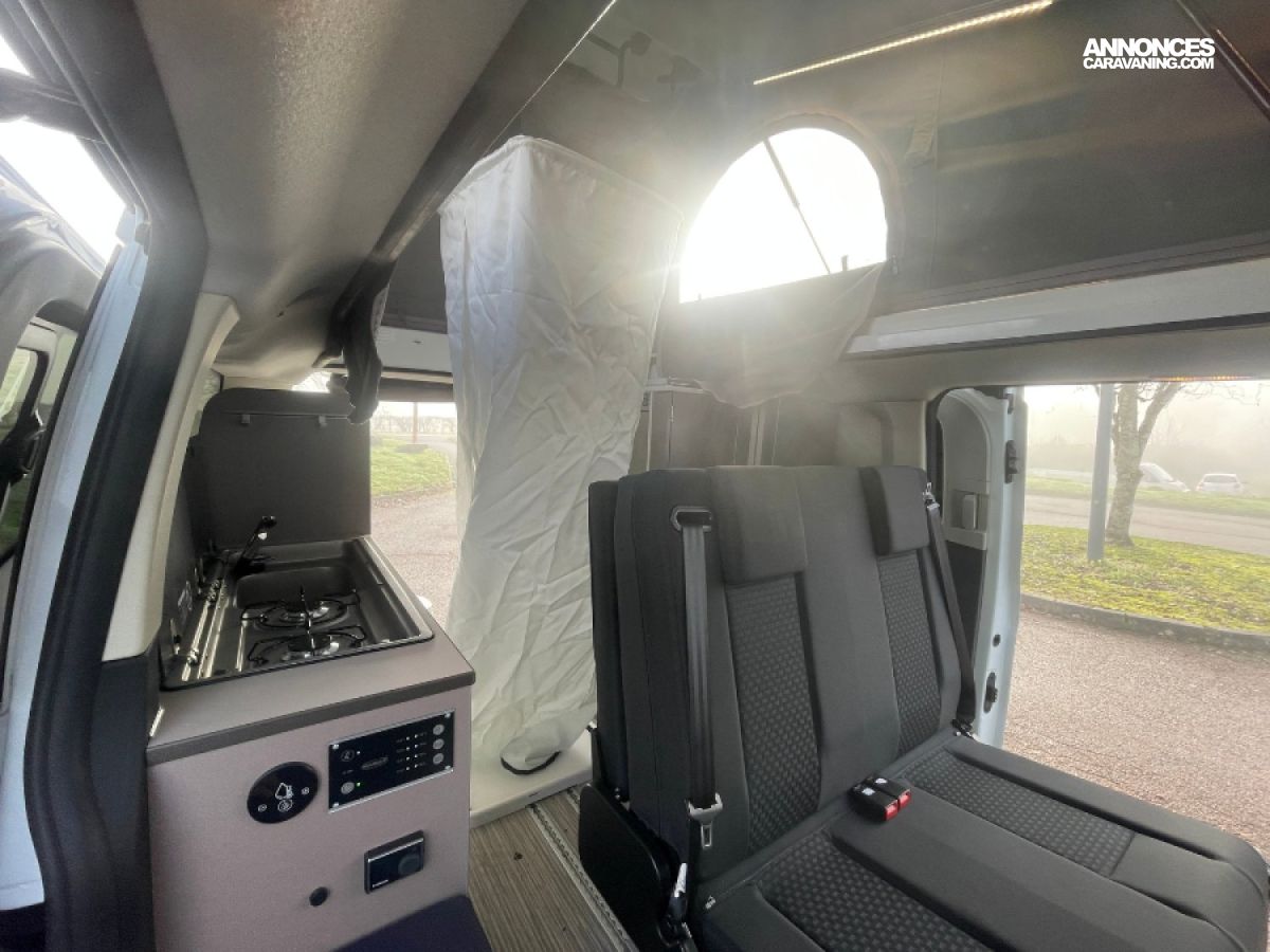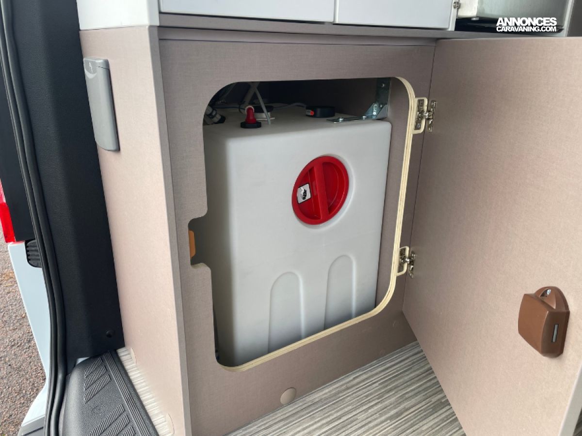 A l’avant, c’est un joli coin dinette avec sa table pliante et ses sièges pivotants pour passer de bons moments en toute convivialité. Sa cuisine pratique et fonctionnelle avec un réchaud 2 feux, évier inox, couvercles en verre et un réfrigérateur 47L. A l’arrière, son côté salle de bain avec WC à cassette, lavabo escamotable et douchette. Son couchage sur le toit relevable vous permettra de passer des nuits à la belle étoile, avec son couchage supplémentaire 2 places grâce à sa banquette dépliante pour emmener vos enfants, petits-enfants… Sans oublier ses nombreux rangements astucieux.