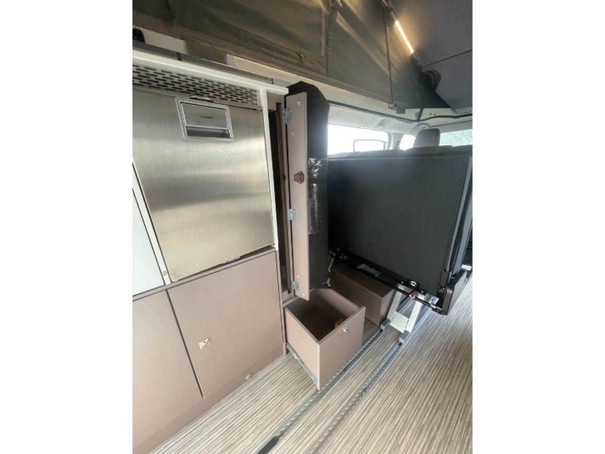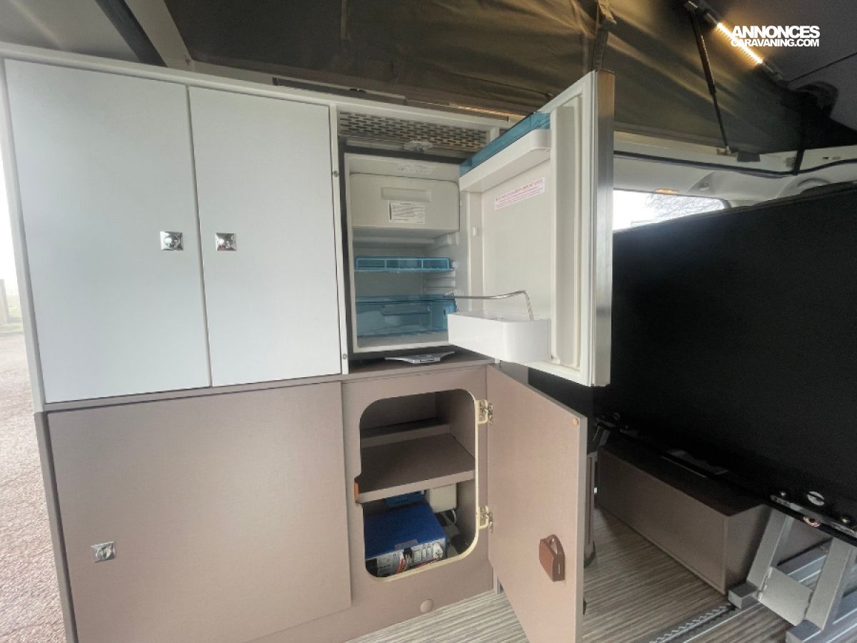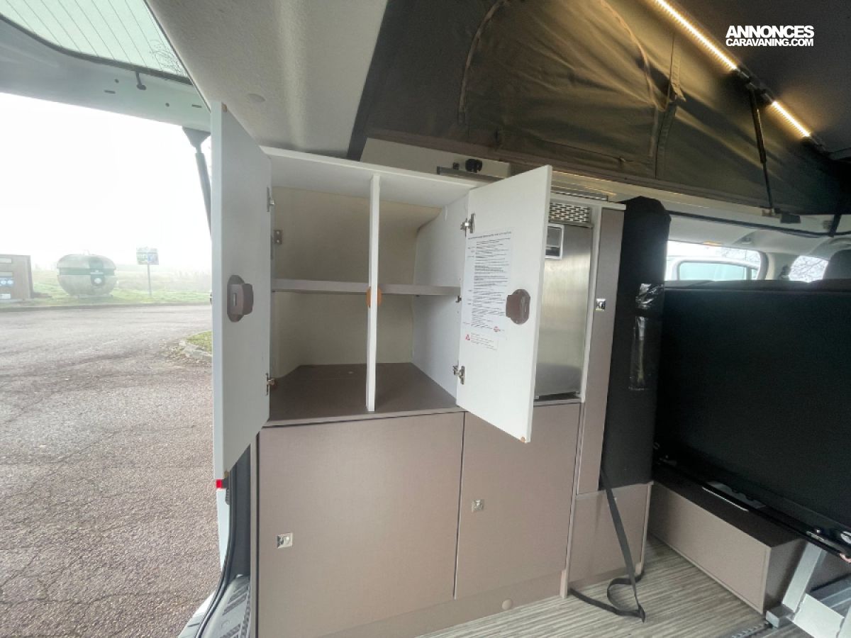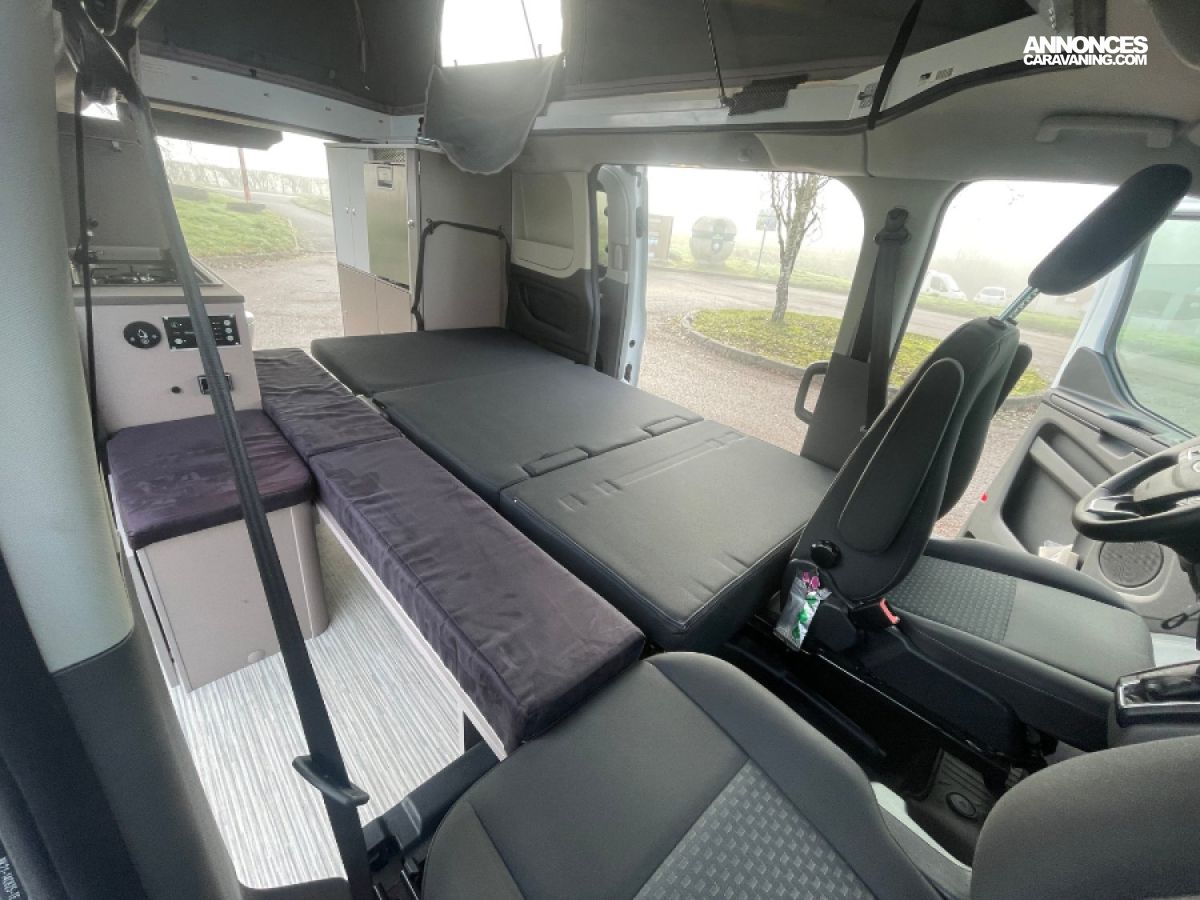 Un VÉHICULE DE LOISIRS pour le week-end avec sa possibilité de couchage pour 4 personnes : la banquette dépliante + le toit relevable, et dispose d'un bloc cuisine.