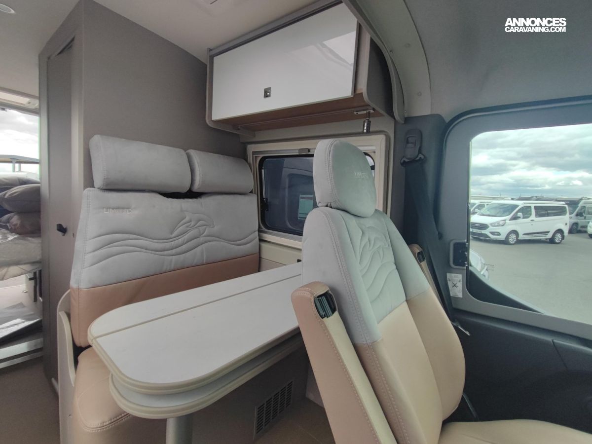 Fixation Isofix pour un siège, ESP/ASR, ABS, Calandre chromée, Caméra de recul, Airbag conducteur et passager, Assitant feux de route automatique, Avertisseur de franchissement de ligne, Barre de protection spoiler chromée, Chargeur smartphones à induction, Climatisation manuelle cabine, Contours aérateurs et contour de levier de vitesse chromé, Graphisme exterieur exclusif Delfin Limited, Jantes aluminium 16", Moustiquaire porte coulissante, Protecteurs antibrouillard, Radar de recul, Régulateur, limiteur de vitesse, Rétroviseurs électriques, Store extérieur 3.75 M, Stores plissés occultants en cabine, Système multimédia avec navigation, Volant grainé similicuir