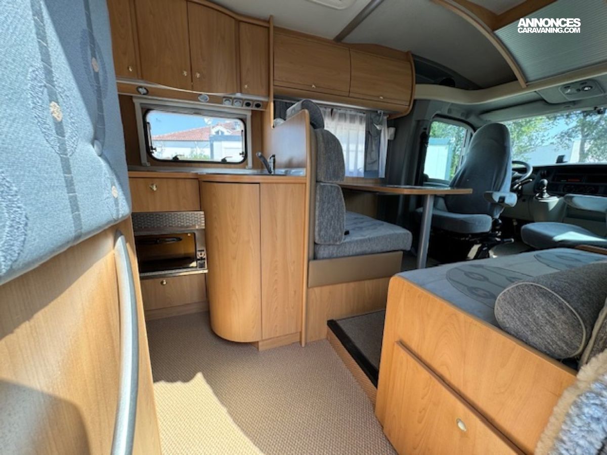 Profile, salon avant avec sièges pivotants, cuisine en l, réfrigérateur/conservateur, douche séparée, lit arriere longitudinal, non fumeur, très bon état général, affaire à saisir, petit prix