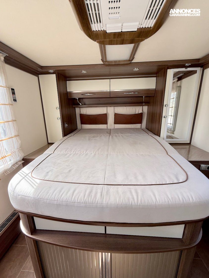 Le lit permanent central a des dimensions de 143 x 194 cm, et le lit de pavillon de 144 x 195 cm.