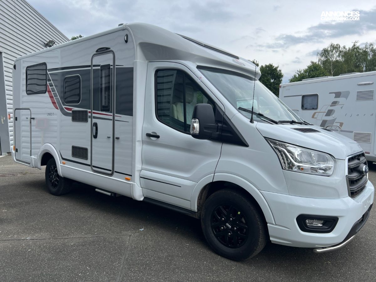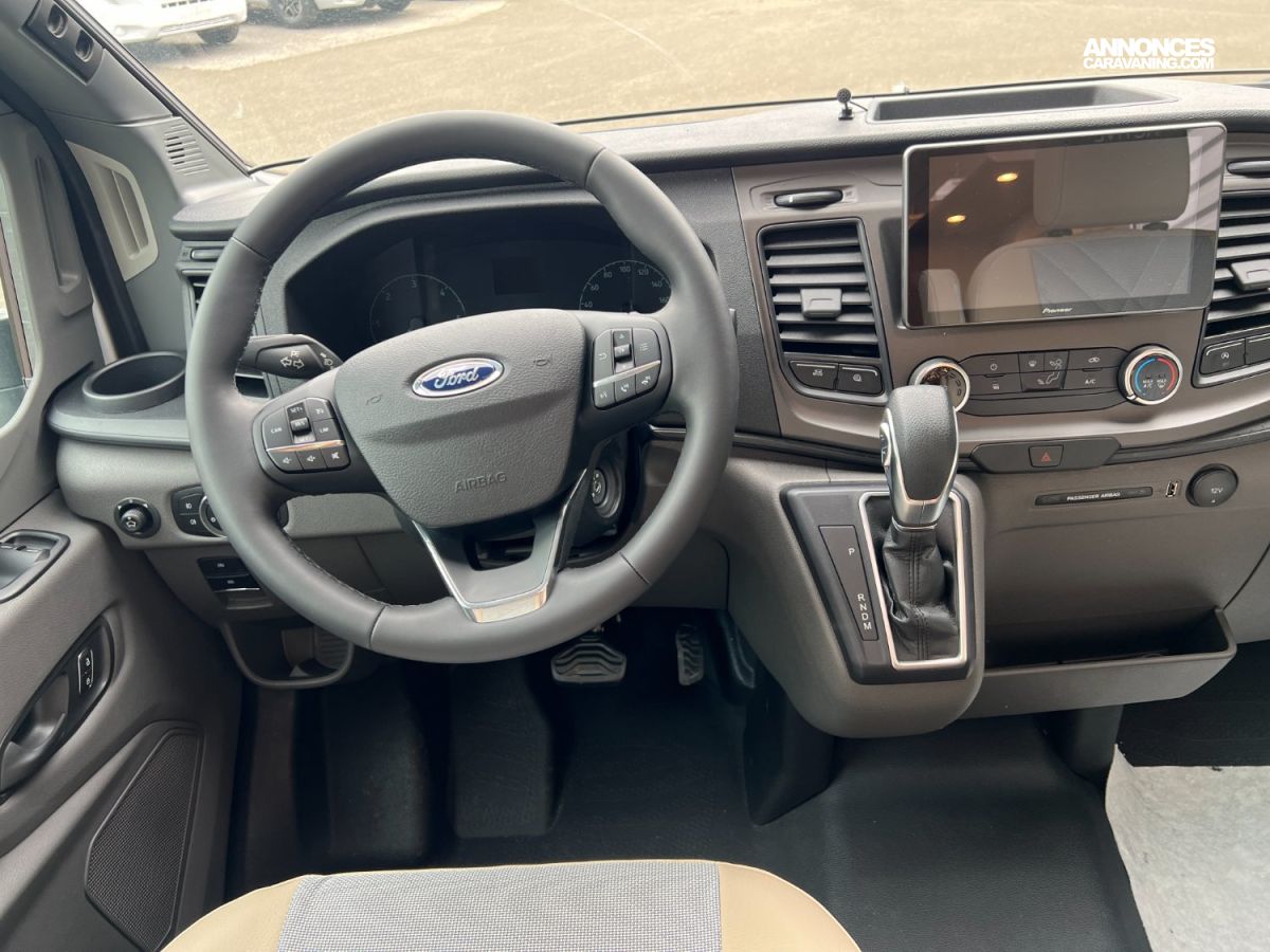 Découvrez le BURSTNER LINEO T620 G, équipé d'une boîte automatique et de 155 chevaux pour une conduite fluide. Ce modèle offre une porte de garage côté gauche, des stores plissés de cabine, et un système multimédia avec caméra de recul. Profitez du Pack Active Ford et du Pack Confort pour un voyage en toute sérénité et confort.