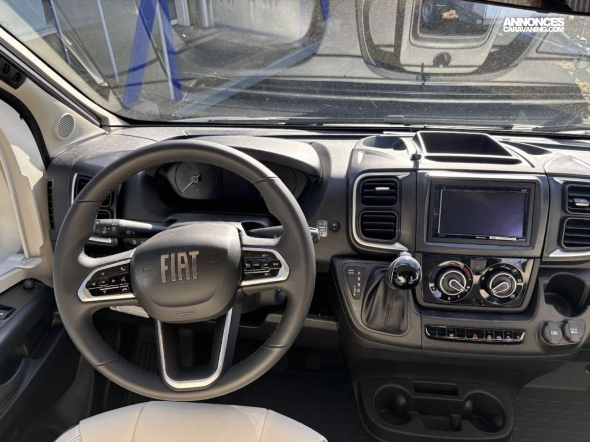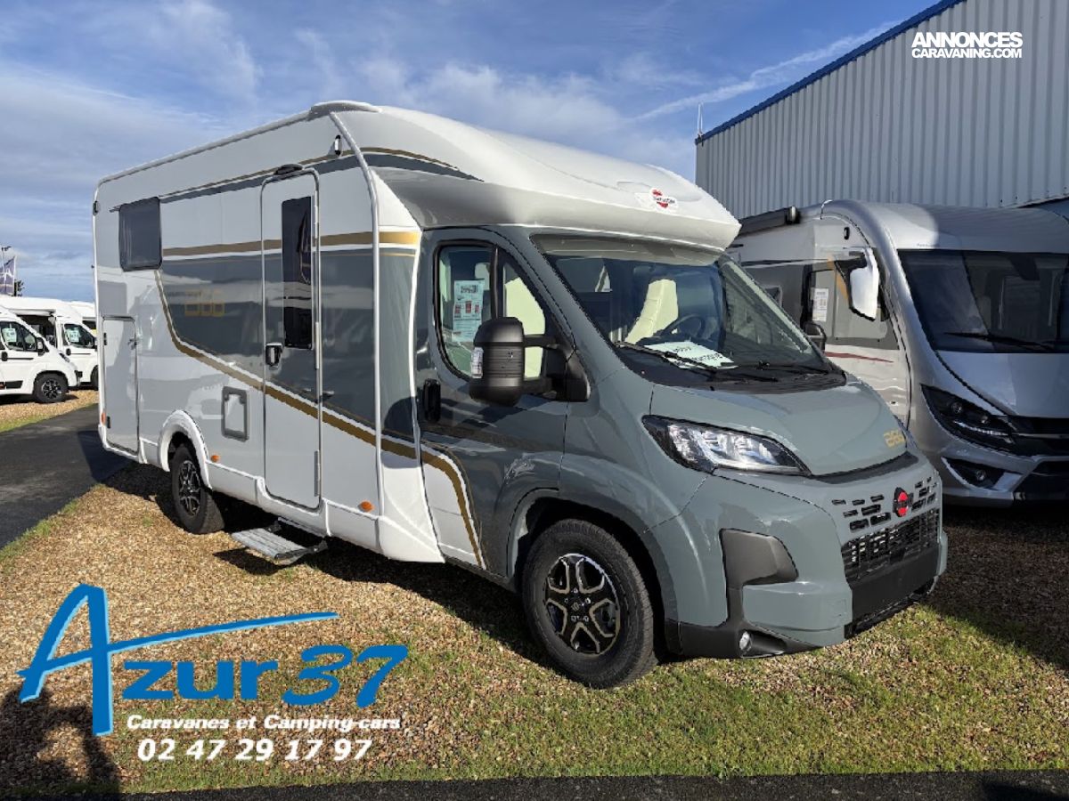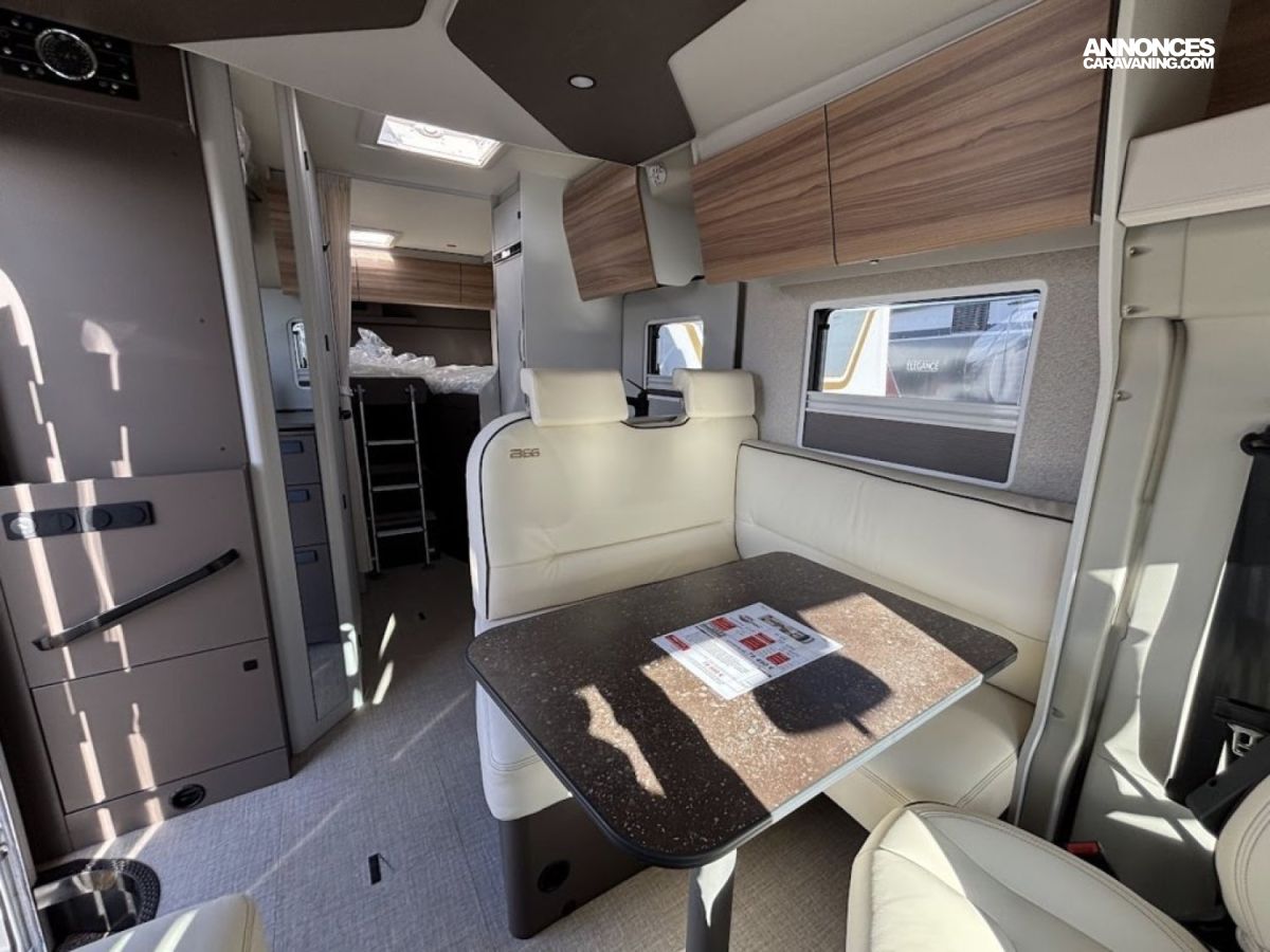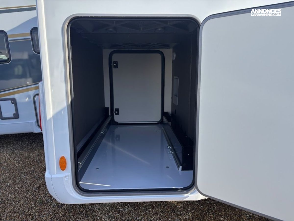 Cuisine en L, Douche à vario, Grande soute, lit jumeaux, lit pavillon, Salon avant sièges pivotants, Salon en L, WC Cassette.
