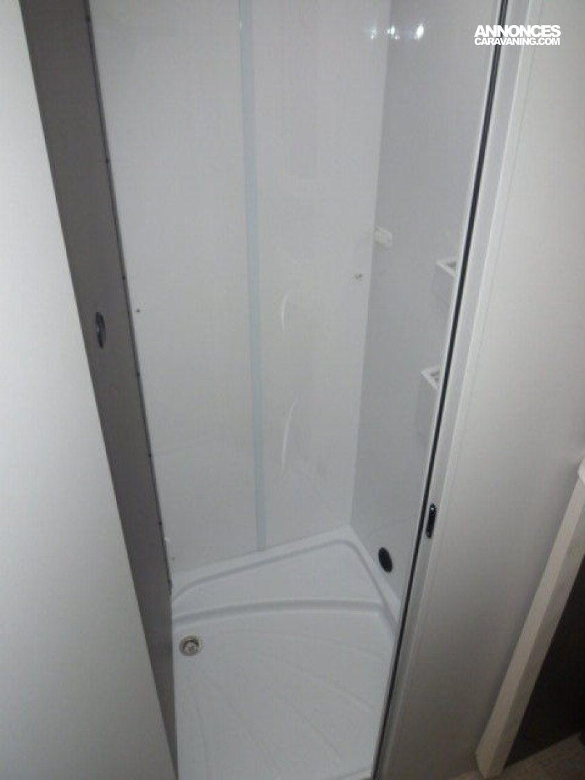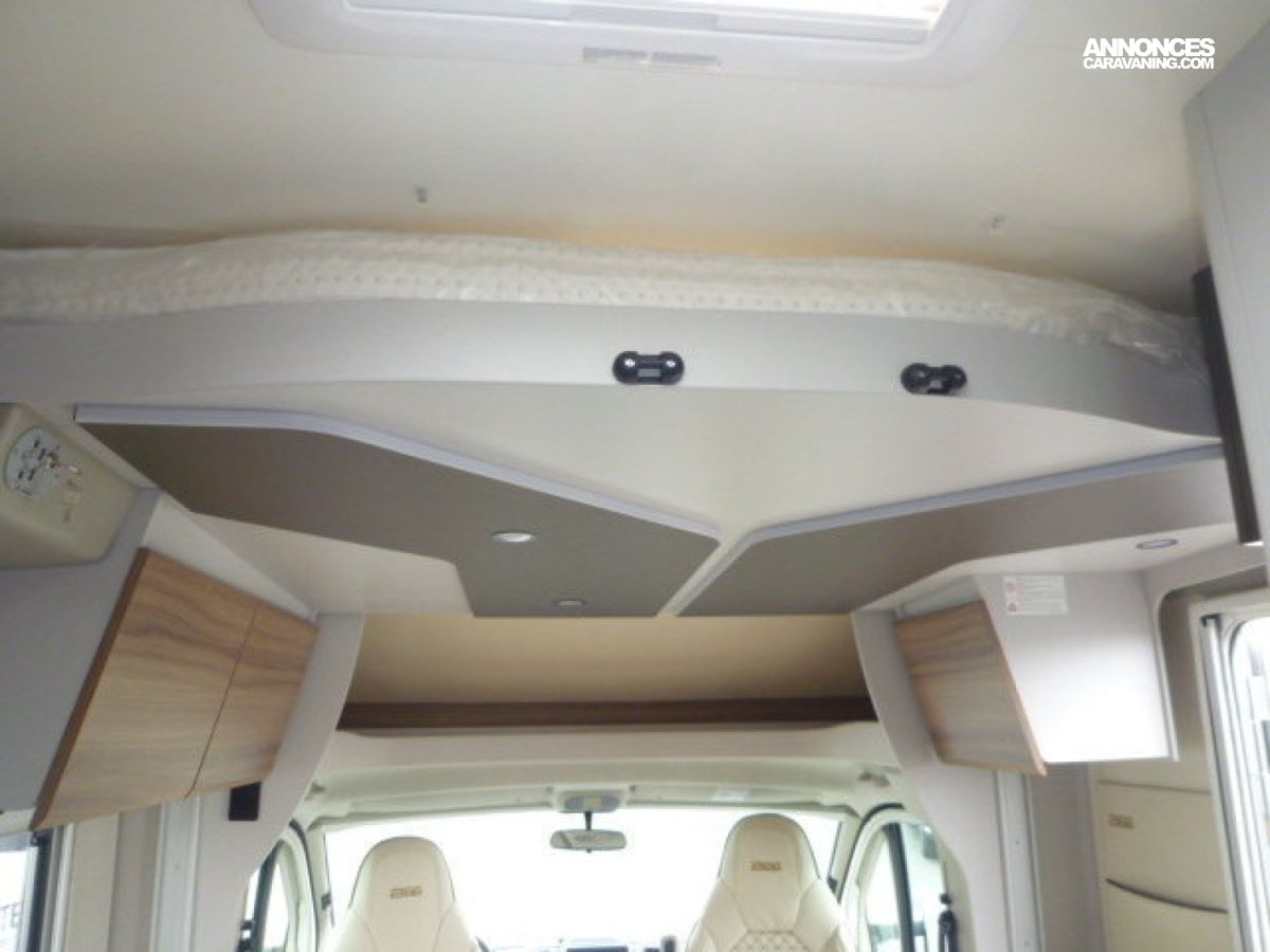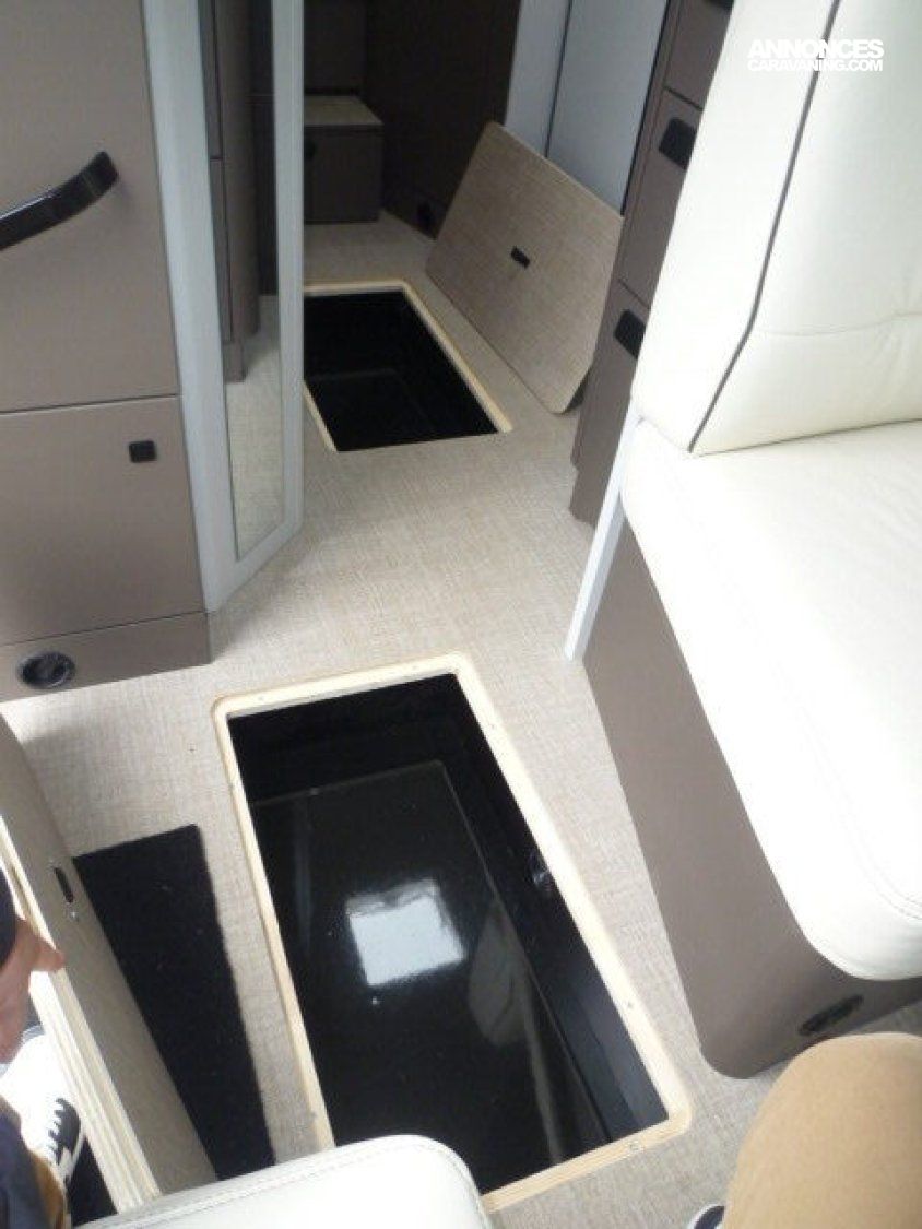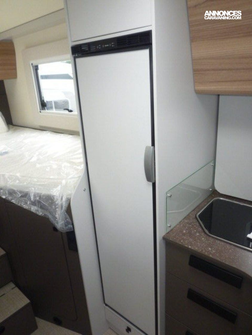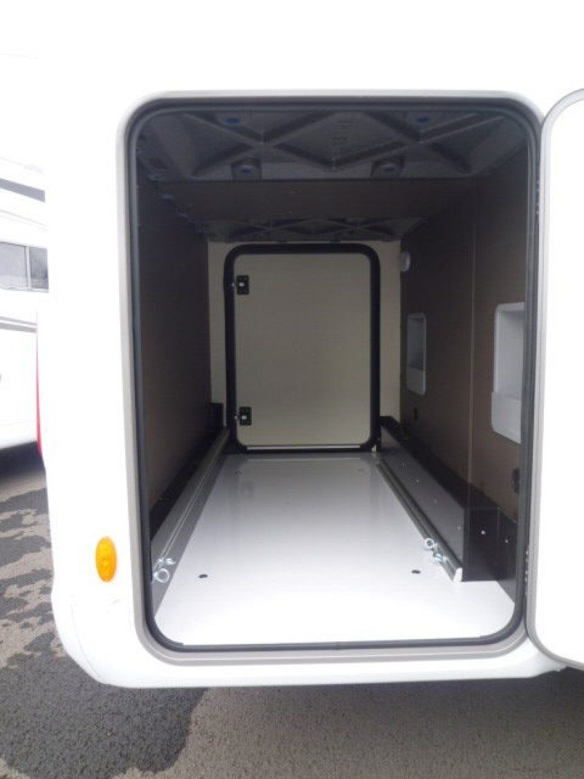 Cuisine en L, Douche à vario, Grande soute, lit jumeaux, lit pavillon, Salon avant sièges pivotants, Salon en L, WC Cassette.