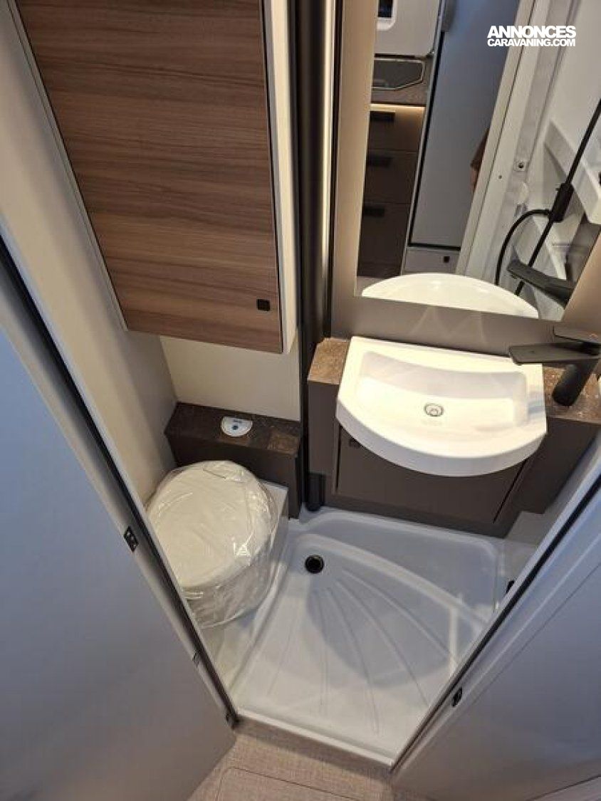 DE SERIE Boîte automatique 140 ch Boîte automatique 140 ch Jantes aluminium 16’’ bicolores Jantes aluminium 16’’ bicolores Station multimédia avec caméra de recul Station multimédia avec caméra de recul Batterie lithium Batterie lithium Dînette en L avec table monopode et plateau de table orientable Banquette salon face-face avec table porte portefeuille Porte d’entrée XL avec baie et moustiquaire Porte d’entrée XL avec baie et moustiquaire Réfrigérateur à compression 131,5 l Réfrigérateur à compression 131,5 l Double plancher technique Thermo-Floor isolé et chauffé avec rangement intégrés : 0 €