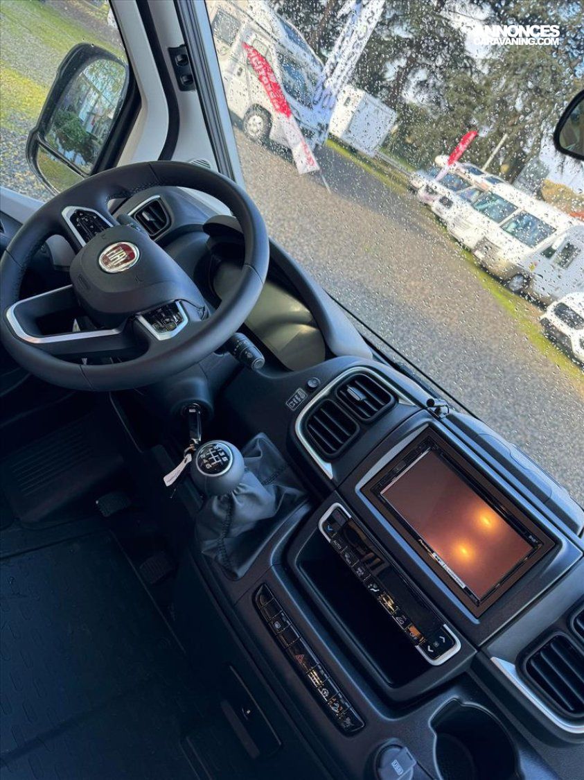 Pack éclairage, PACK PREMIUM FIAT COMPREND, Volant multifonctions, Tableau de bord avec anneaux chromés, Écran couleur TFT 7'', Station de recharge par induction pour smartphone, Climatisation cabine automatique, Unité de protection contre les accidents TOPTRON, Module pioneer pour volant multifonction, PACK PRIVILEGE LYSEO FIAT COMPREND, Phare avec cadre noir, Calandre noir brillant avec bandes chromées, PACK PRIVILEGE LYSEO BURSTNER COMPREND, Store enrouleur vario, Rallonge de plan de travail rotative, Porte capsule rétro éclairé, Seuil de porte, Pare chocs arr avec application chromée, PACK PREMIUM BURSTNER COMPREND, Station multimedia pioneer AVH-DAB avec caméra de recul, Porte cellule large centralisée avec fenetre et moustiquaire, Lambris coté cuisine, Autocollant privilége, Volet roulant remis, Toit ouvrant, Porte garage supp coté gauche, Volant et pommeau levier de vitesse en cuir, Jantes fiat 16'' alu