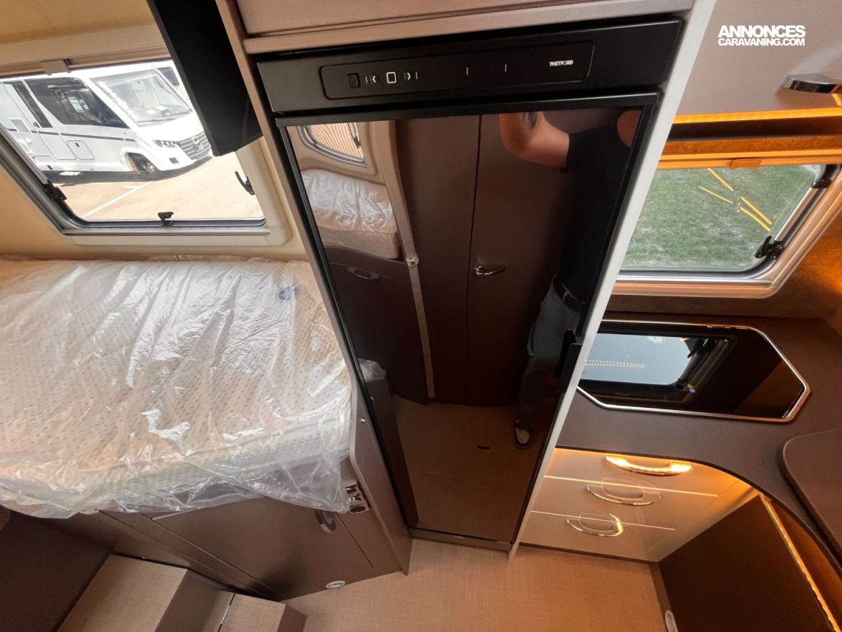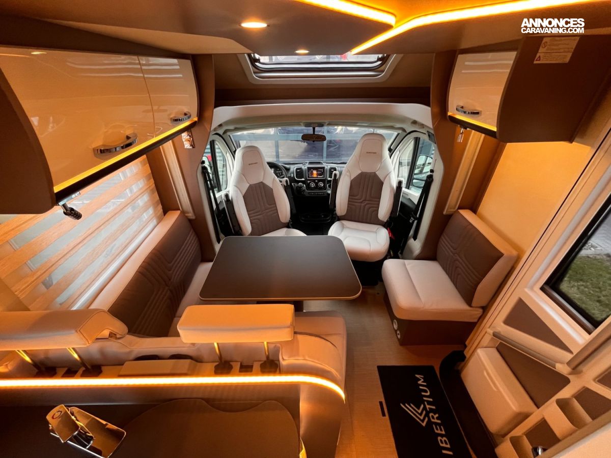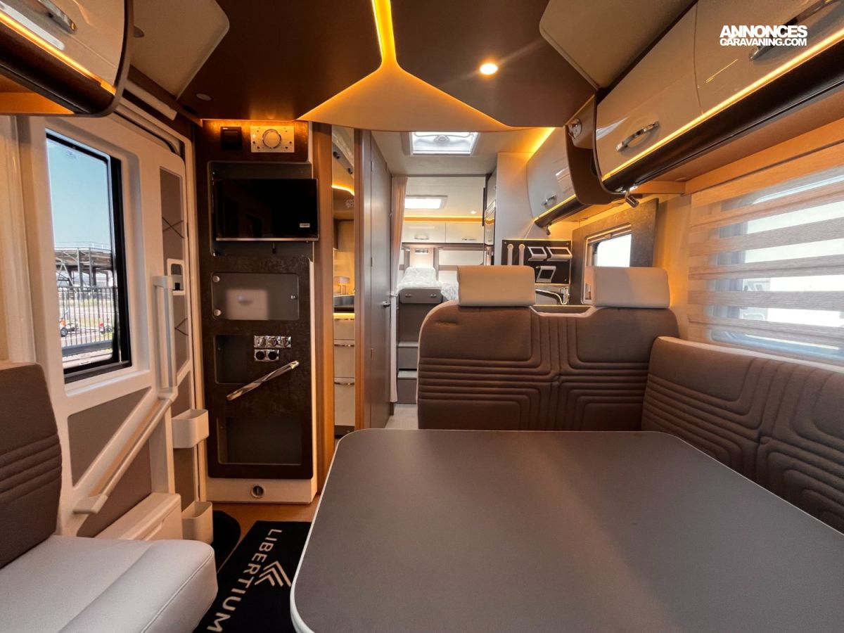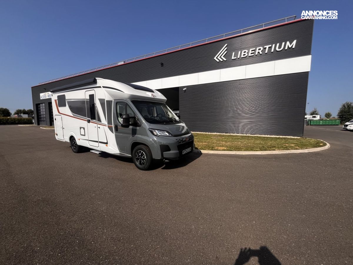 Compact et élégant, le Bürstner Lyseo TD 690 G 2025 (6,99 m sur châssis Fiat Ducato) se distingue par son double-plancher isolé, garantissant une excellente isolation phonique et thermique. Il propose deux lits longitudinaux à l’arrière, facilement convertibles en grand couchage, une cuisine astucieuse avec plan de travail extensible, et une salle d’eau modulable à la fois fonctionnelle et spacieuse. L’intérieur haut de gamme, avec sellerie élégante et rangements innovants, en fait le choix parfait pour les aventuriers exigeants qui privilégient confort, modularité et raffinement.