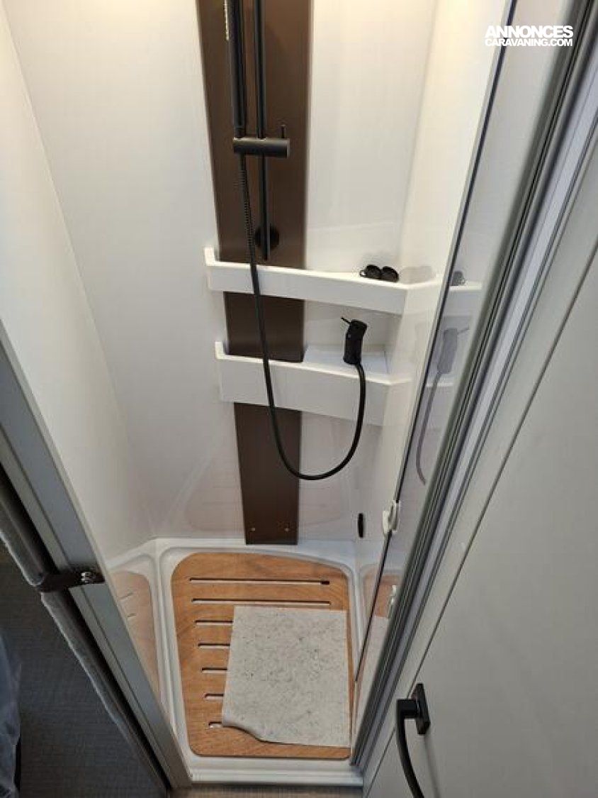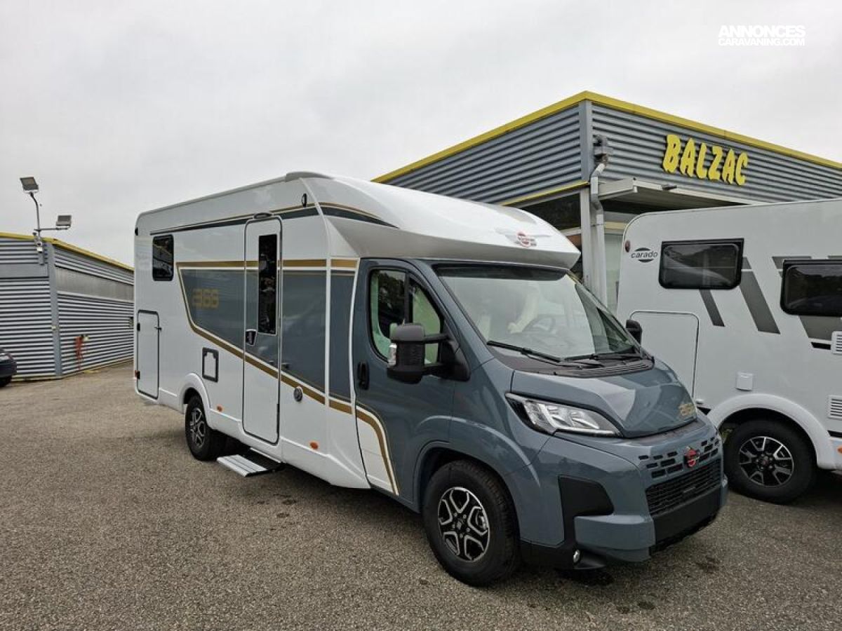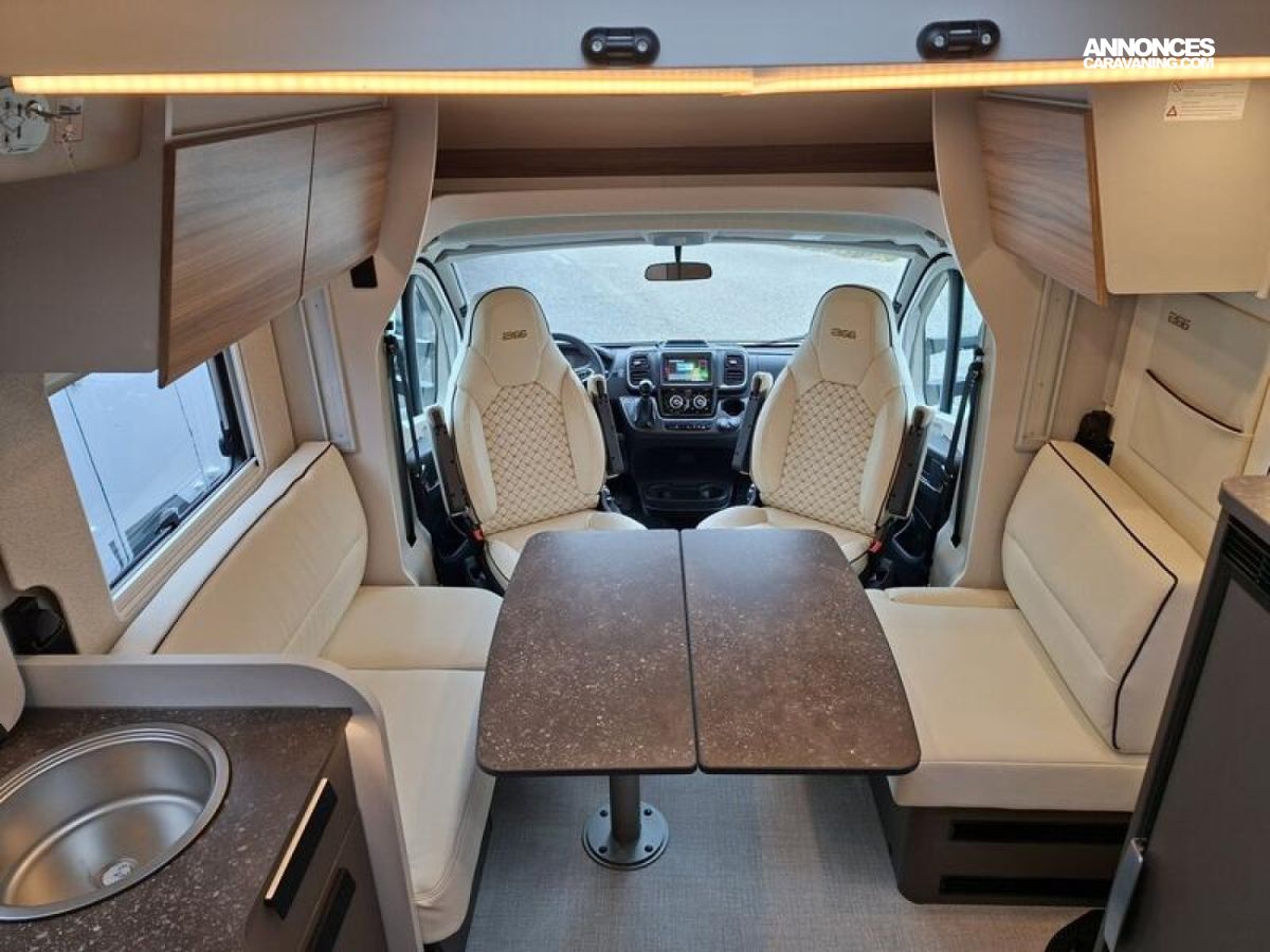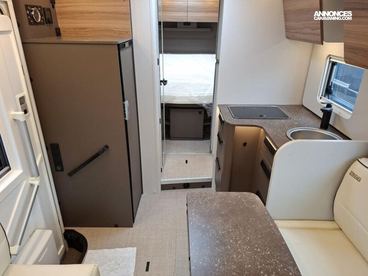 SERIE B 66 Motorisation Fiat 2,2l 140ch avec boîte automatique Jantes aluminium 16‘‘ Feux antibrouillard avant, frein à main électrique Volant multifonctions et pommeau gainés de cuir Couleur cabine Gris Lanzarote et graphisme exclusif „B66“ Station multimédia avec caméra de recul Batterie lithium 105 Ah Porte d‘entrée avec baie, moustiquaire & verrouillage centralisé Stores plissés cabine Baies à encadrement, porte garage côté gauche Sellerie exclusive en cuir avec matelassage et surpiqûres B66 Pack éclairage indirect Lit central réglable en hauteur Double-plancher technique isolé et chauffé : 0 €