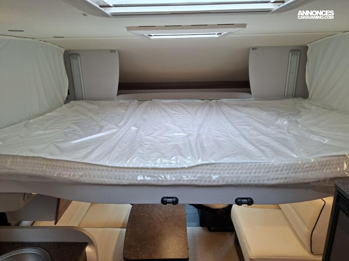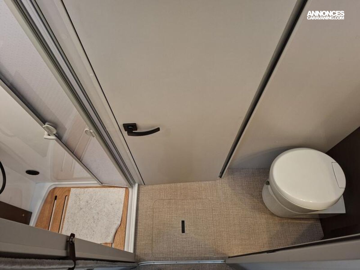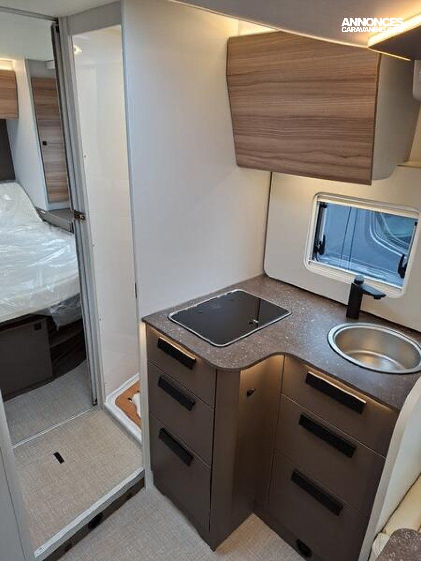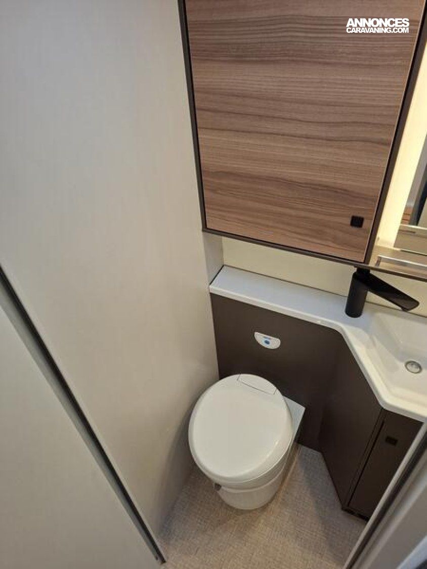 SERIE B 66 Motorisation Fiat 2,2l 140ch avec boîte automatique Jantes aluminium 16‘‘ Feux antibrouillard avant, frein à main électrique Volant multifonctions et pommeau gainés de cuir Couleur cabine Gris Lanzarote et graphisme exclusif „B66“ Station multimédia avec caméra de recul Batterie lithium 105 Ah Porte d‘entrée avec baie, moustiquaire & verrouillage centralisé Stores plissés cabine Baies à encadrement, porte garage côté gauche Sellerie exclusive en cuir avec matelassage et surpiqûres B66 Pack éclairage indirect Lit central réglable en hauteur Double-plancher technique isolé et chauffé : 0 €