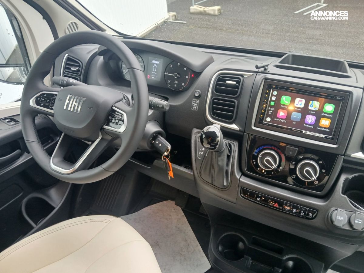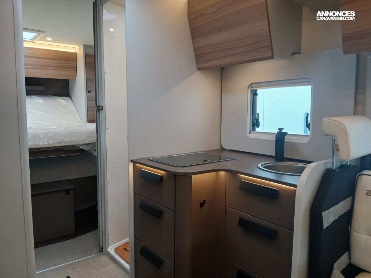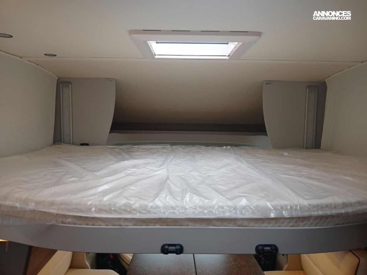 Jantes alu 16" bicolores, Station multimédia avec caméra de recul, Batterie Lithium, Porte d'entrée XL avec baie et moustiquaire, Banquette salon face-face avec table portefeuille, Boîte automatique, Réfrigérateur à compression 131.5l, Lit central réglable en hauteur, Double plancher technique Thermo-Floor isolé et chauffé, Rangements intégrés