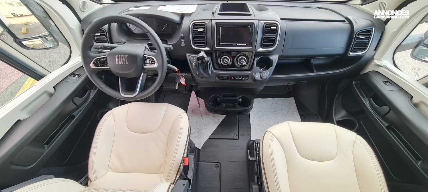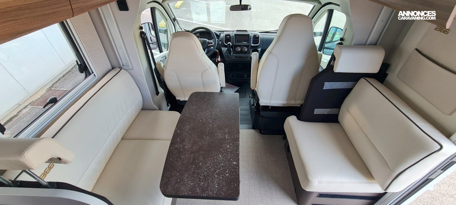 Boîte automatique 140 ch, Station multimédia avec caméra de recul, Batterie lithium, Banquette salon face-face avec table porte portefeuille, Porte d’entrée XL avec baie et moustiquaire, Double plancher technique Thermo-Floor isolé et chauffé, Réfrigérateur à compression 131,5 l, Lit central réglable en hauteur