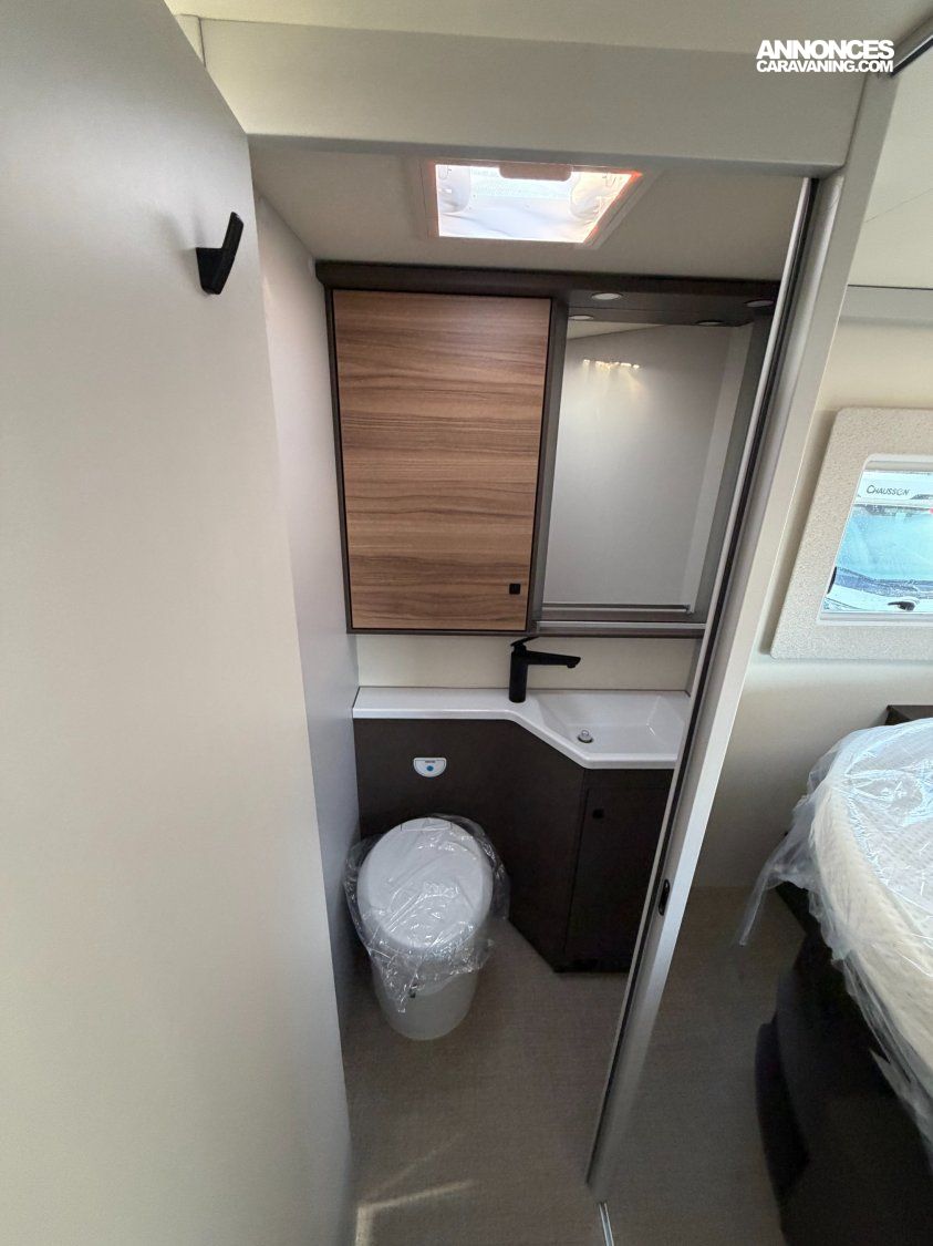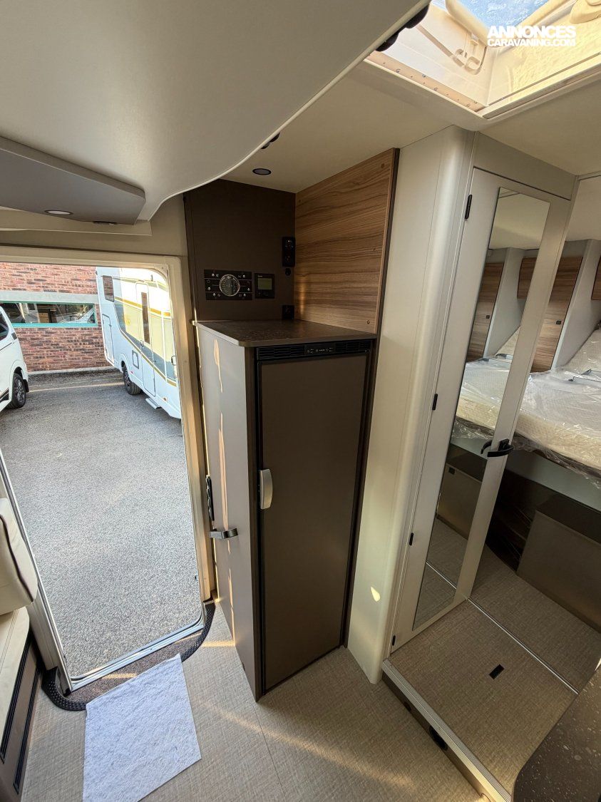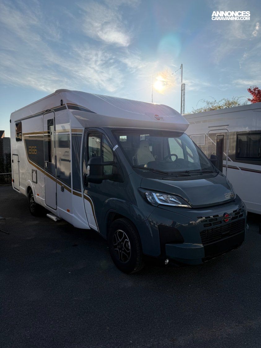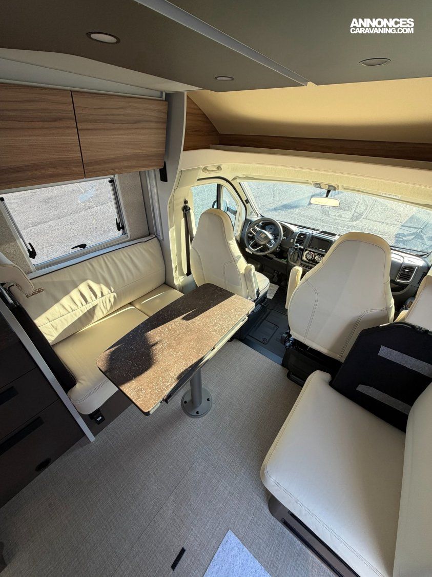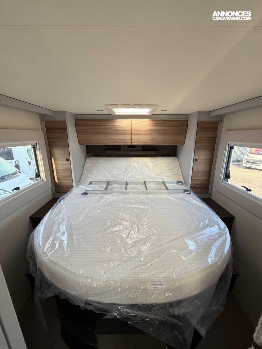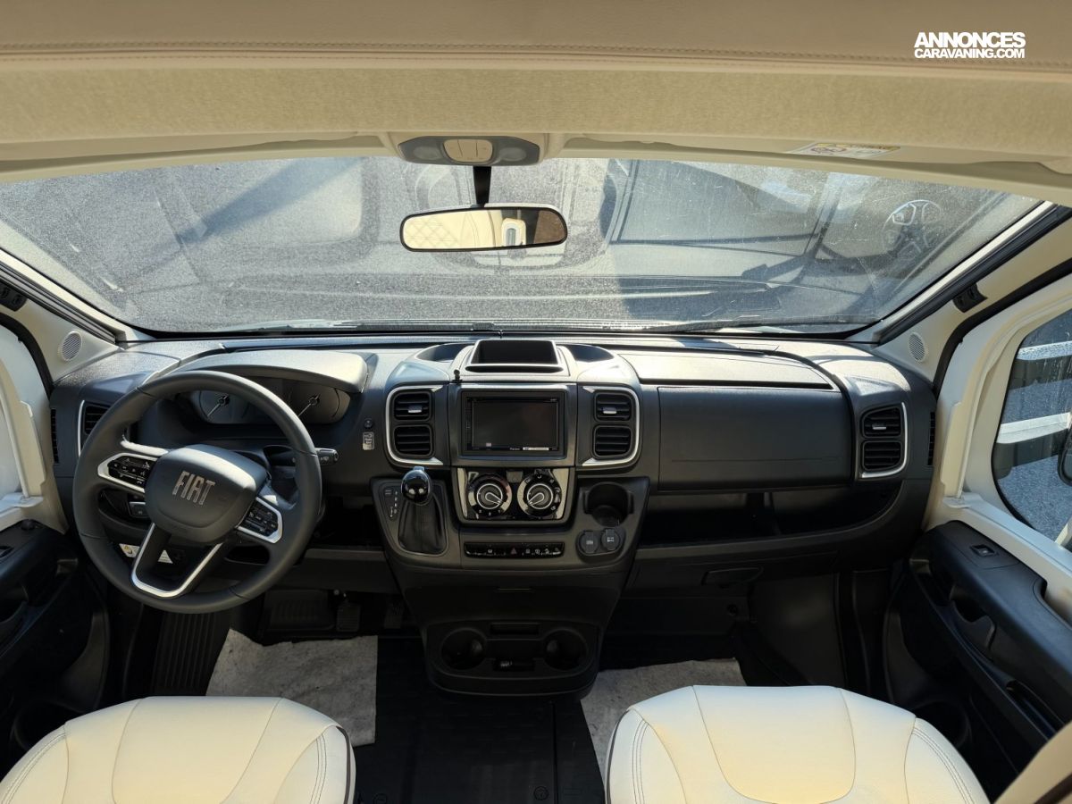 Airbag conducteur et passager, Rétroviseurs bras large, Start & Stop, Traction + avec fonction Hill Descent Control, Habillage des sièges cabine assorti à la cellule, Sièges cabine pivotants, Stores plissés occultants cabine, Climatisation manuelle en cabine, Porte-gobelets, Batterie lithium 100 Ah, Alternateur avec fonction booster 25A, Marchepied électrique, Marchepieds cabine, Tableau de bord Techno (application aluminium), Volant et pommeau de levier de vitesse gainés cuir, Marchepied cellule encastré, Rétroviseurs électriques et dégivrants, Station multimédia avec caméra de recul, Réfrigérateur à compresseur, 131,5 L (dont 15 L de congélati, ***********, Lit central réglable en hauteur (+/- 25 cm), Coffre à gaz pour 2 X11KG, Collecteur de déchets et verrouillage centralisé, ABS (système antiblocage des roues), Alternateur renforcé (220 Ah), Capteur de pression, Châssis Fiat à voie arrière élargie, Feux antibrouillard avant, Feux de jour, Fix and Go Kit (à la place de la roue de secours, Frein à main électrique, Jantes aluminium 16'' Bi-Color, Pare-chocs avant couleur carrosserie, Plancher isolé en XPS avec soubassement en polyester, Combiné chauffage / chauffe-eau Combi 6, Porte d'entrée version large avec fenêtre, moustiquaire, Pneus 4 saisons, Ressorts à lames composites, Régulateur de vitesse avec limiteur de vitesse, Réservoir diesel 60 litres, Peinture extérieure Gris Lanzarote (cabine)