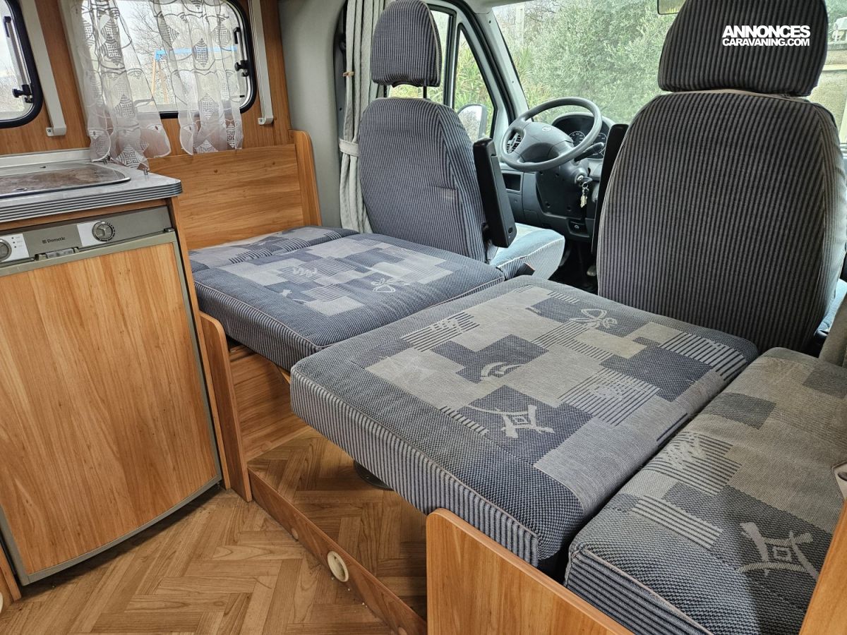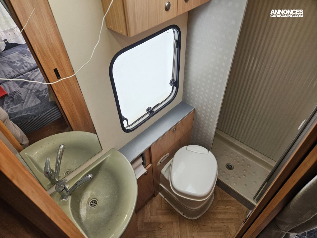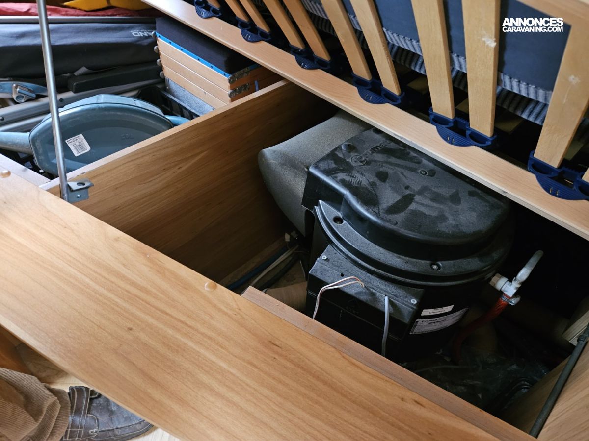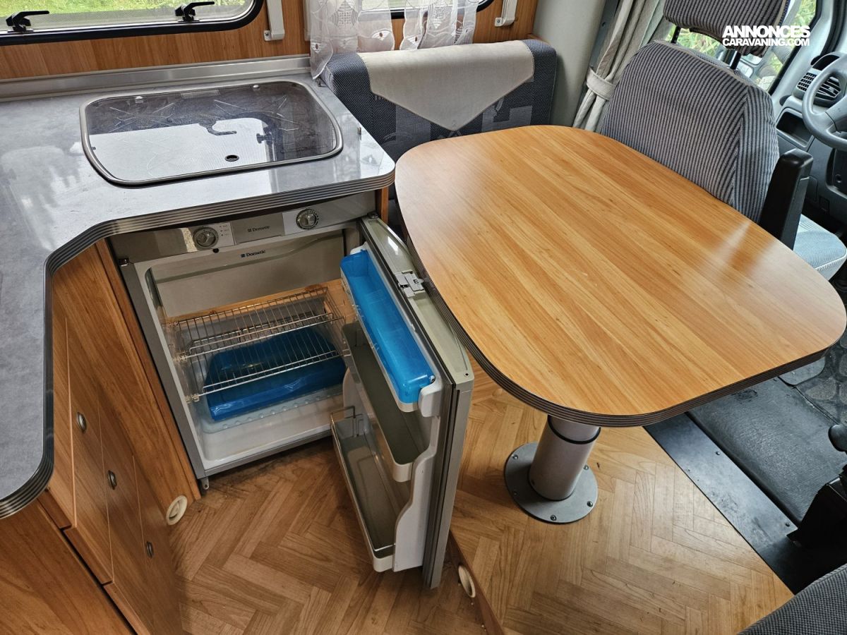CHAUFFAGE COMBI TRUMA 4, STORE EXTERIEUR 3M, GAZINIERE 3 FEUX, CUISINE EN L, HOTTE ASPIRANTE, PORTE VELO, REFRIGERATEUR TRI MIX, TABLE TELESCOPIQUE, VOLET ISOTHERME INTERIEUR, FREEZER