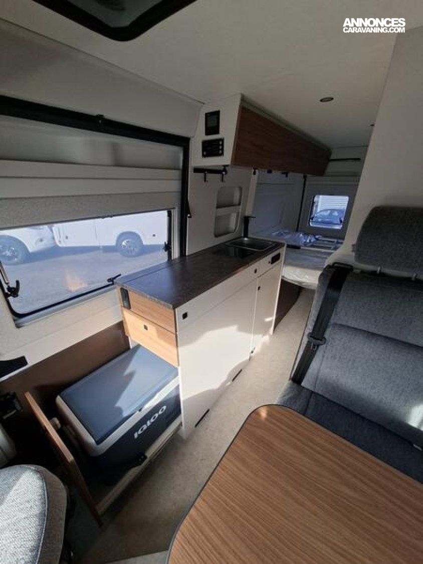 PACK CONFORT CELLULE Moustiquaire de porte coulissante Eclairage indirect Led Habillage des parois intérieures en tissu Baies à encadrement sur portes arrières Baie à encadrement arrière gauche Baies à encadrement espace dînette Baies sur porte coulissante Stores plissés occultants cabine Marchepied électrique, 700 mm : 5950 €
