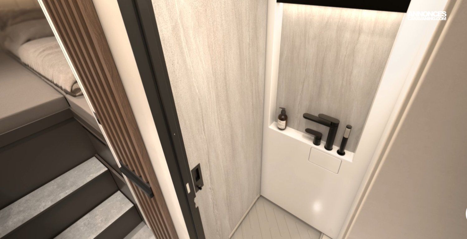 Pack confort : revetement interieur en tissu, store plissée cabine, porte de separation coulissante cuisine chambre, porte moustiquaire, porte cellule avec verrouillage centralisé, baie à encadrement …